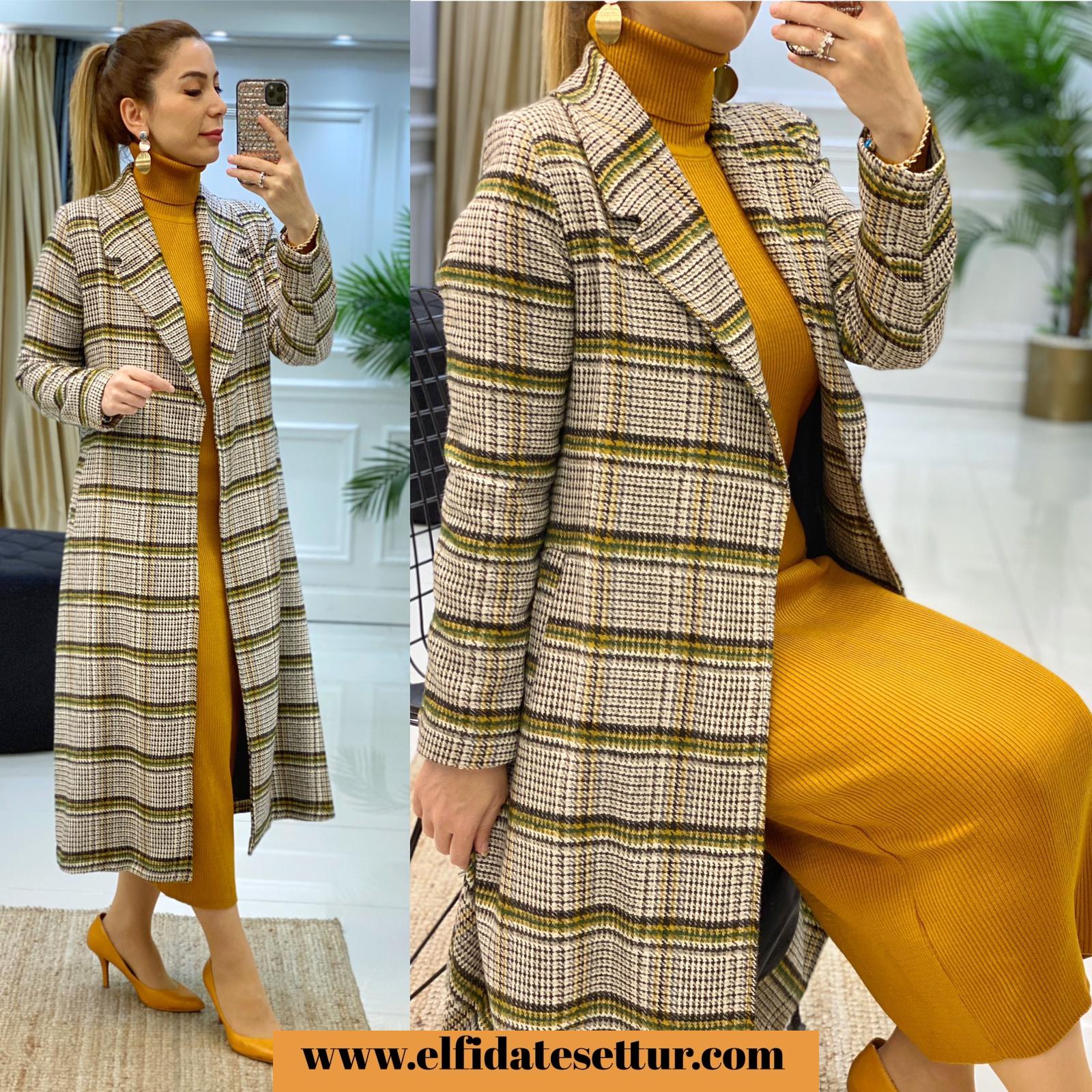 Kaşe kumaştır,iç kısmı astarlı,yan kısımı cepli,seyyar kuşaklıdır,arka kısım yırtmaç detaylıdır.