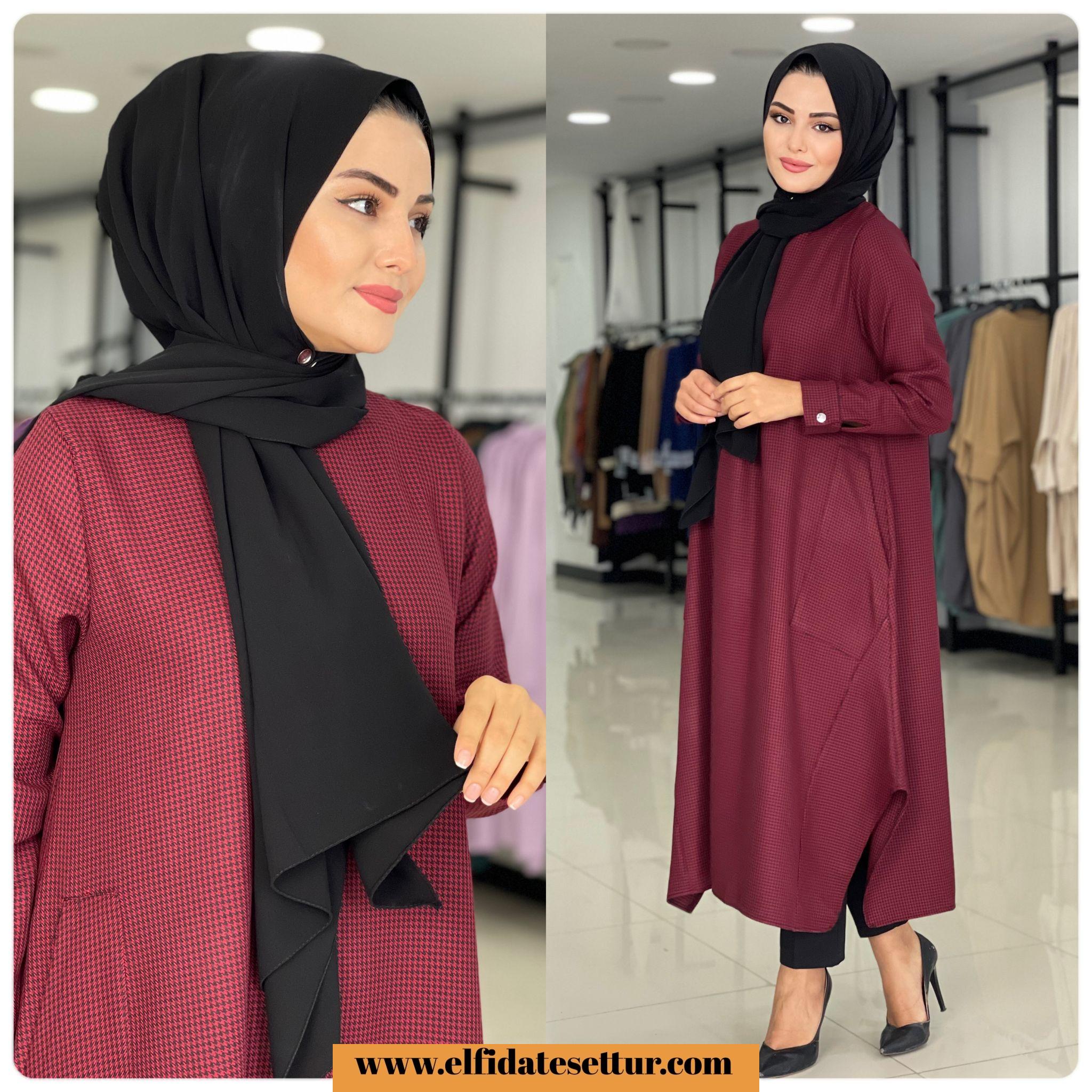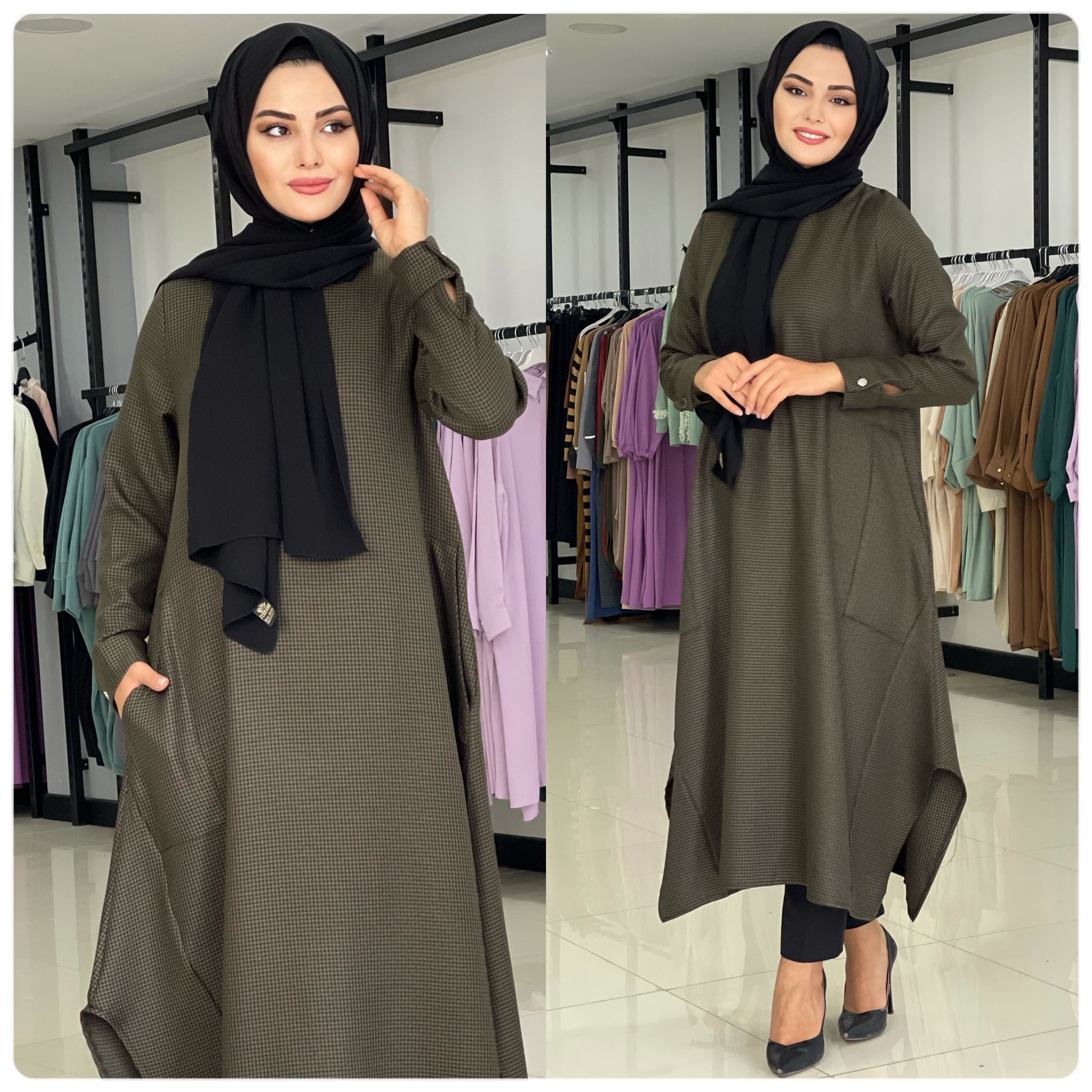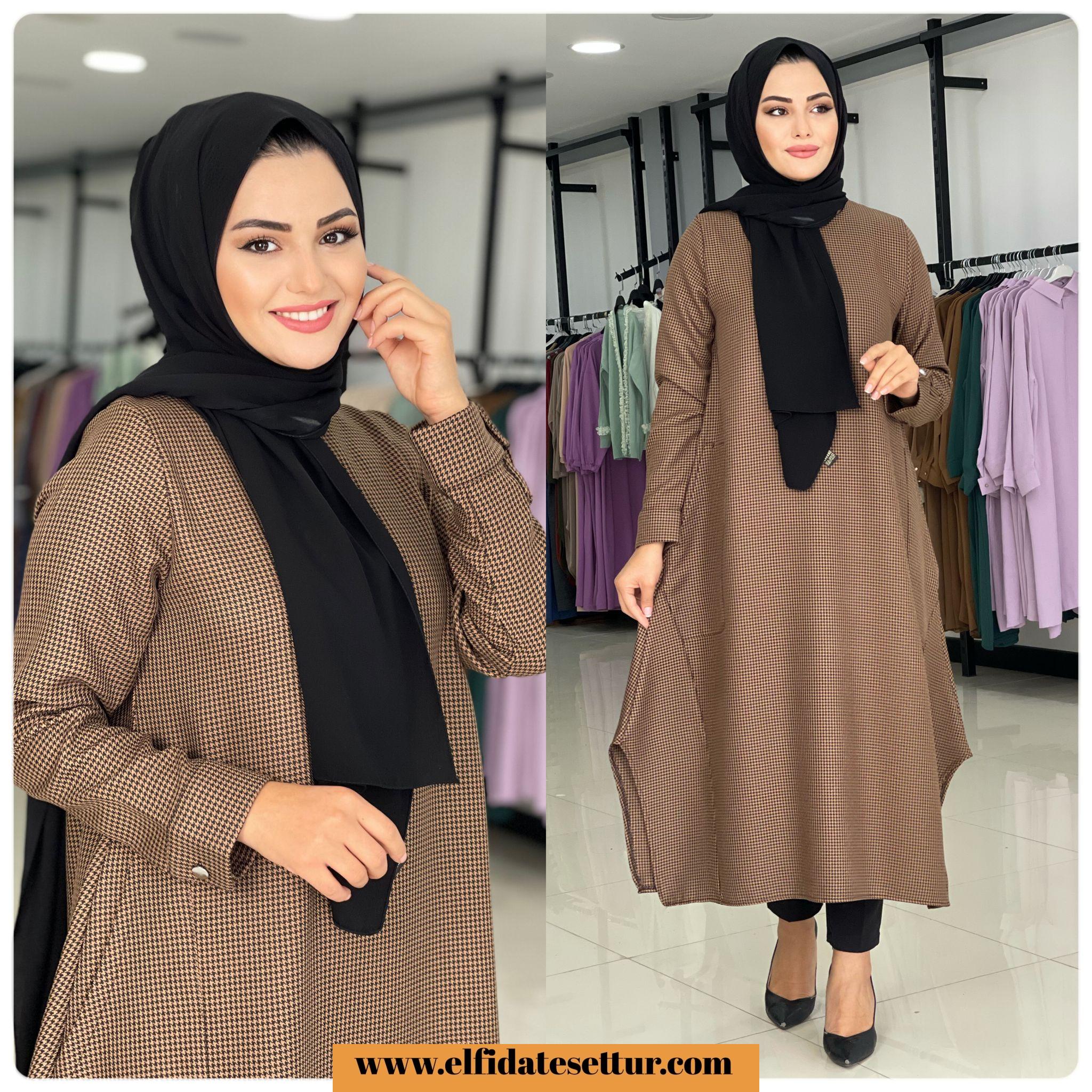 Çok sevilen kalıbıyla kazayağı desen yün efekt kumaş Selma tuniğimiz stoklarda 🌺