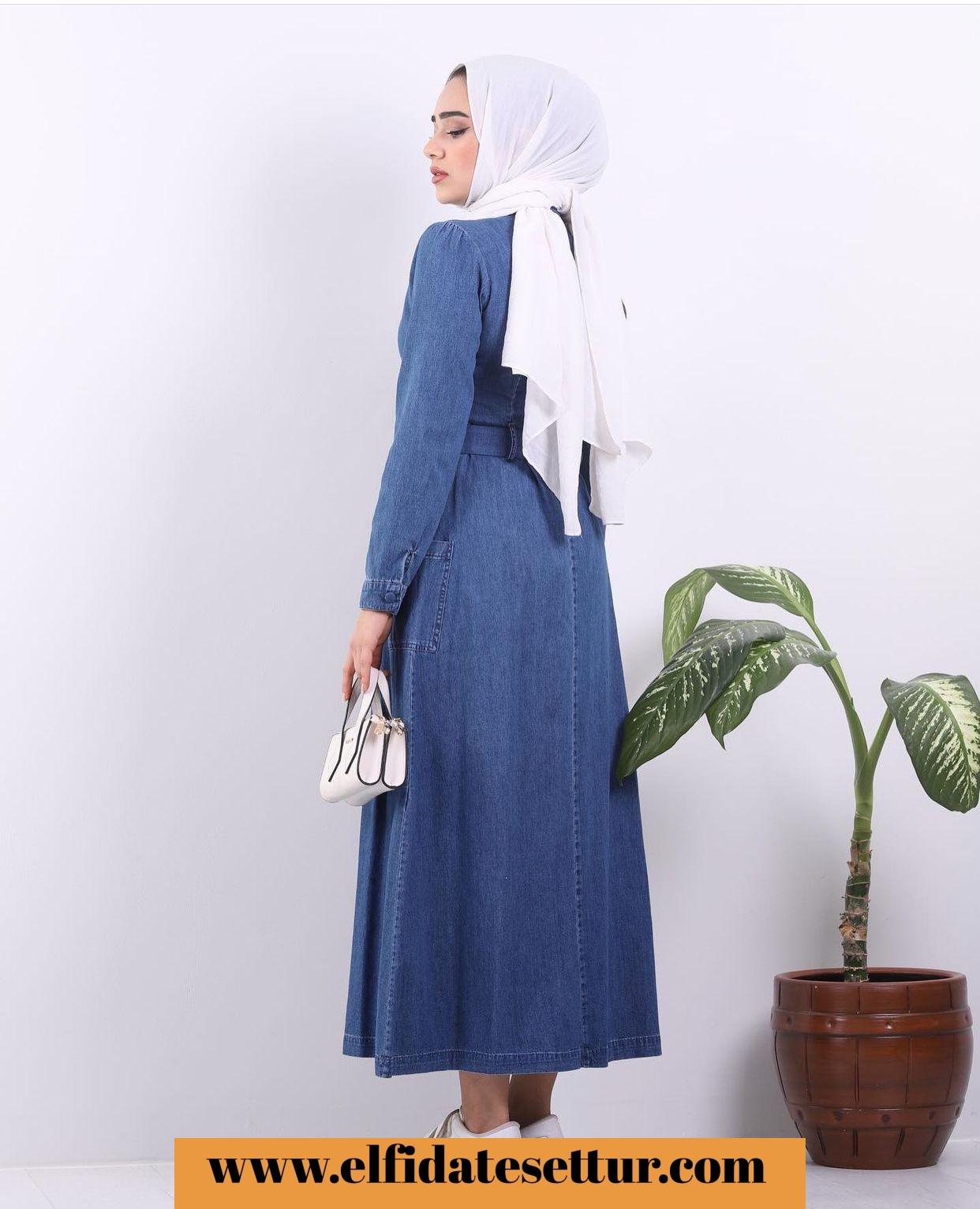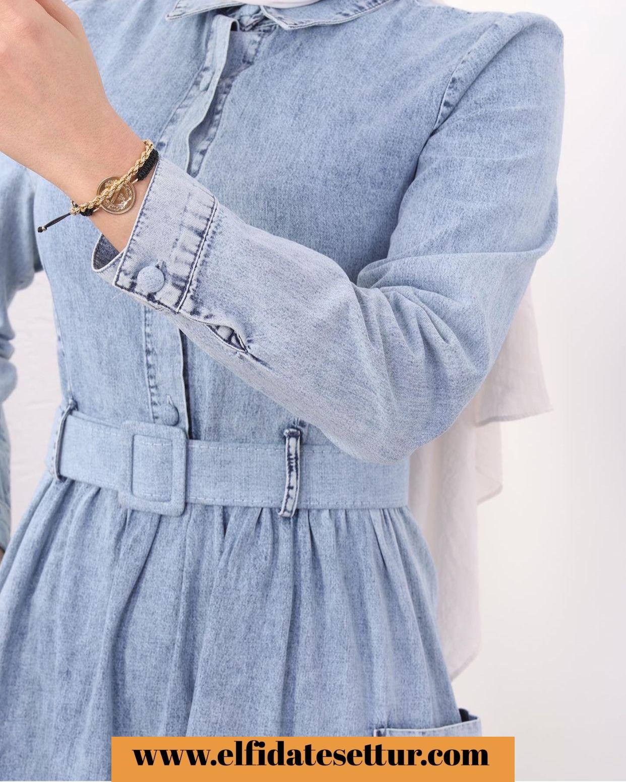 TAM MEVSİMİNDE KOT ELBİSE ÖNDEN GİZLİ DÜĞMELİ VE CEPLİ ❤️❤️