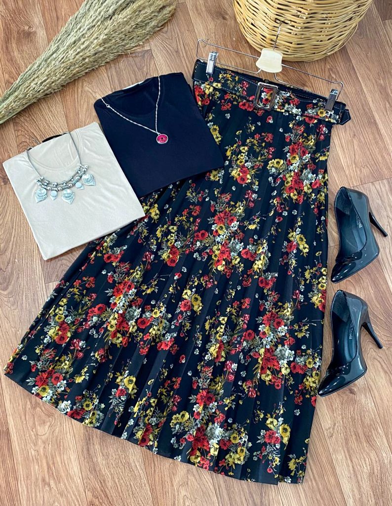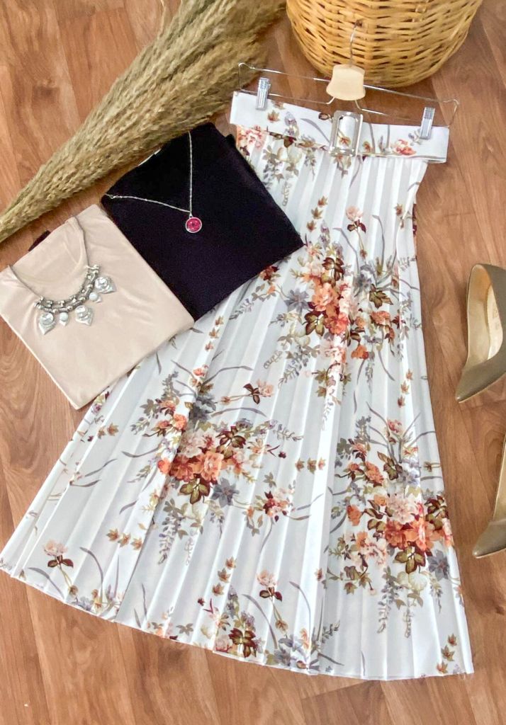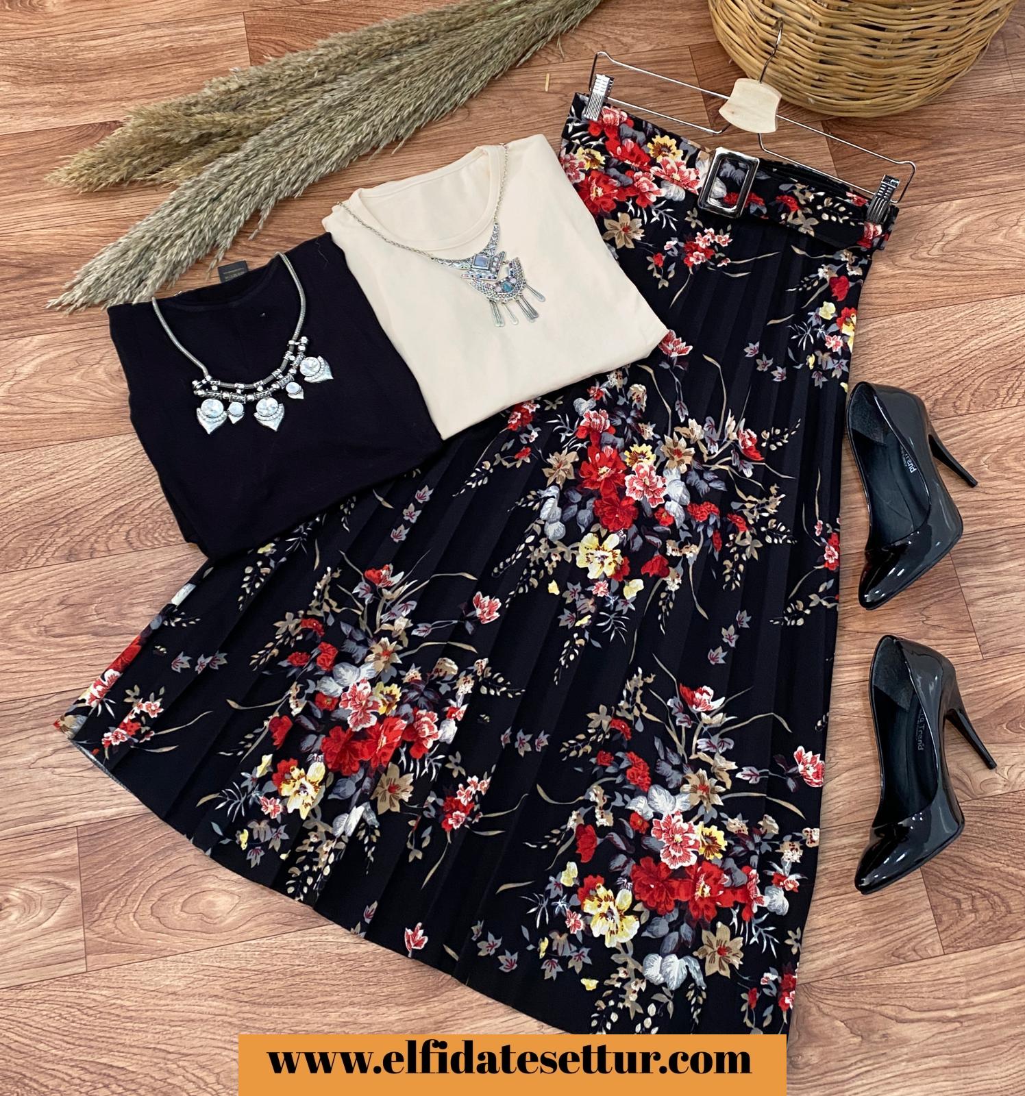 Beli lastikli , kemerli ,piliseli rengarenk etekler ve badi kombin