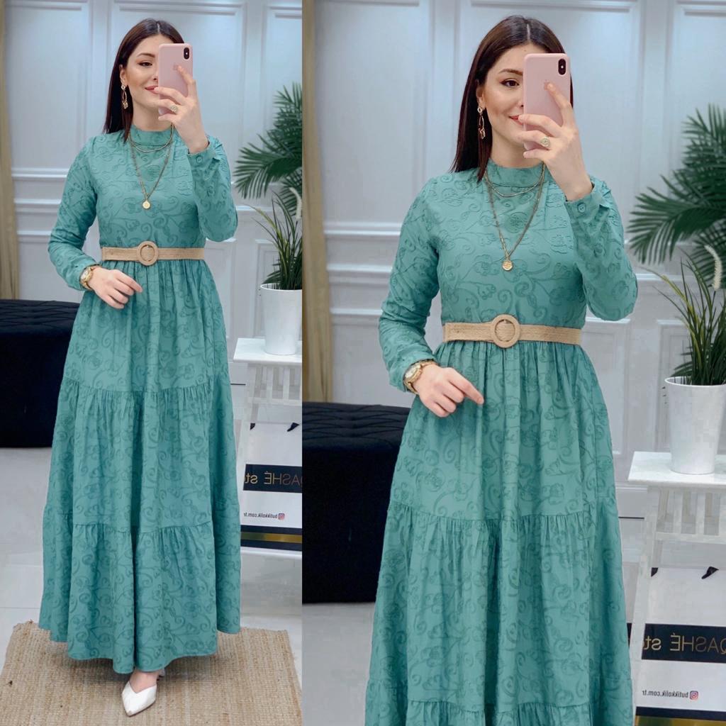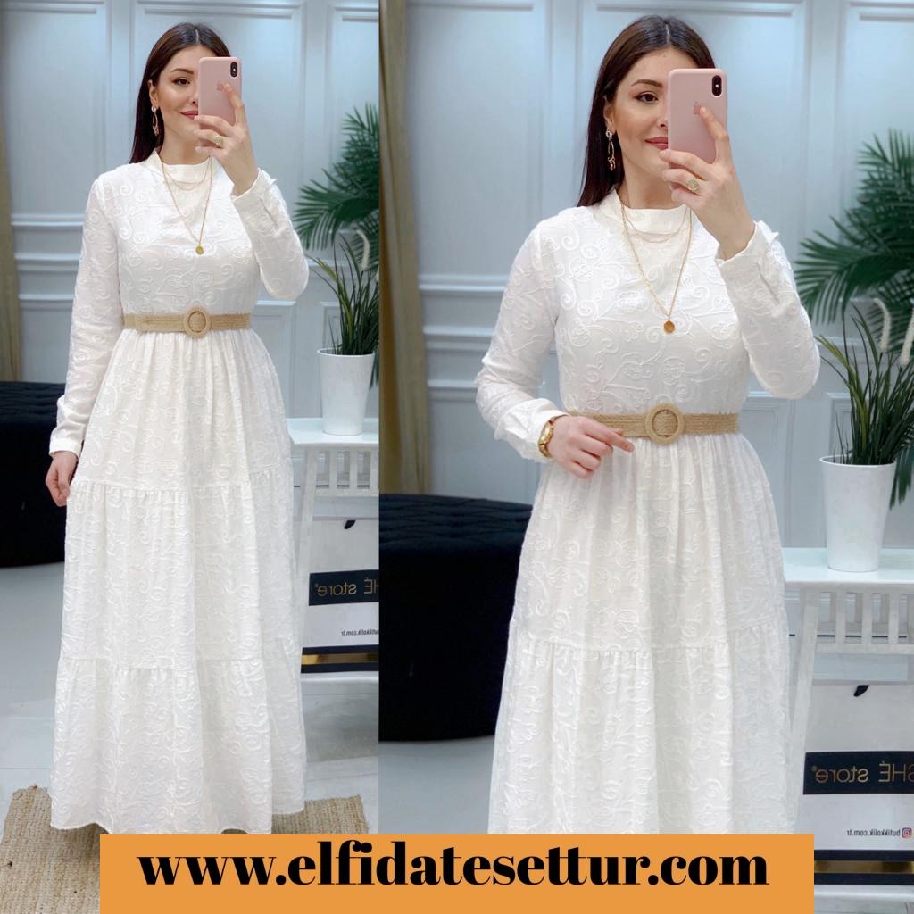 Ürün Detayı: 1.sınıf pamuklu keten kumaştır. Üzerinde çiçek ip işlemesi vardır. Sırttan fermuarlıdır. Seyyar hasır kemerlidir.