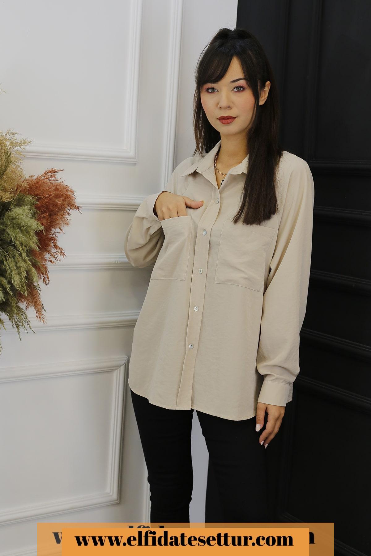 🌷Ön Cep Detaylı Gömlek