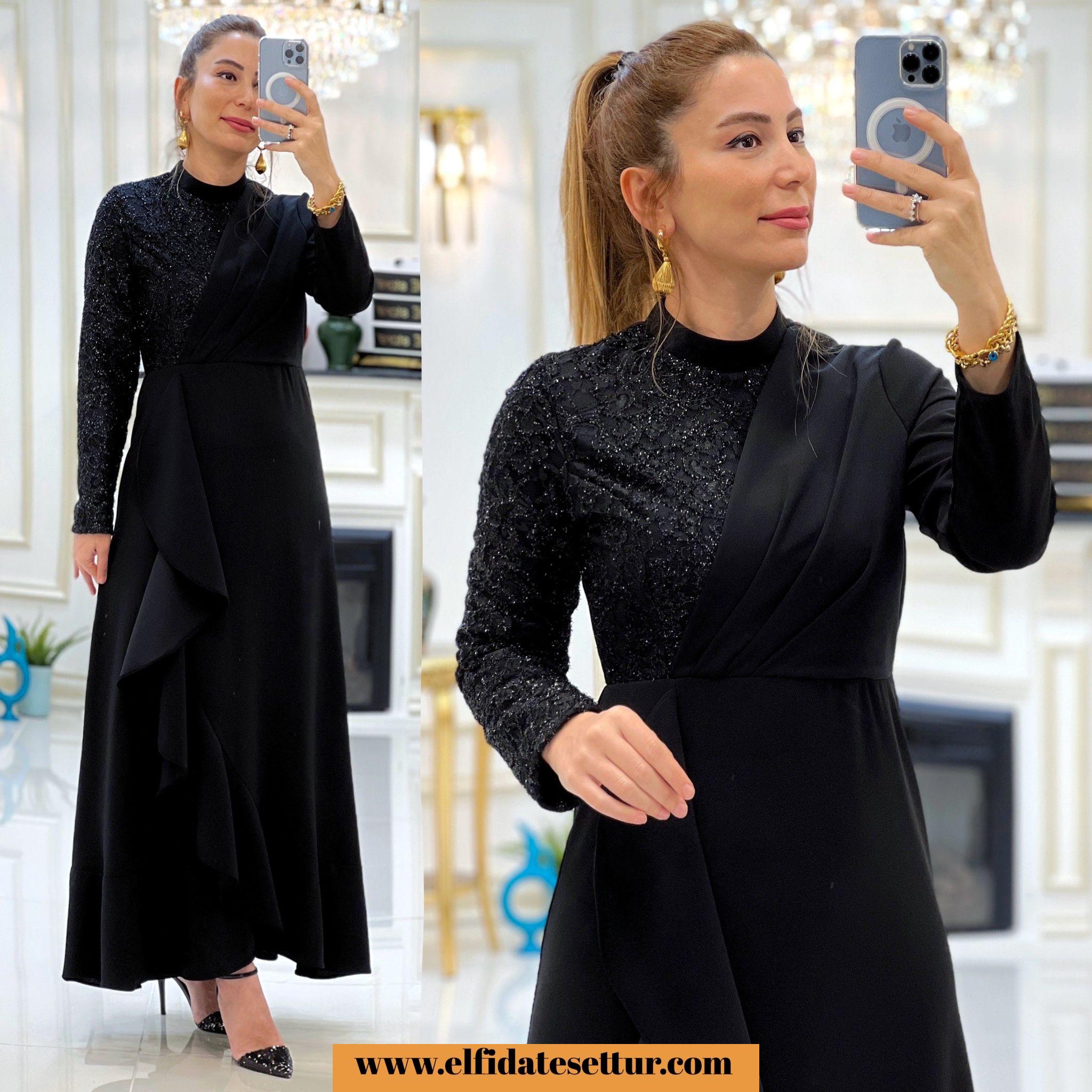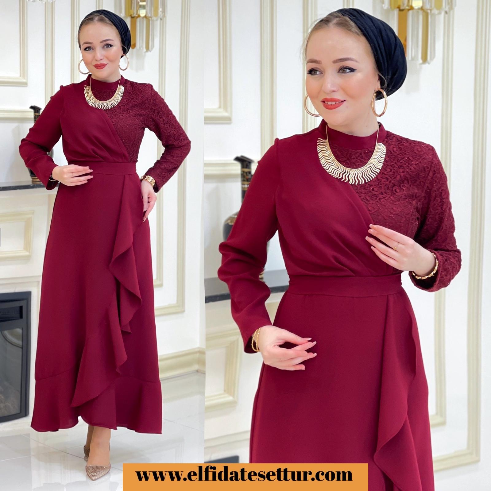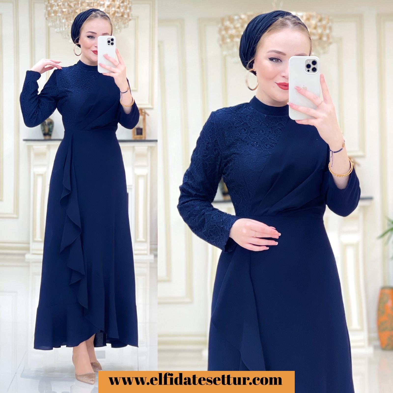 1. Sınıf Likralı Krep Kumaştır. Elbise omuz kısmında ışıltılı dantel detayı mevcuttur. Elbise etek ucunda fırfır detayı bulunmaktadır. Elbise seyyar kemeri mevcuttur.