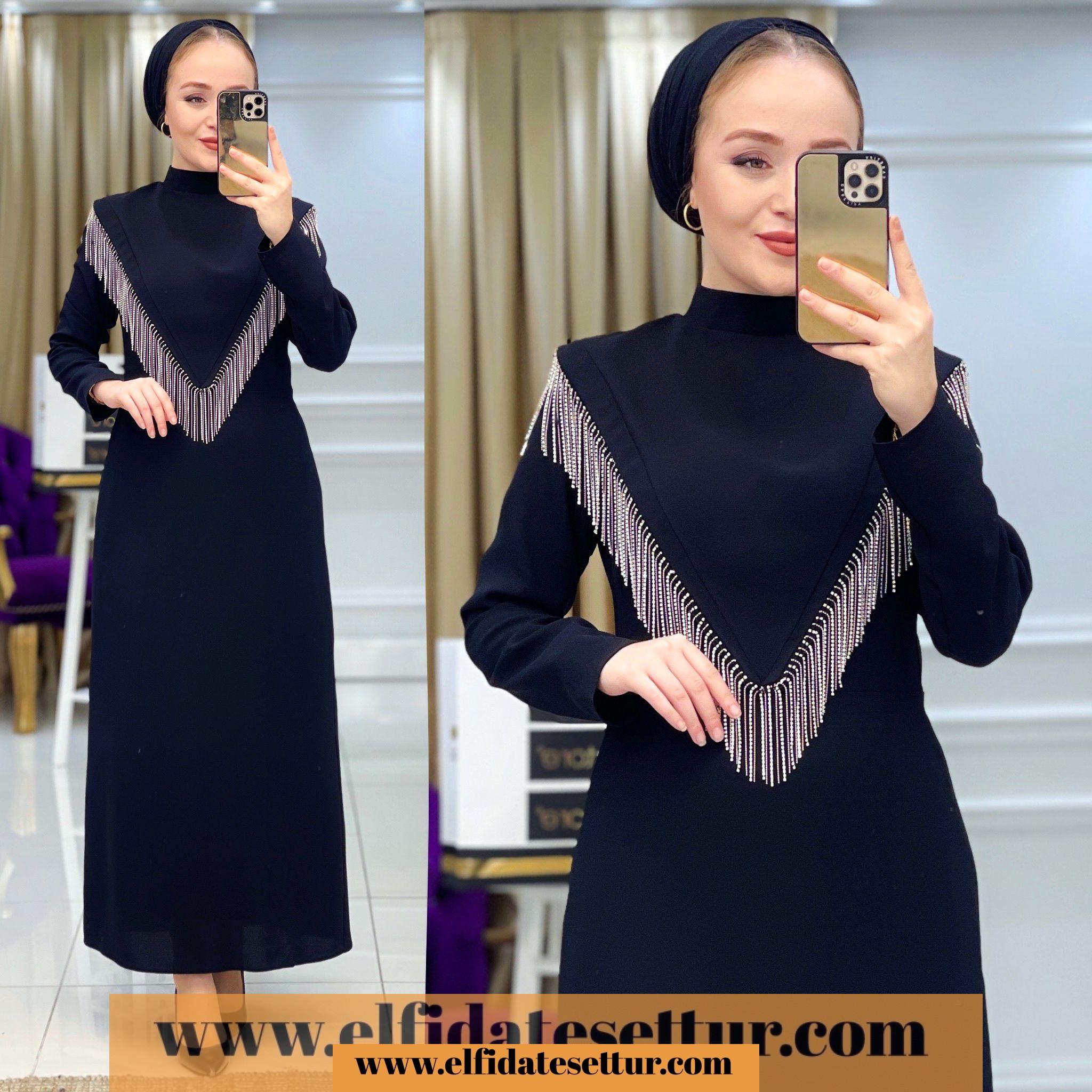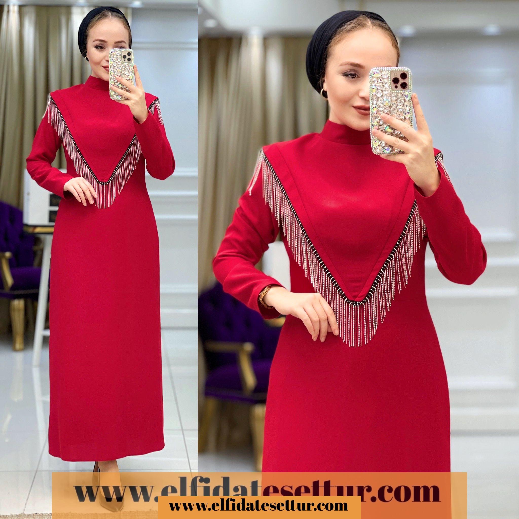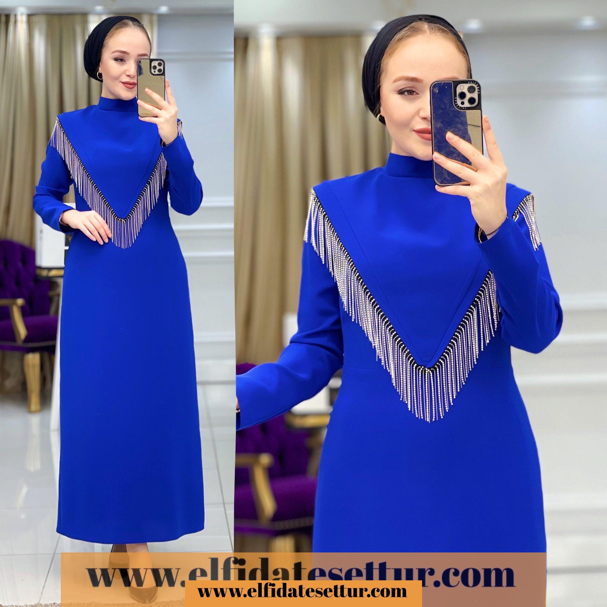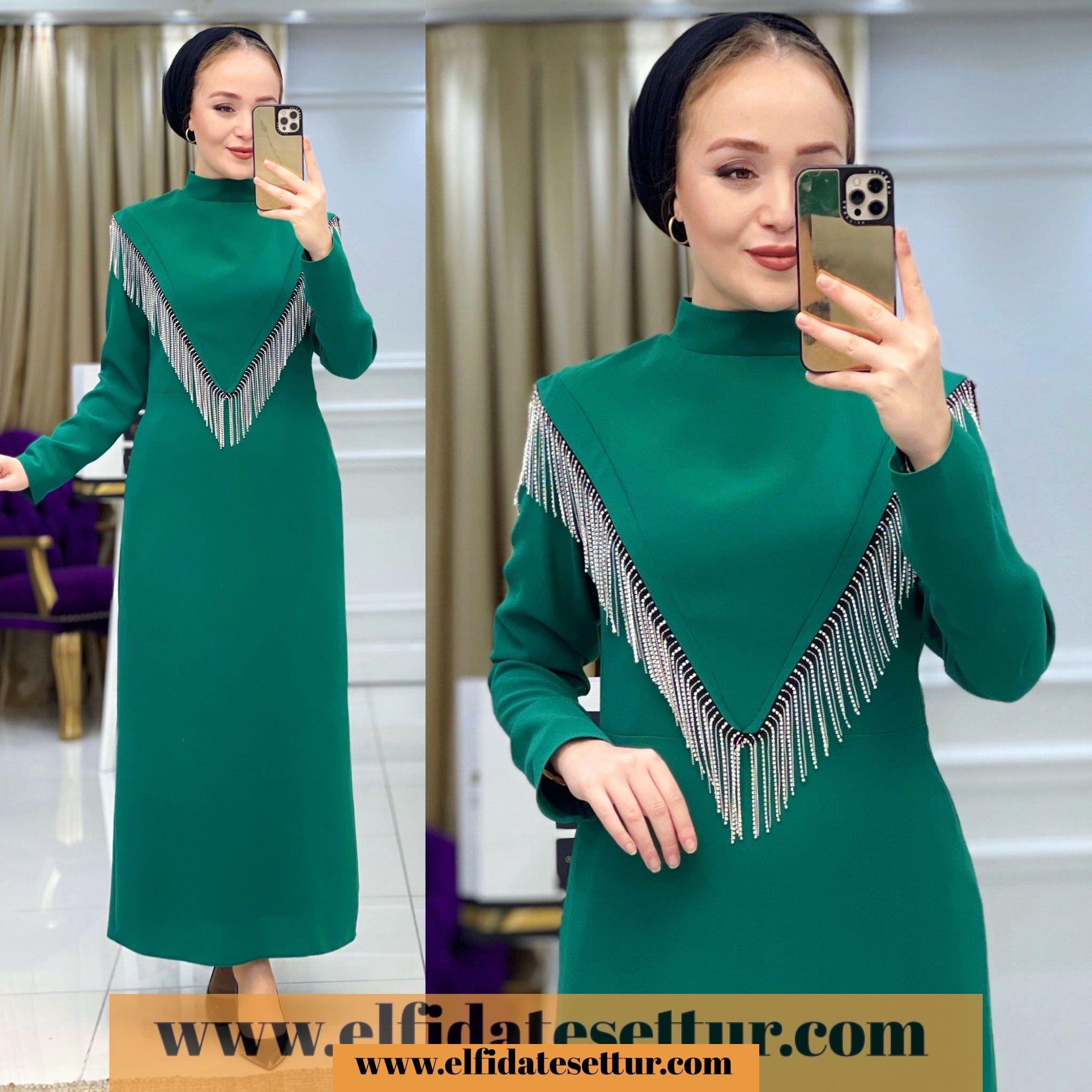 Elbise göğüs kısmı dökümlü taş detaylıdır.