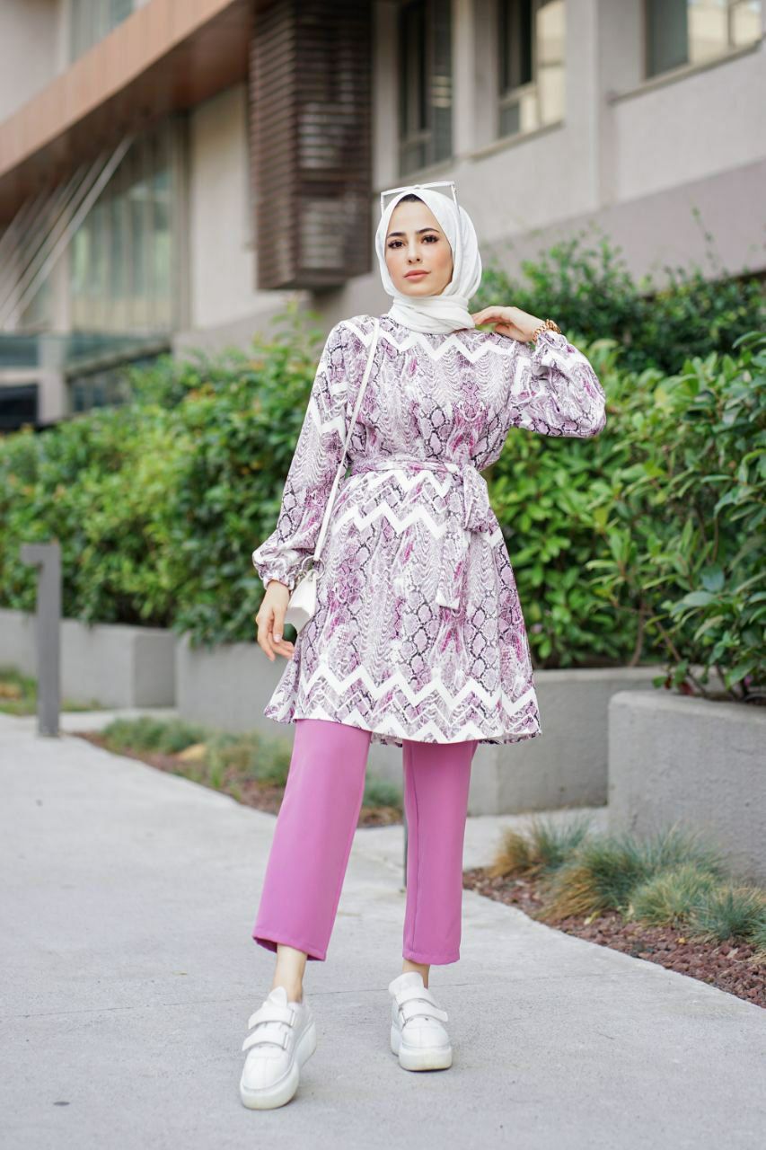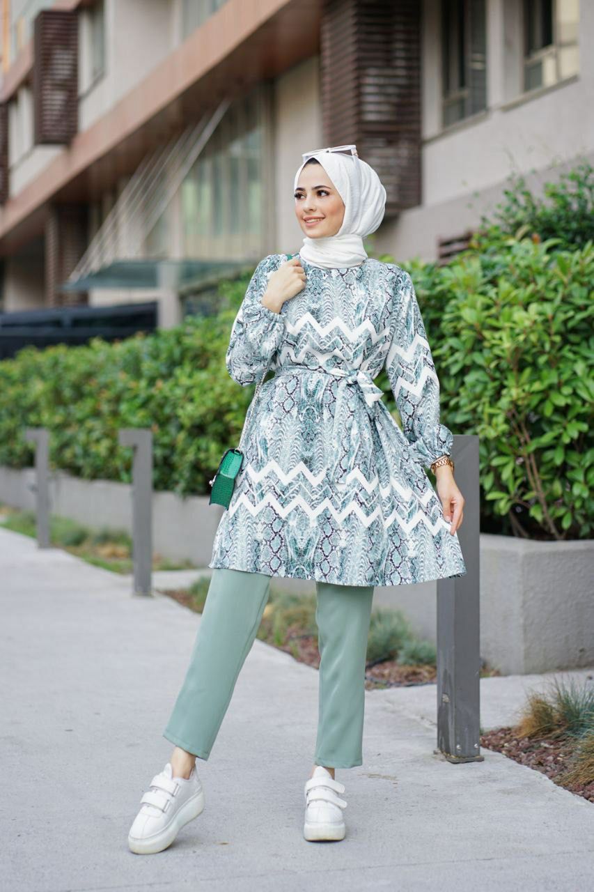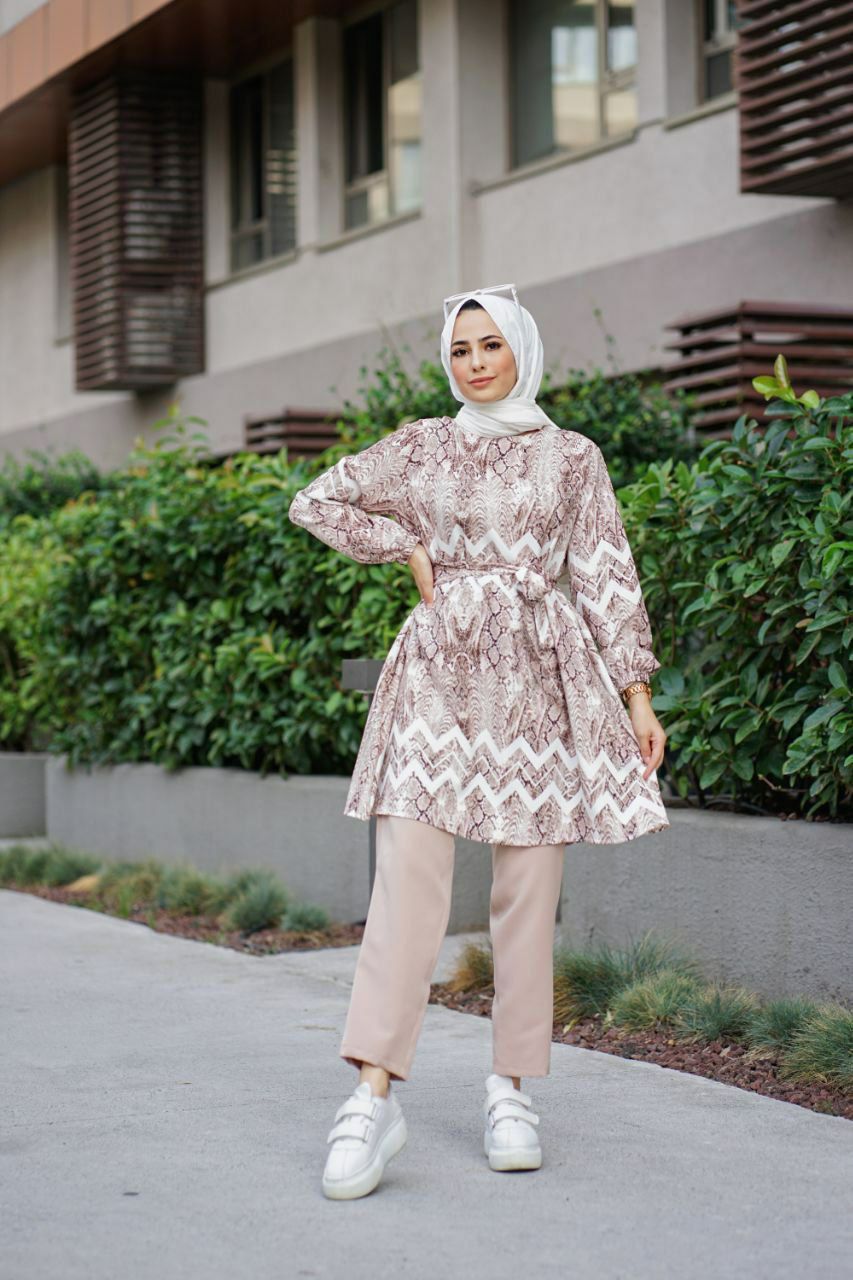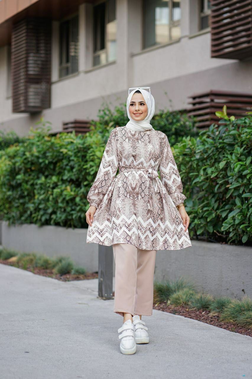 Yeni sezon Rahatlığıyla gönlünüzü feth edecek vücuda yapışmaz terletmez belindenden kuşaklı dijital baskı tunik takım 🙊