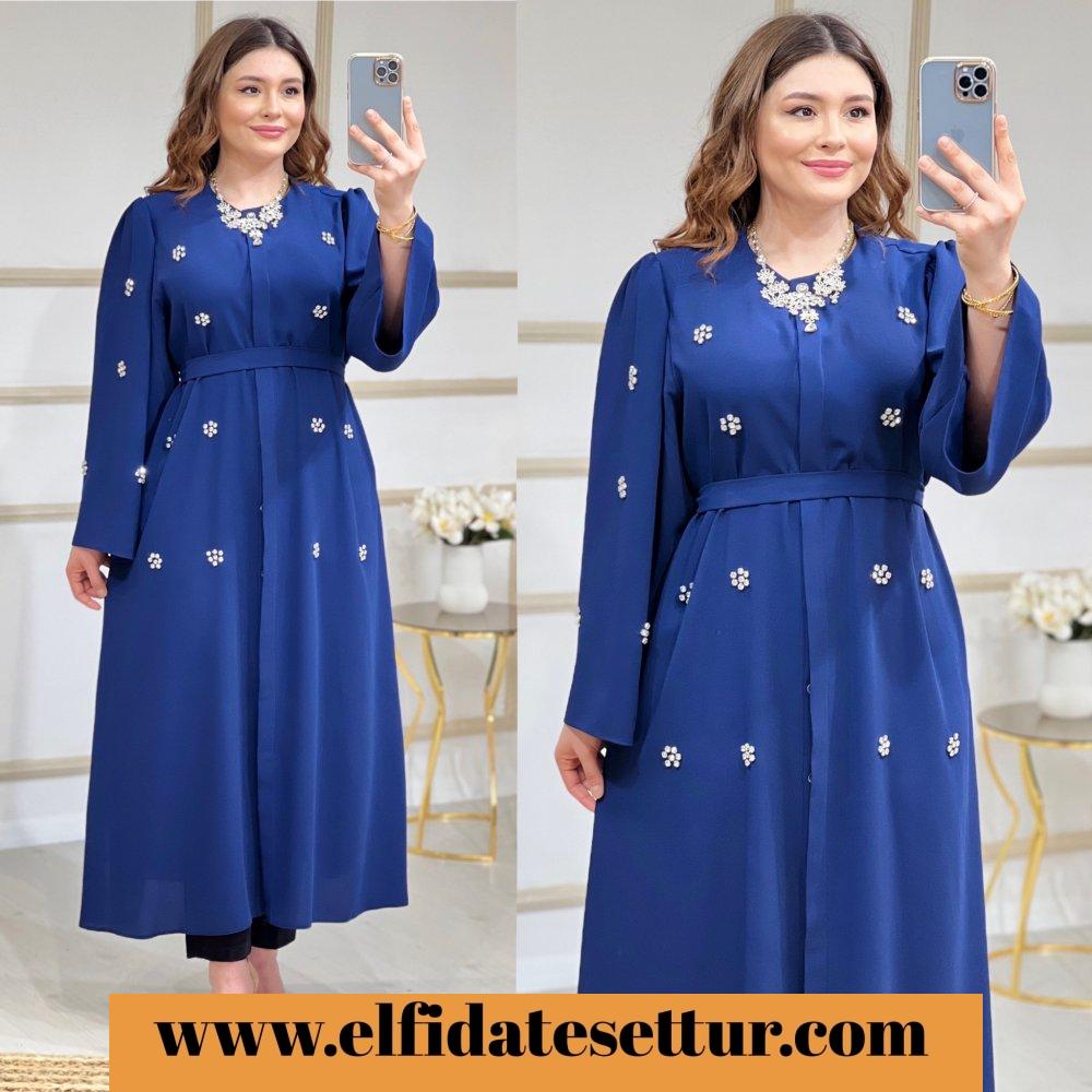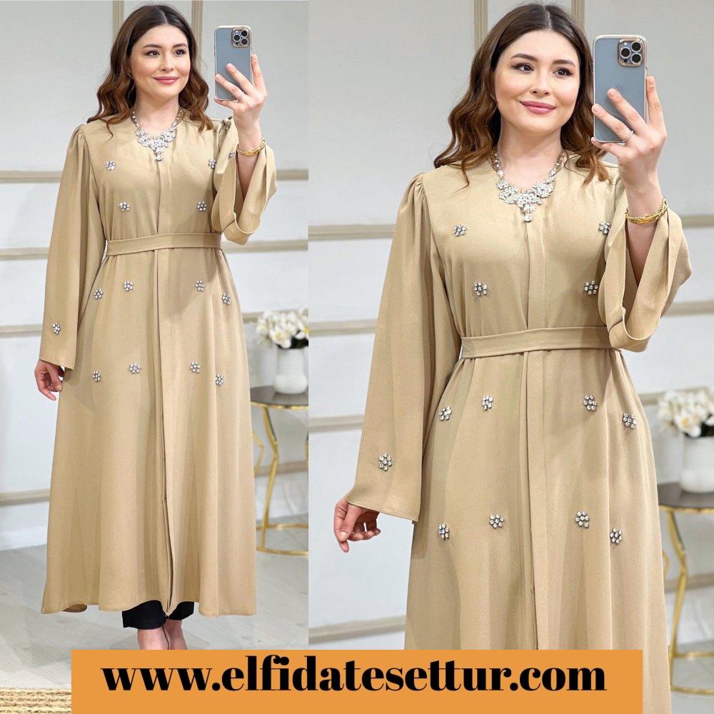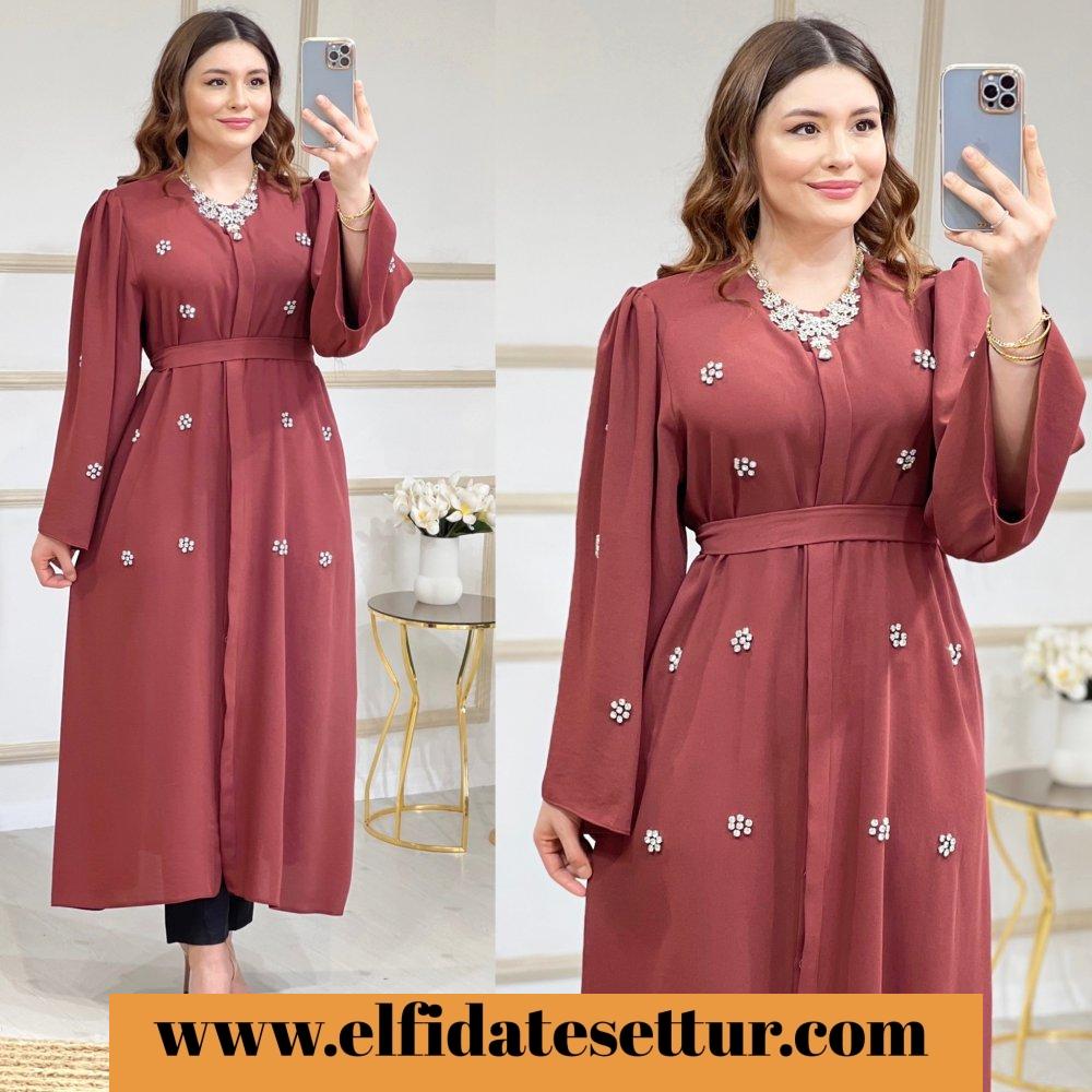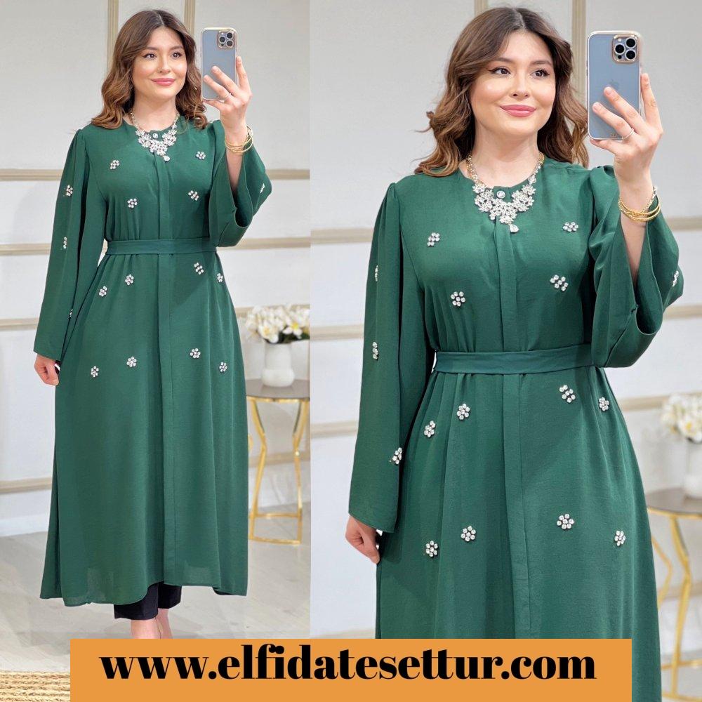 Kendi kumaşından seyyar kemerlidir.
