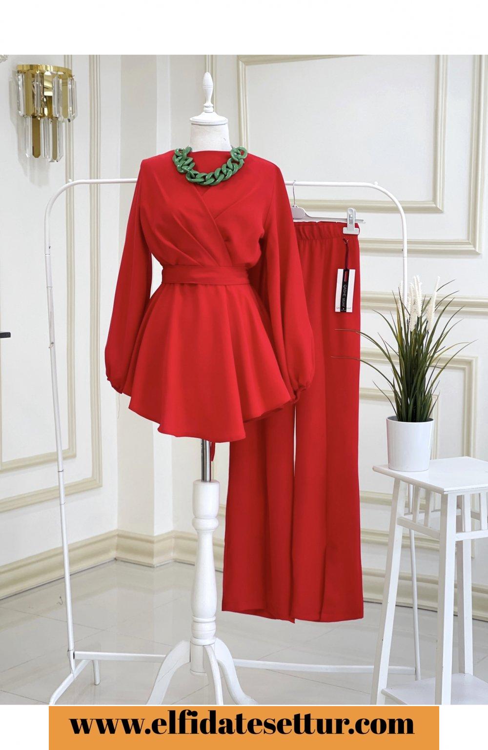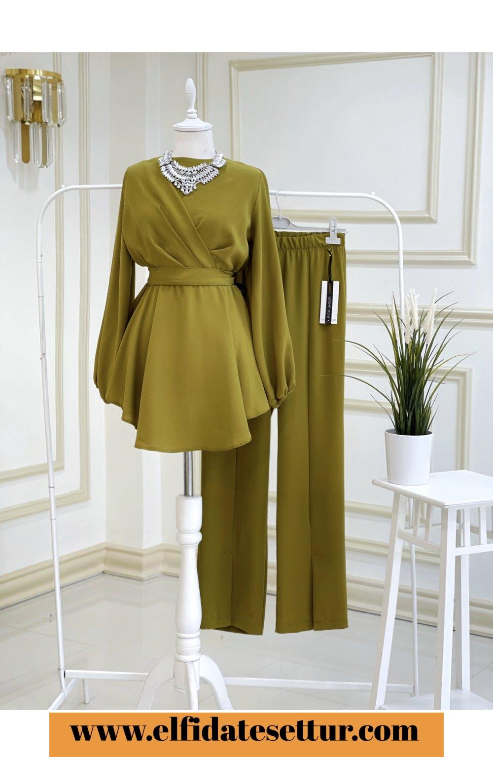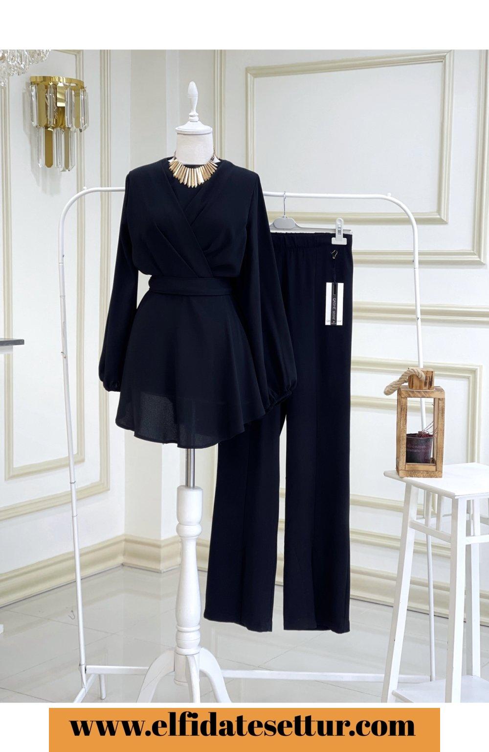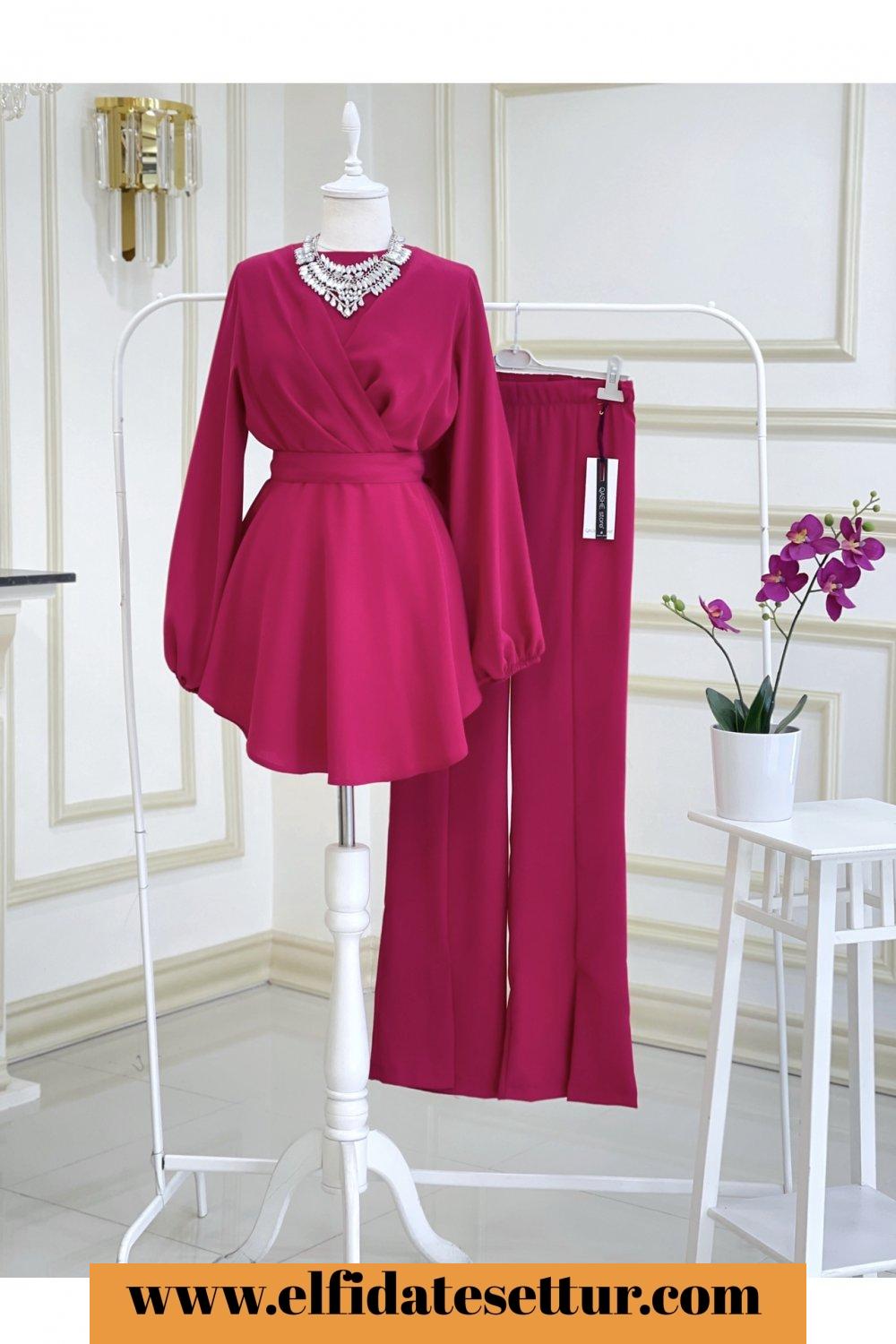1. Sınıf İthal Krep Kumaştır. 36 Beden Ölçüsü: Tunik boy: 80 cm Göğüs: 100 cm Omuz: 38 cm Tunik seyyar kuşaklıdır. Pantolon boy: 110 cm Beli lastiklidir. Pantolon paça kısmı yırtmaçlıdır.