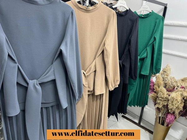 48 BEDENE KADAR A KALİTE PİLİSELİ ETEK VE İSTER ÖNDEN İSTER ARKADAN BAGLANILABILEN KUŞAKLI BLUZ