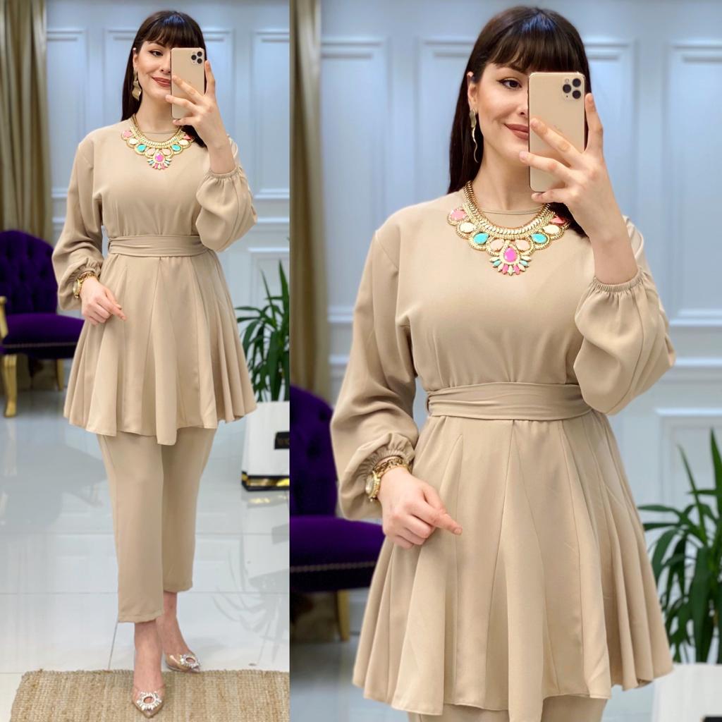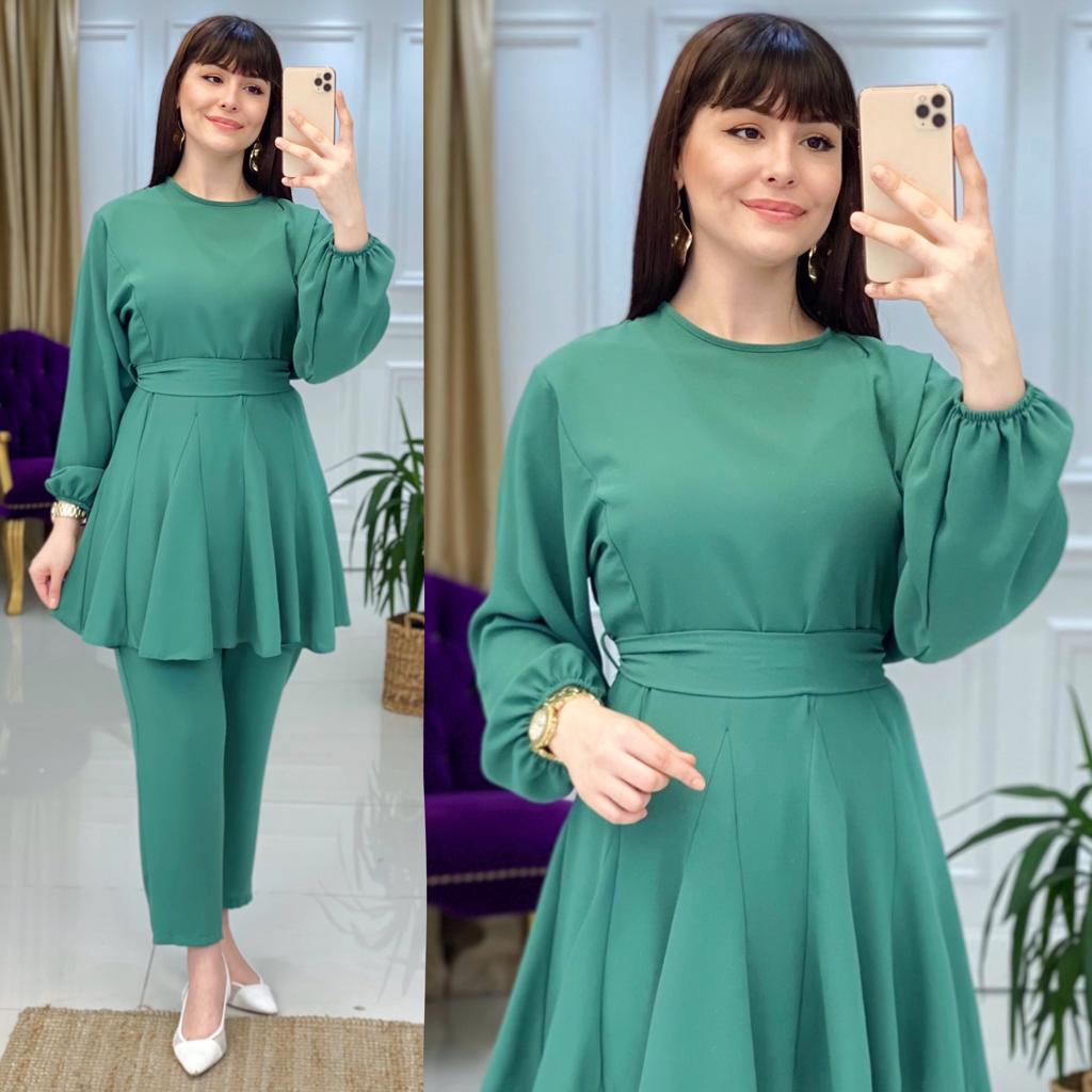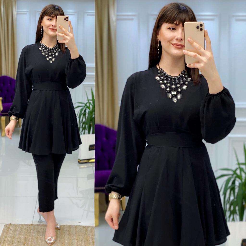 Ürün bilgileri: 1. Sınıf İthal Krep Kumaştır. Tunik etek uçları fırfır detaylıdır. Tunik seyyar kemerlidir.
