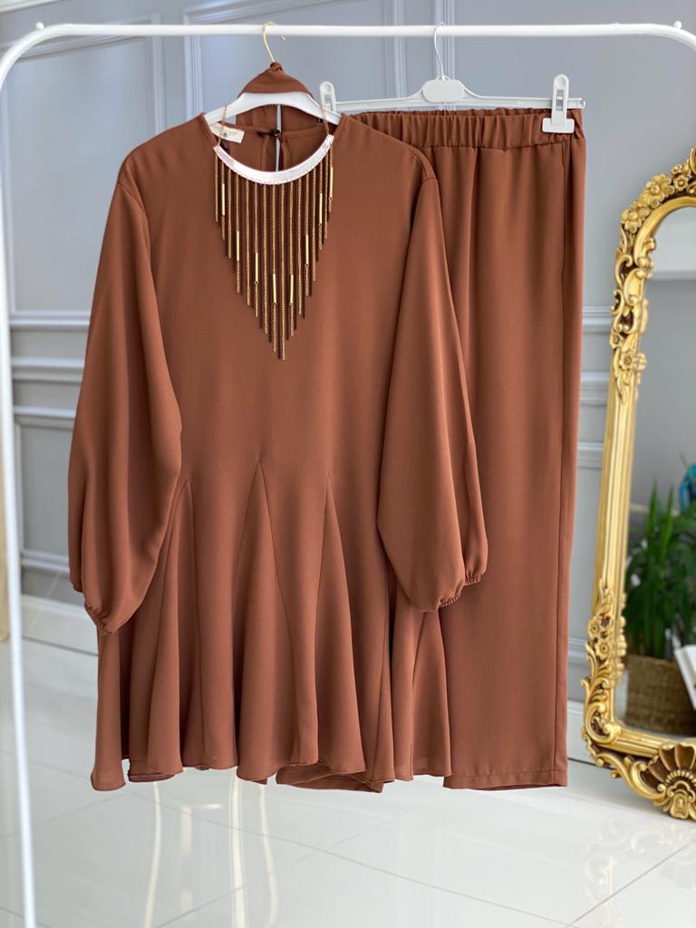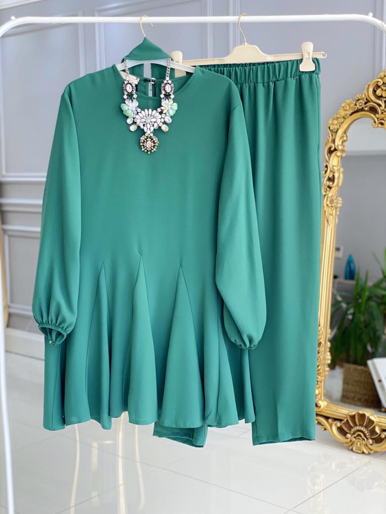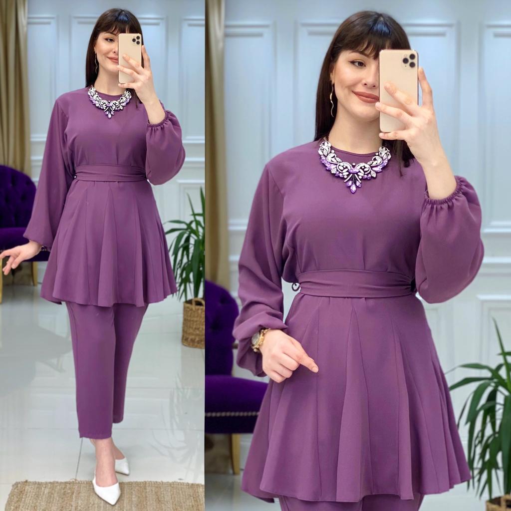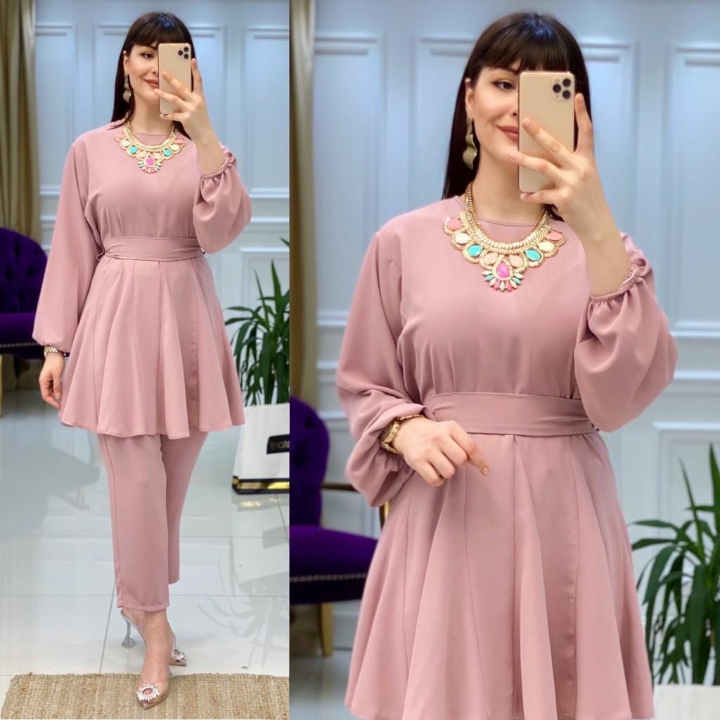 Ürün bilgileri: 1. Sınıf İthal Krep Kumaştır. Tunik etek uçları fırfır detaylıdır. Tunik seyyar kemerlidir.