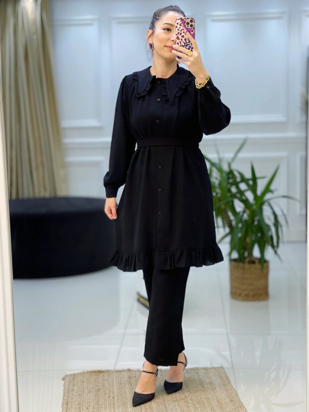 🌷*Qashe* Lina Fırfır Takım Siyah