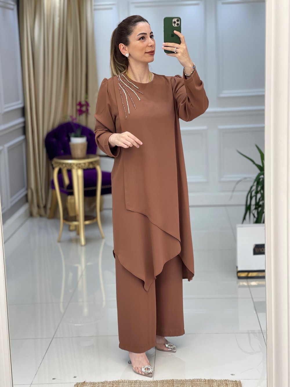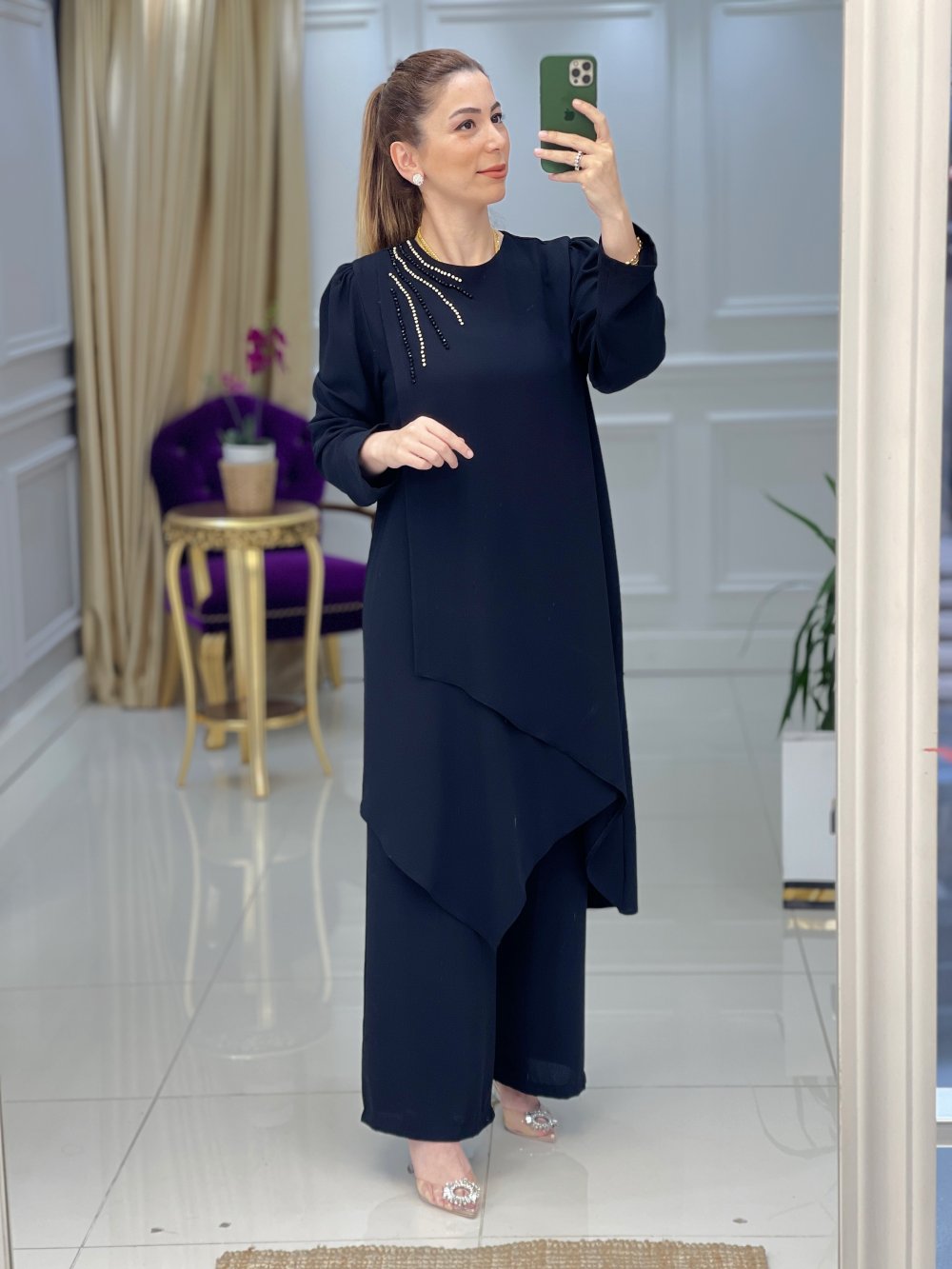 Ürün bilgileri: Birinci sınıf İthal Krep kumaştır. Pantolon beli lastiklidir.