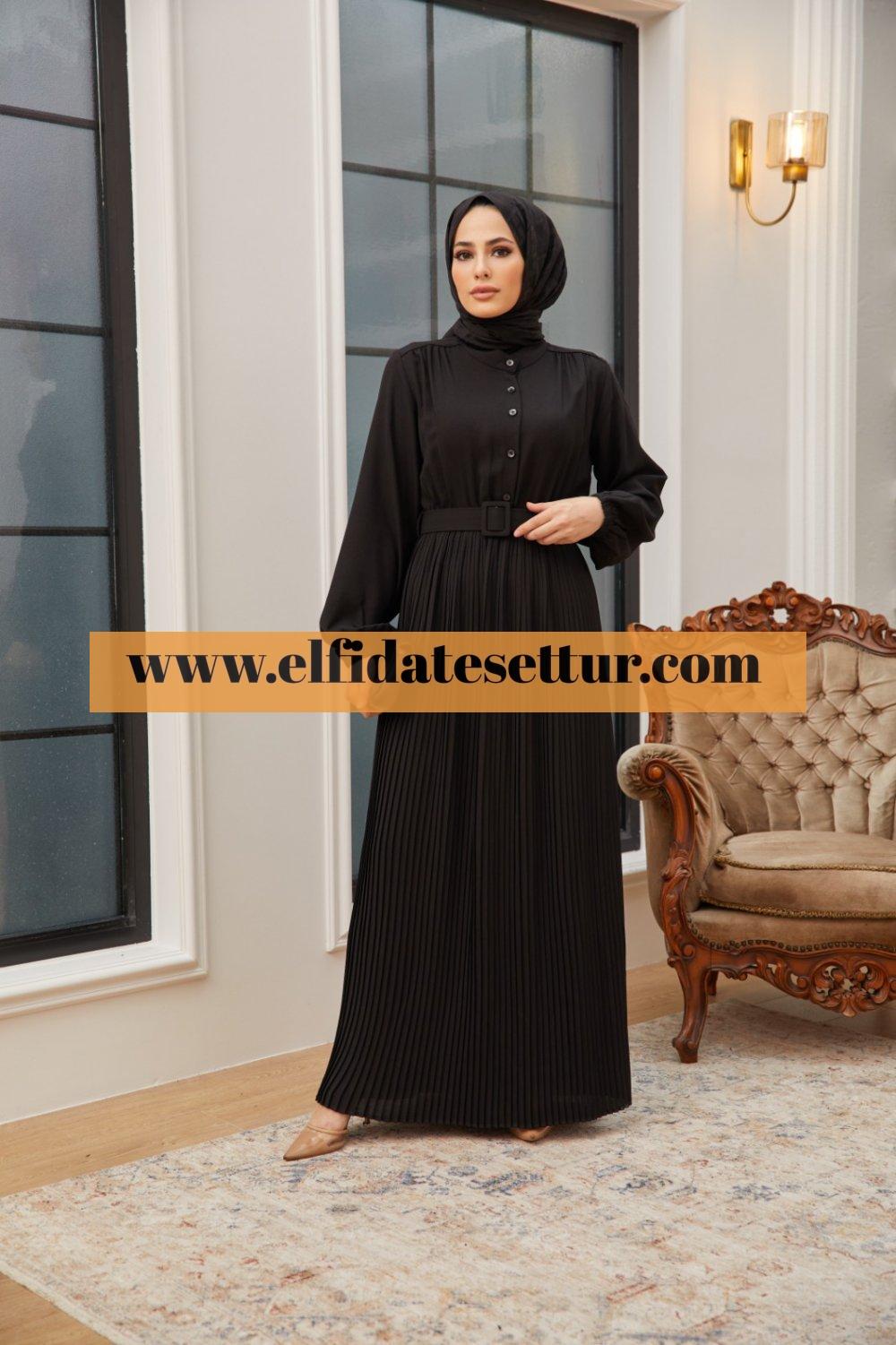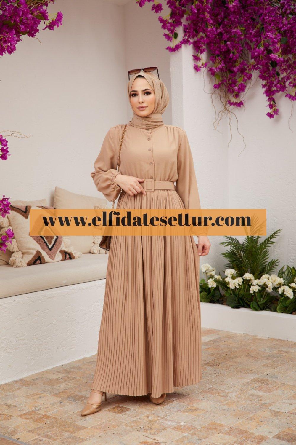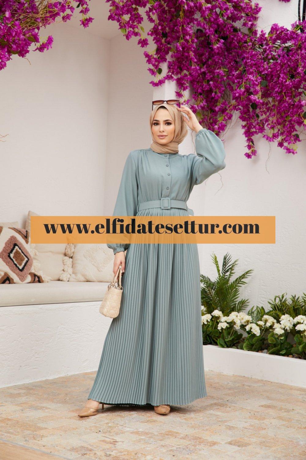 🌷Kadın İnce Piliseli, Düğmeli,Kemerli Elbise