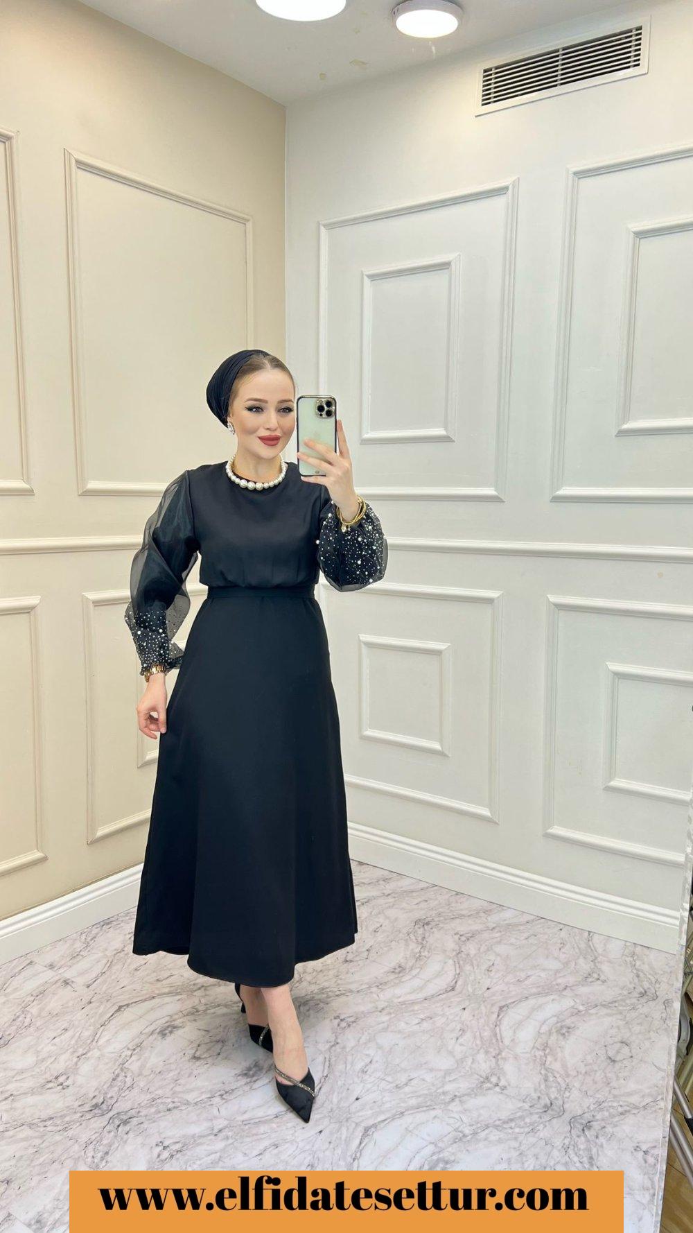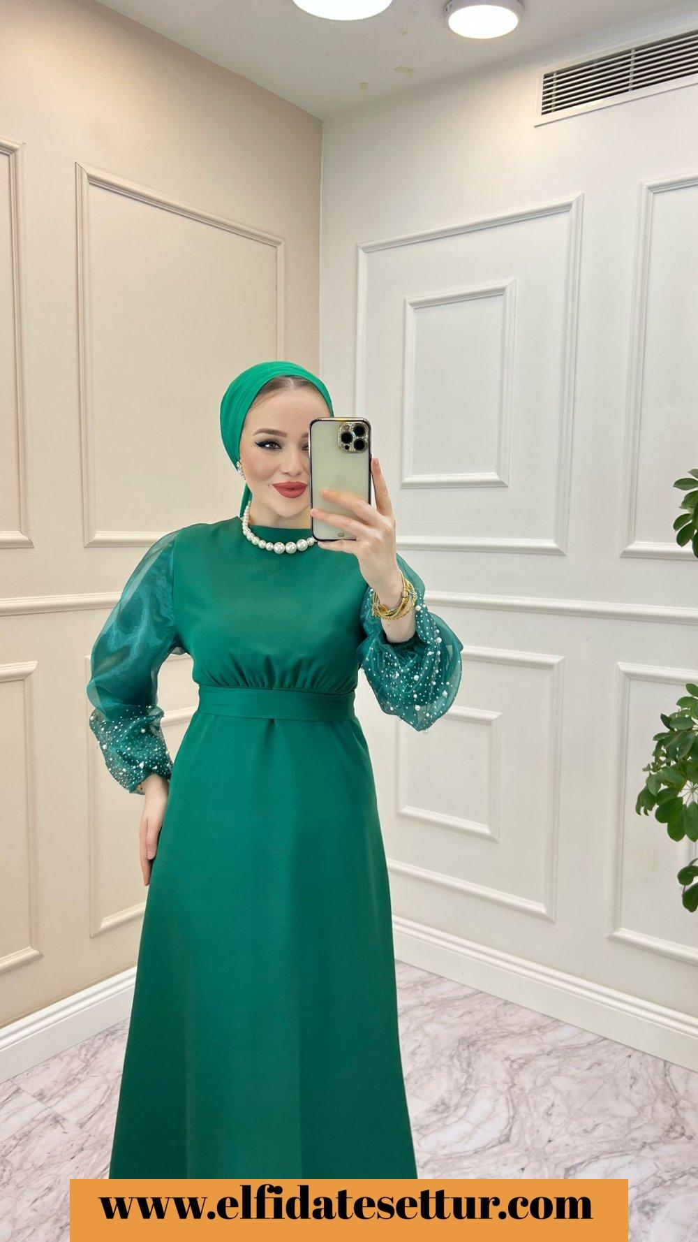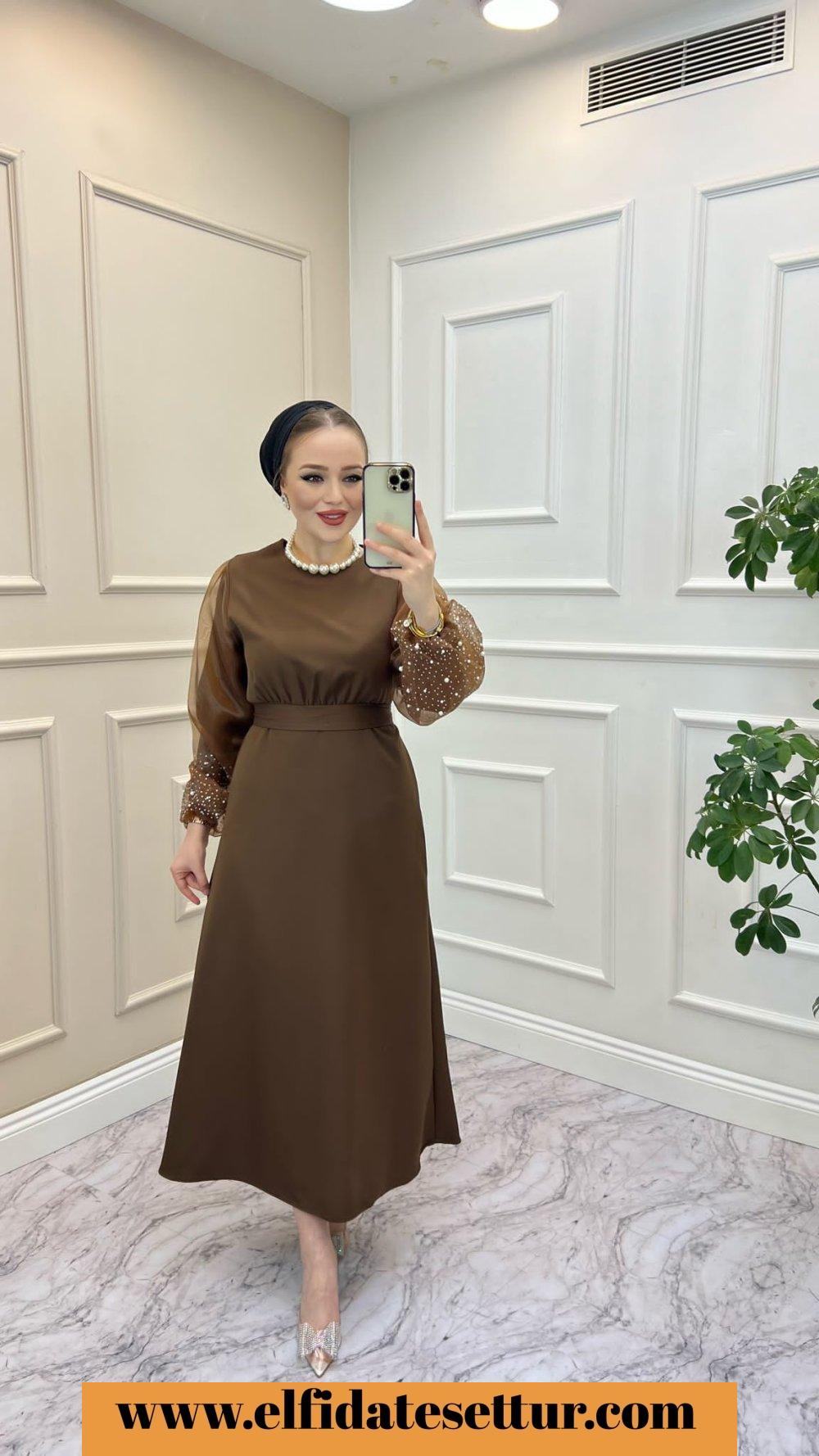 Abiye Kolları inci detaylıdır.