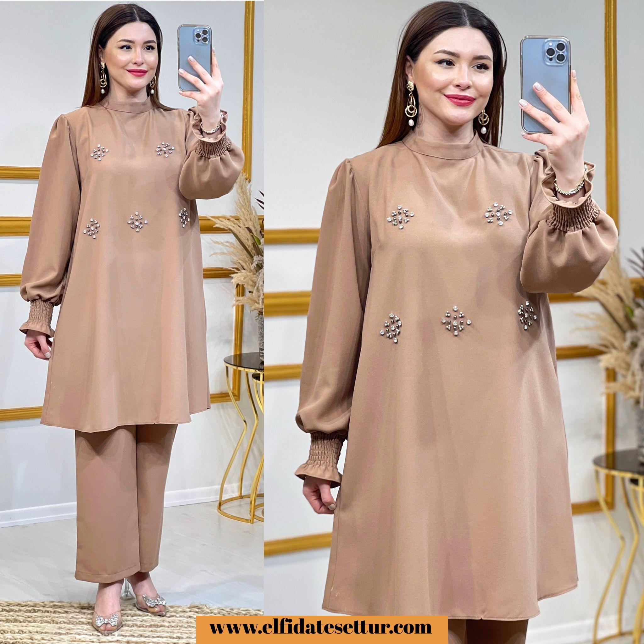 Takım kum krep kumaştır.