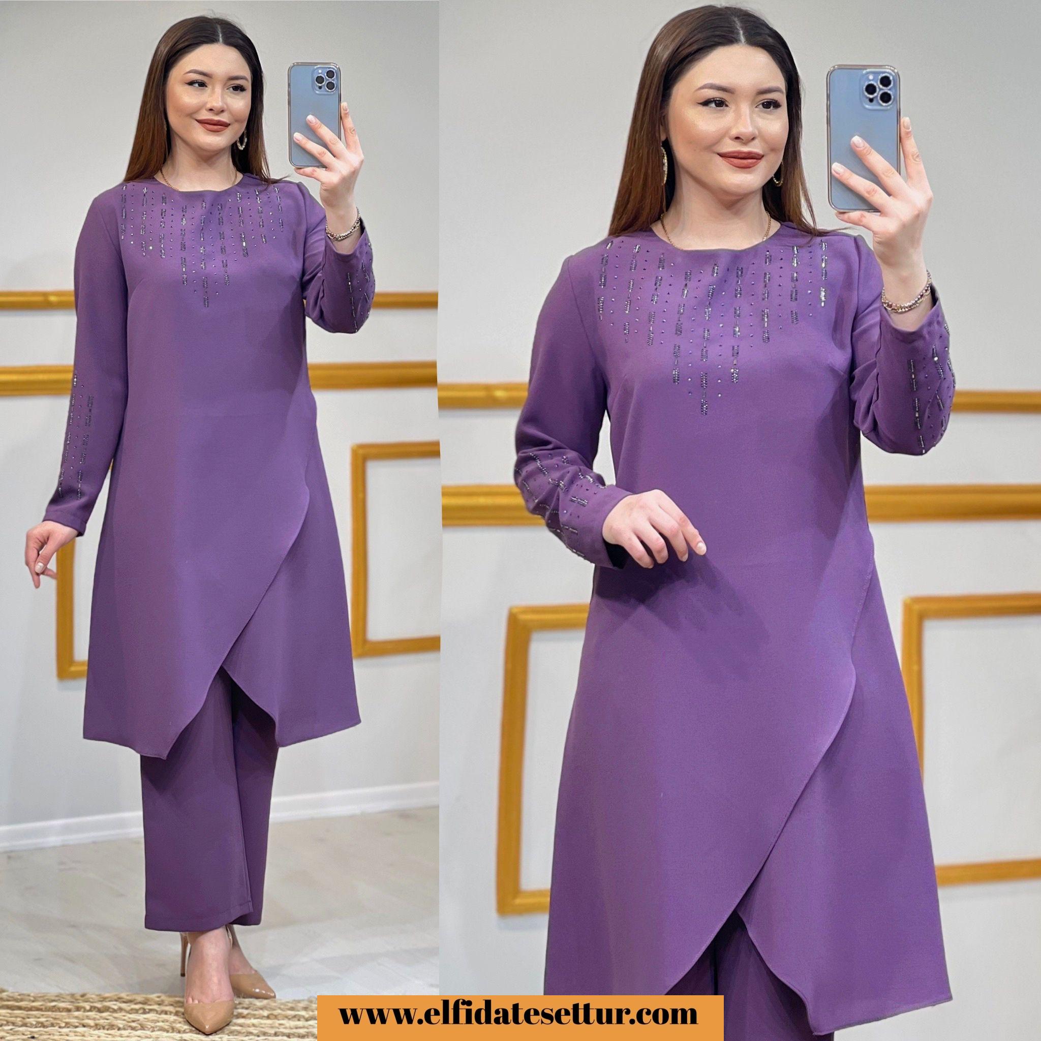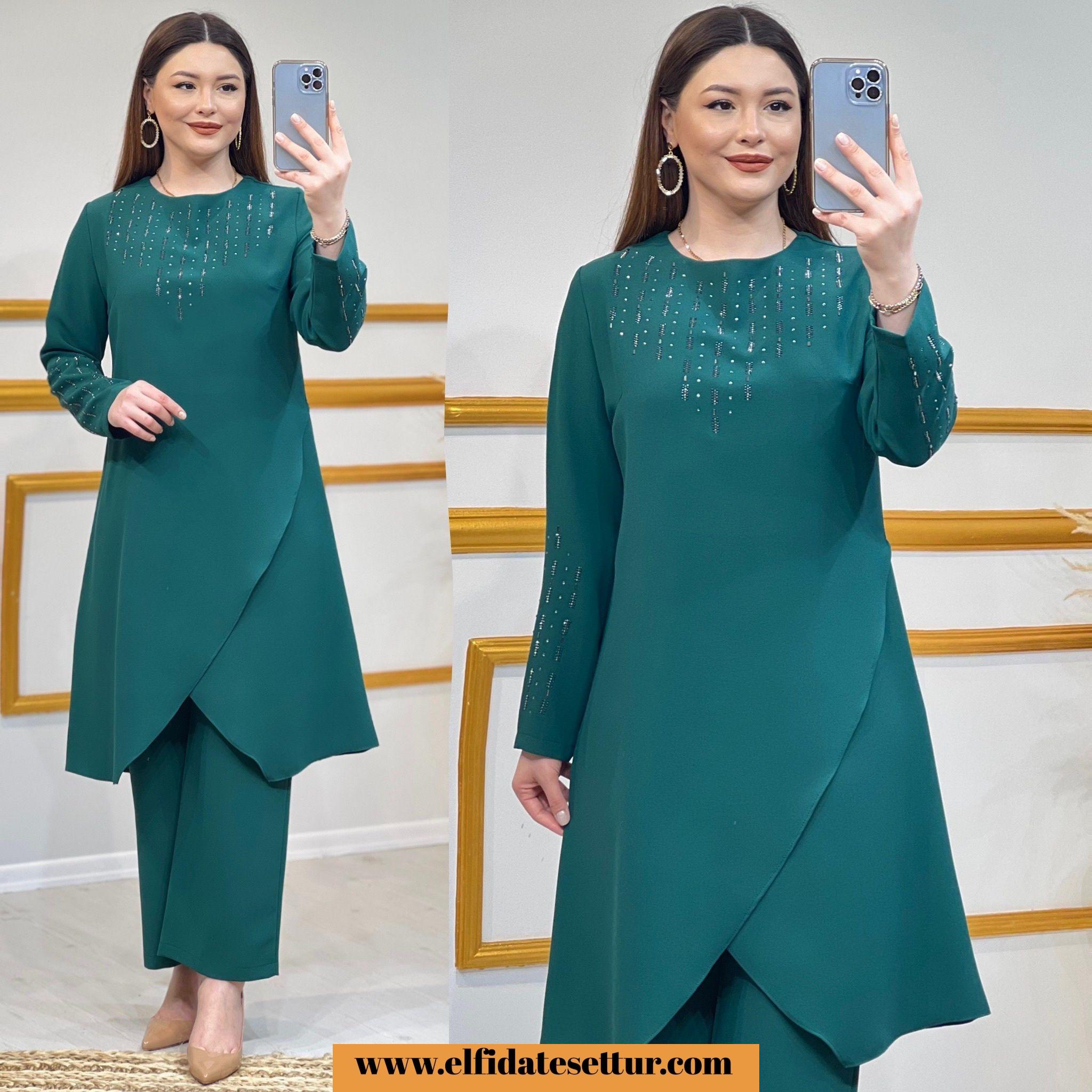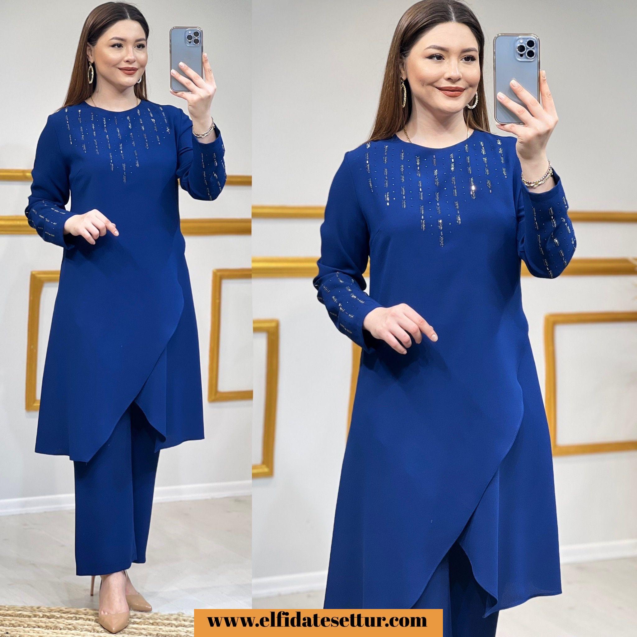 Tunik ön kısmı asimetrik kesimdir.