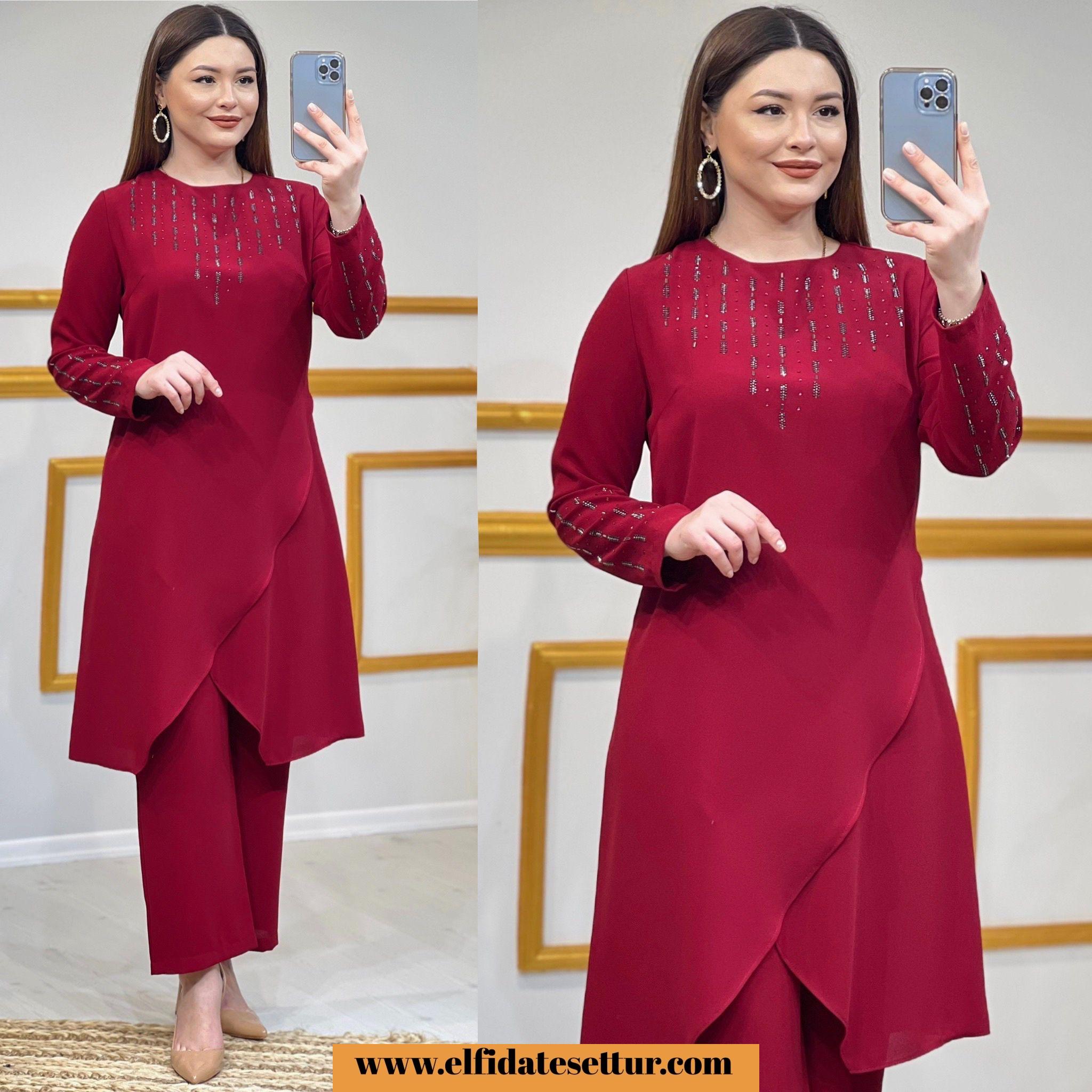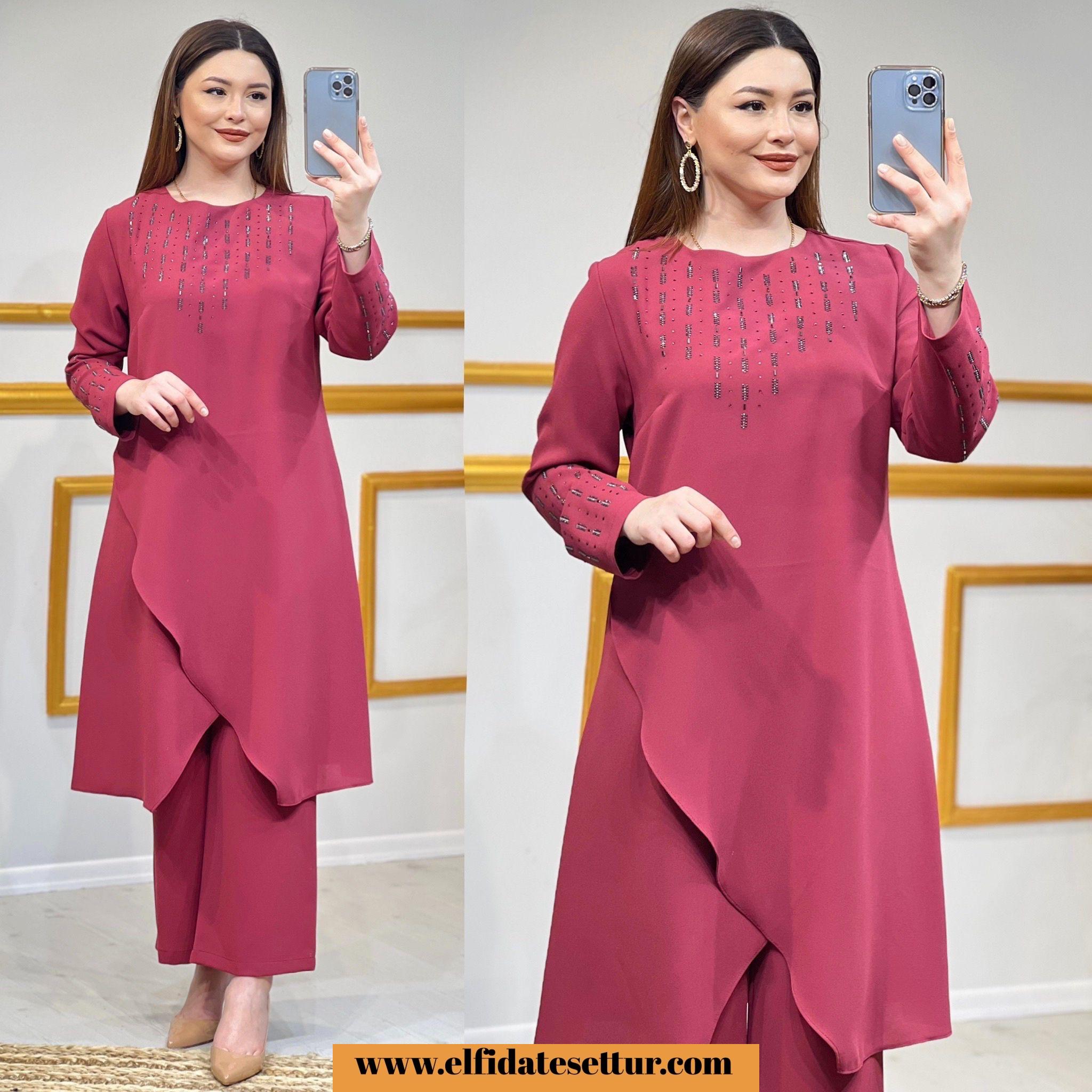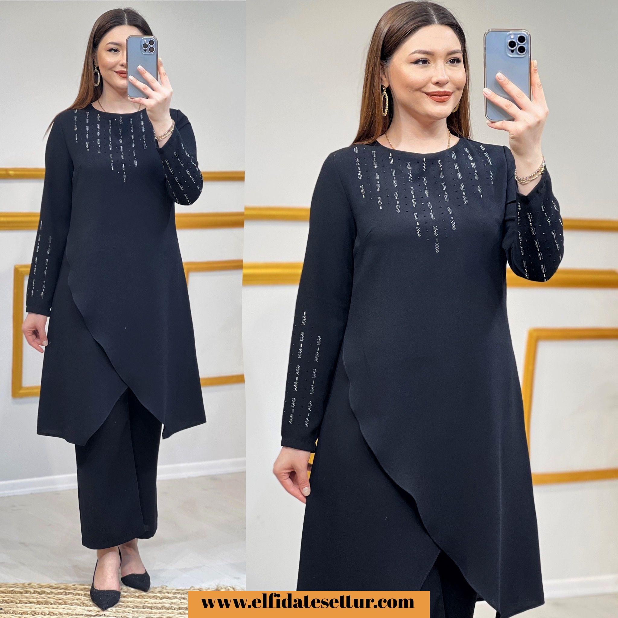Tunik ön kısmı asimetrik kesimdir.