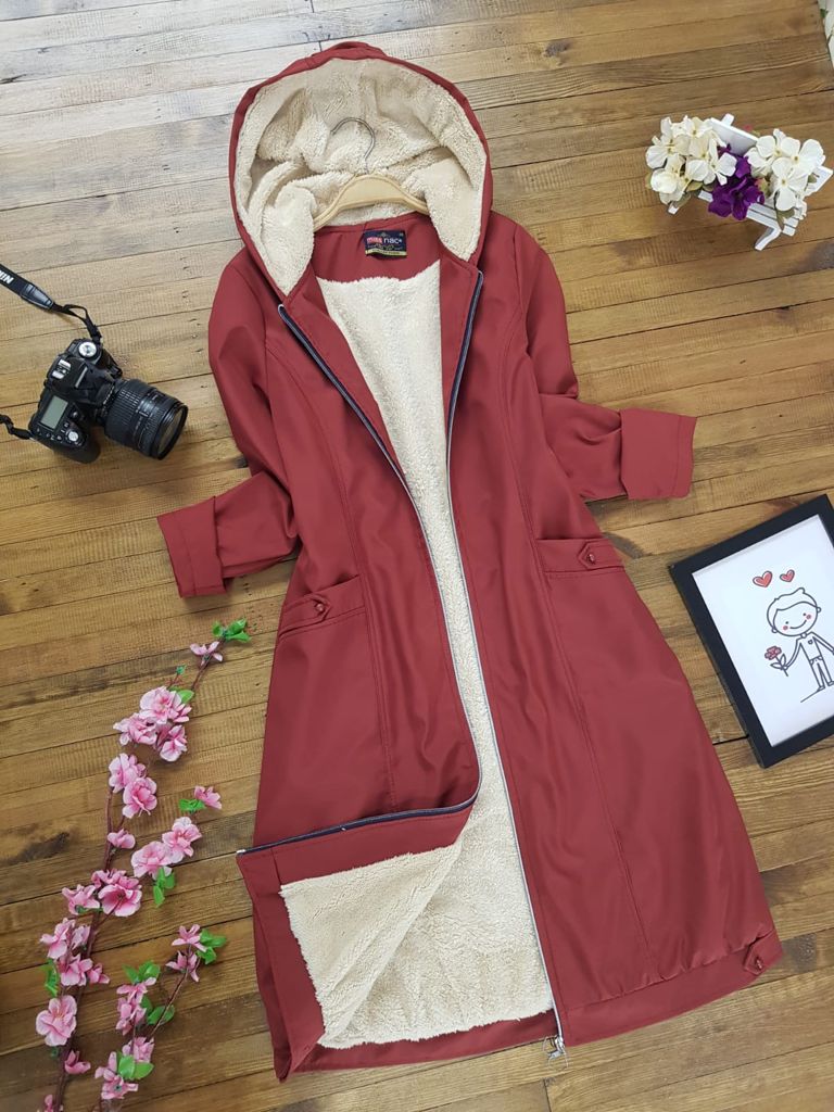 💐Bondit kumaş, kapşonuda kürklüdür, fermuarlı, boy 105 cm