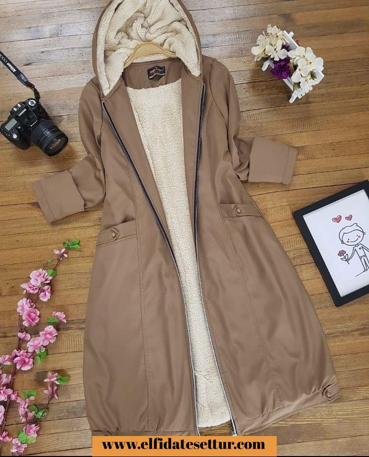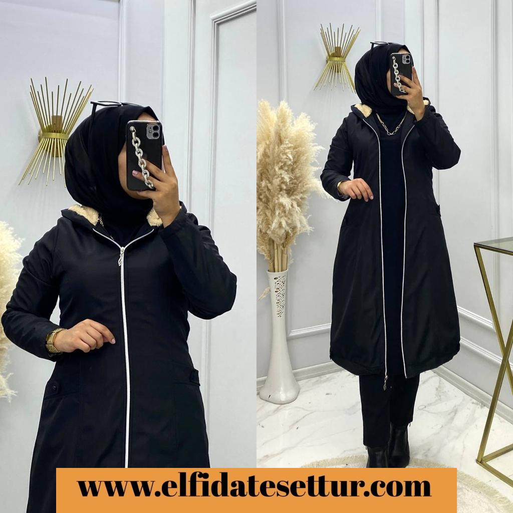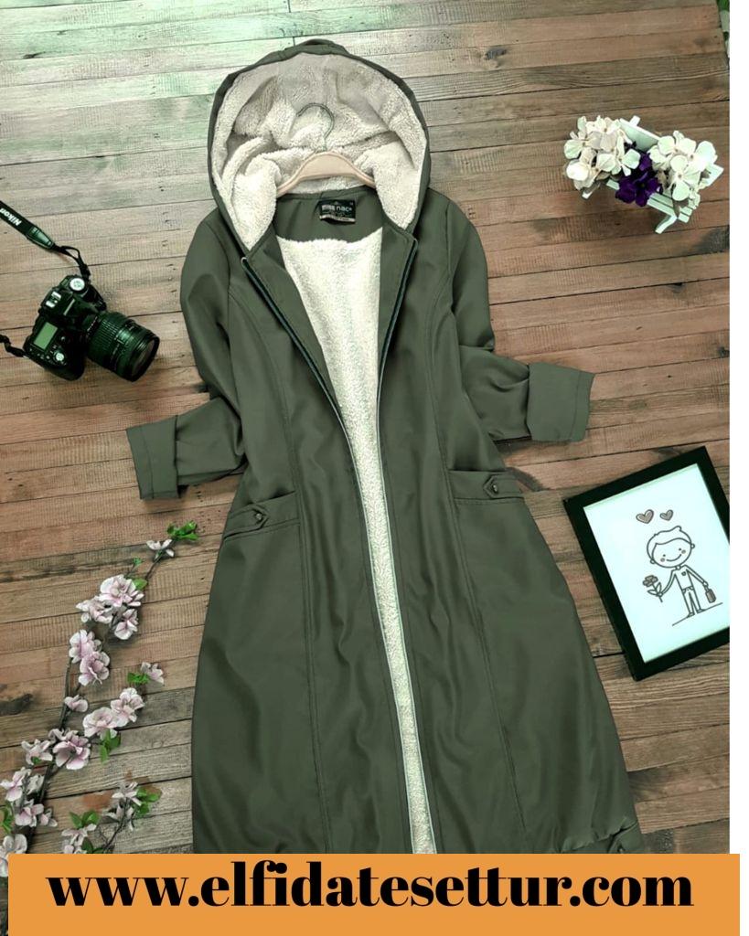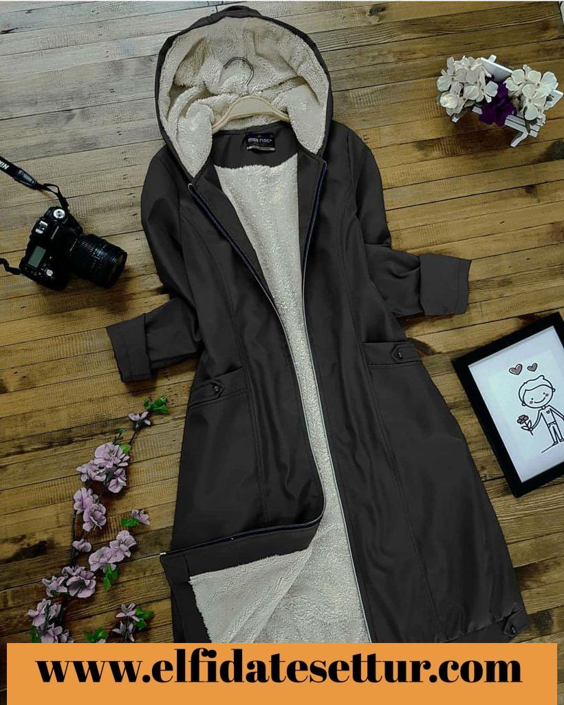 💐Bondit kumaş, kapşonuda kürklüdür, fermuarlı, boy 105 cm