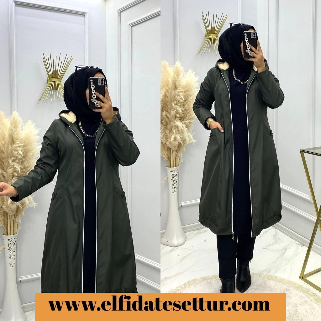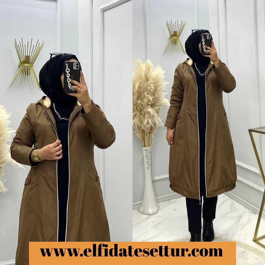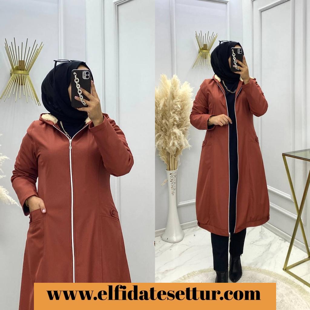💐Bondit kumaş, kapşonuda kürklüdür, fermuarlı, boy 105 cm