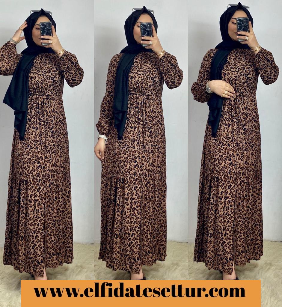 🛍52 bedene kadar tüm bedenler , harika boydan düğmeli leopar elbisemiz