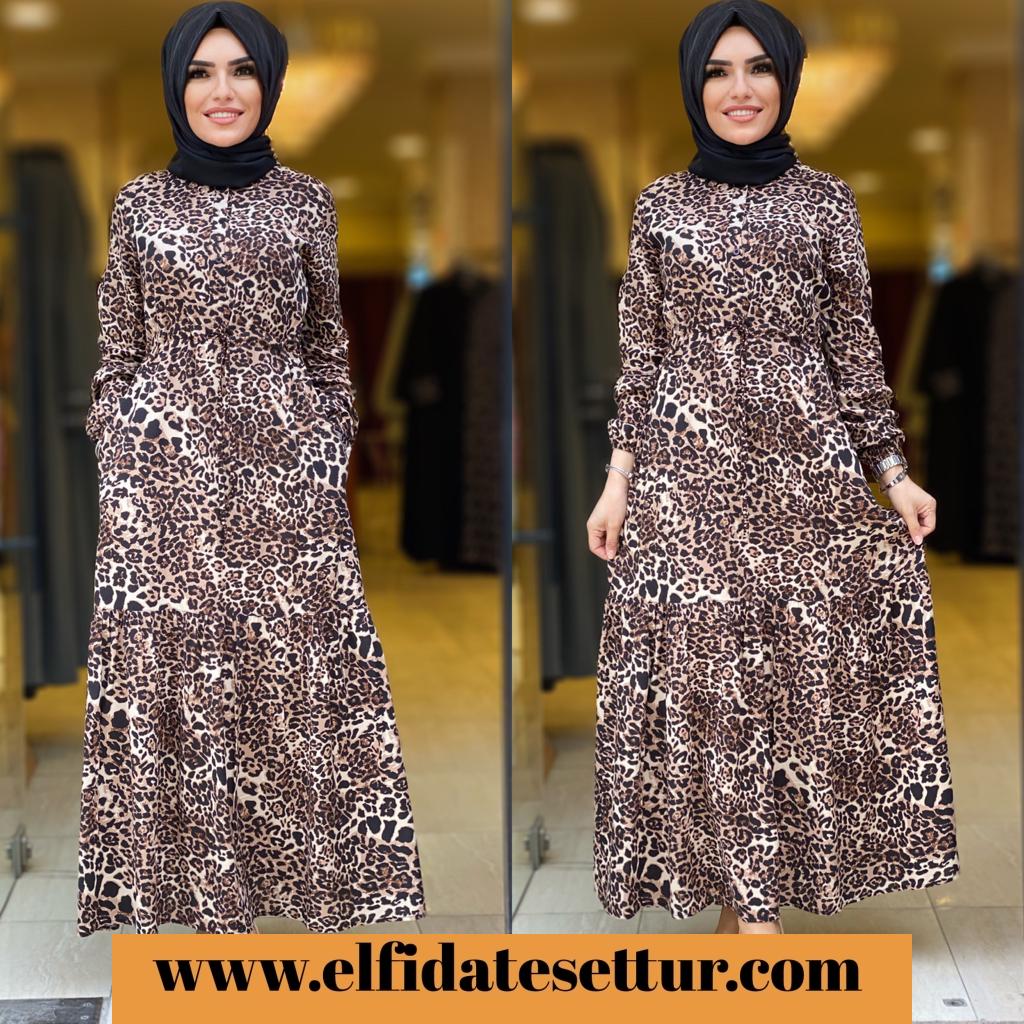 🌸KOD 4055 (F) LEOPAR ELBİSE