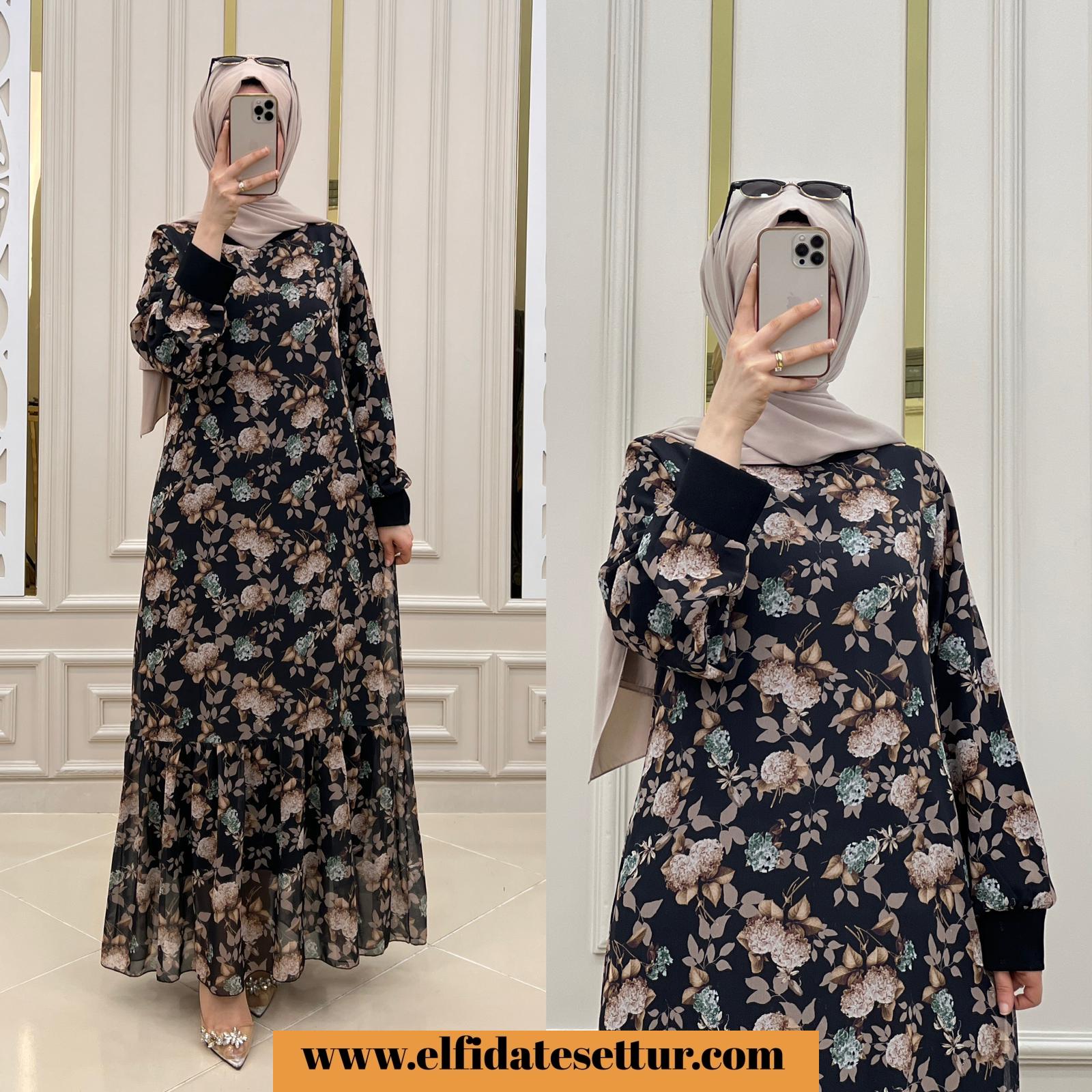 Leylak Tesettür Şifon Elbise