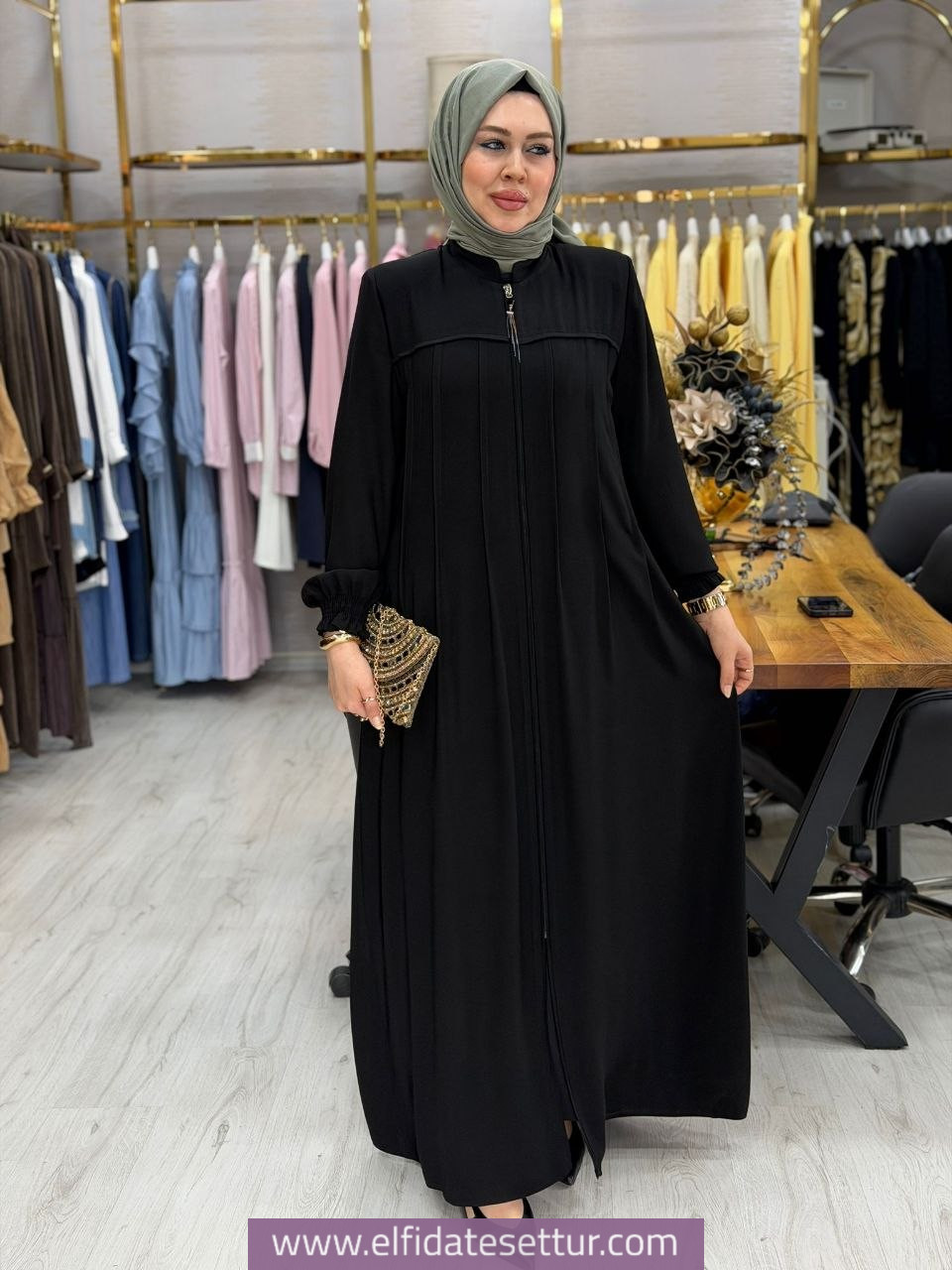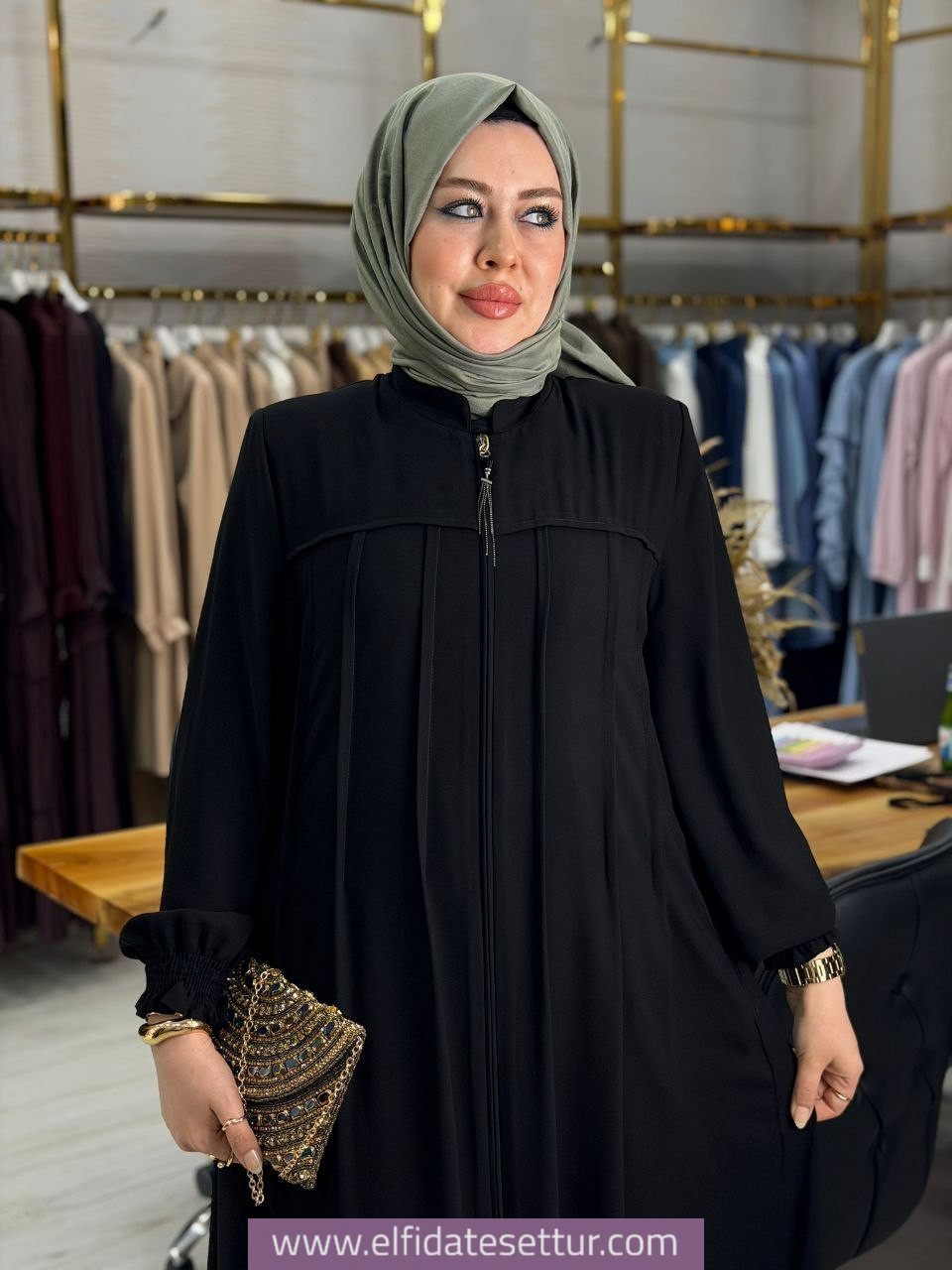 Kumaşı medine ipeğidir. Önü fermuarlıdır. Cep mevcuttur.