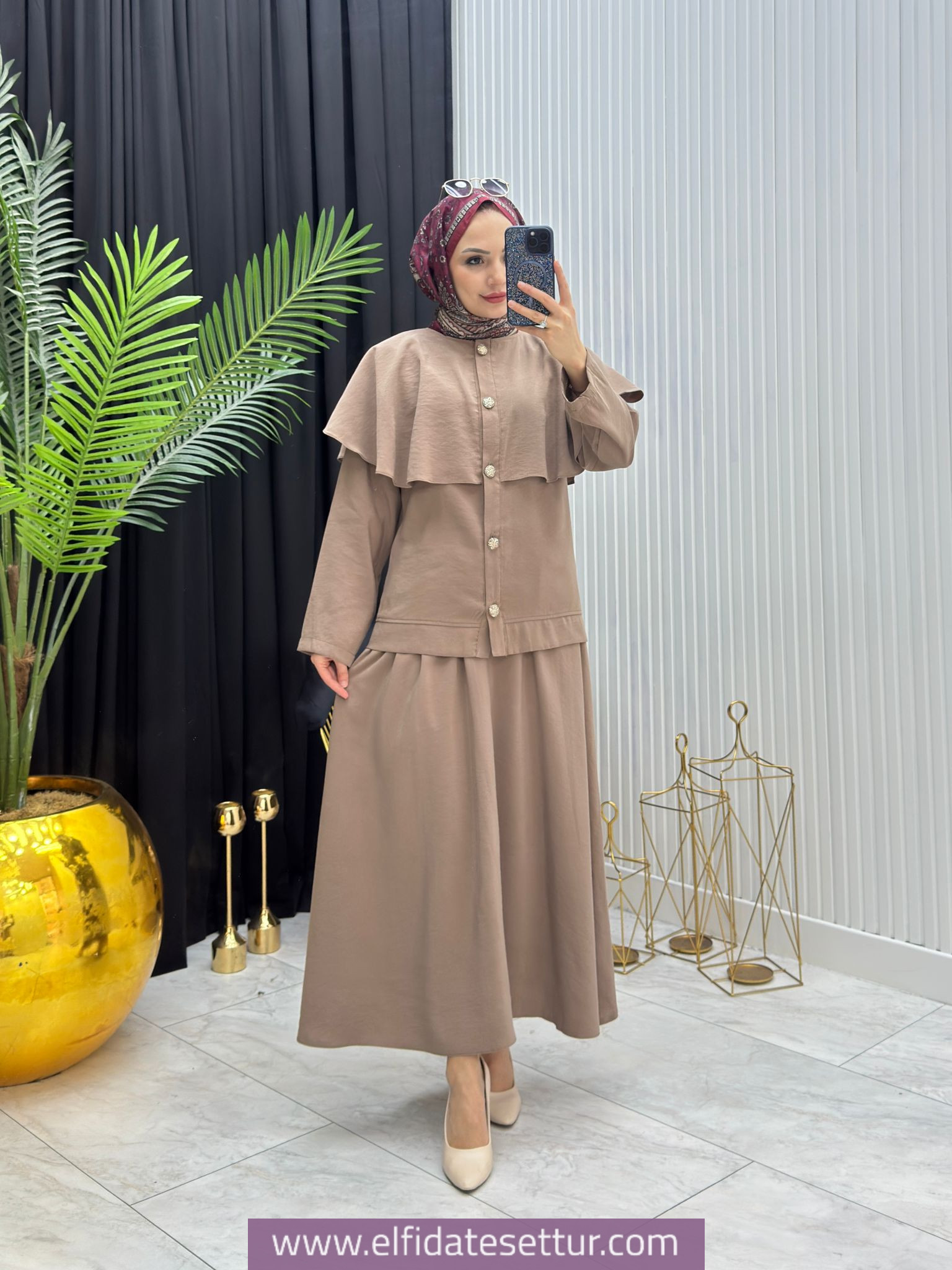 ☔️etek bluz olmak üzere 2 parçadan oluşmaktadır bluz önden düğmeli etek beli lastiklidir etek 90/95 cm dir
