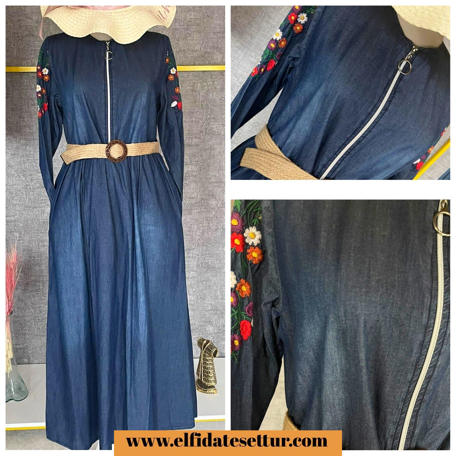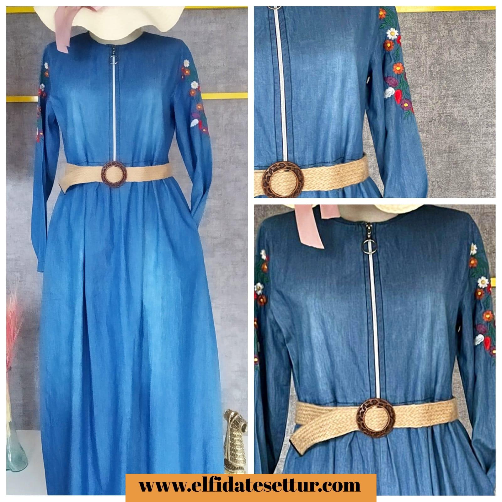 ☘ ŞAHANE YENİ MODEL NAKİSLİ KOT ELBİSE