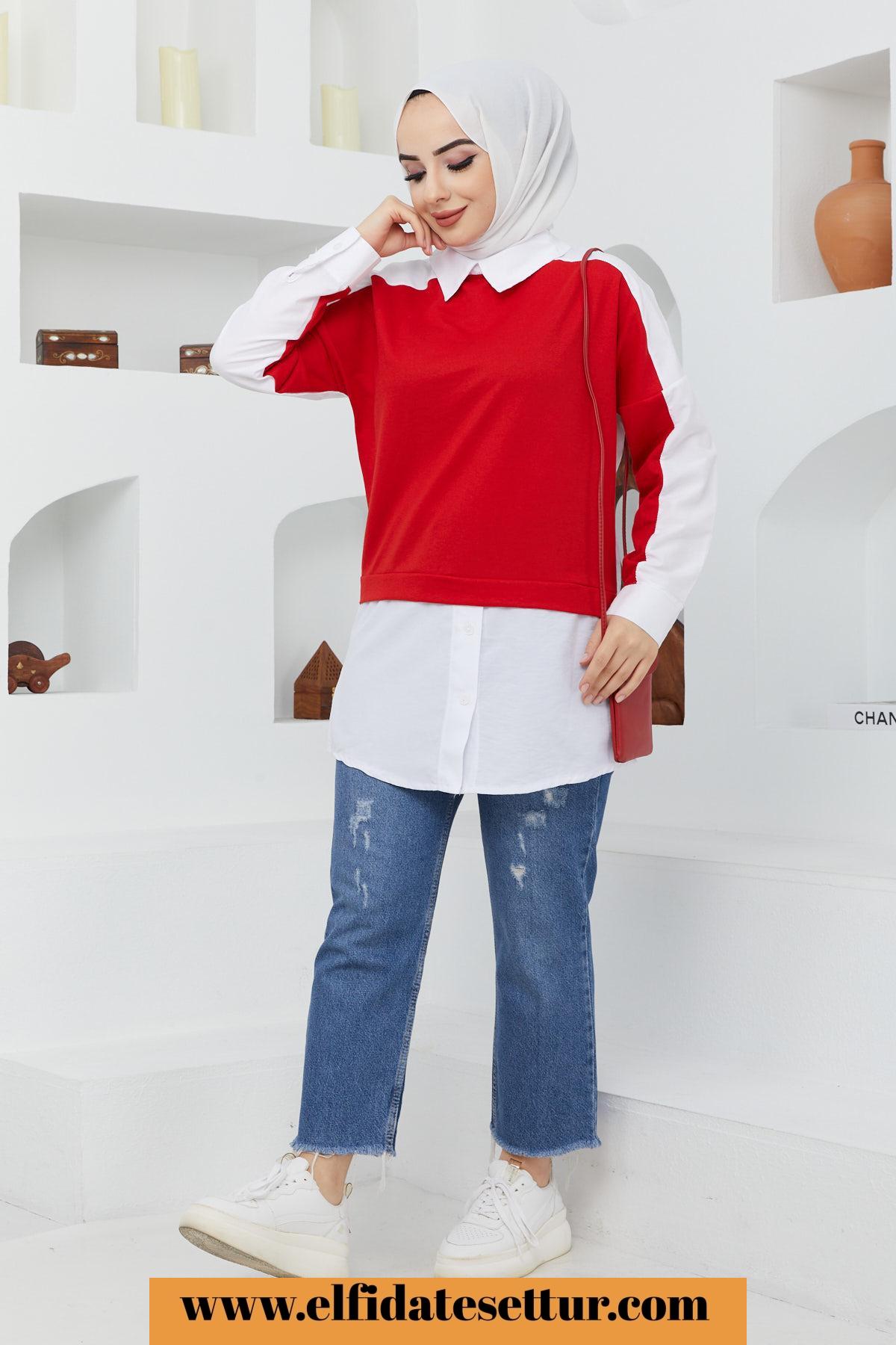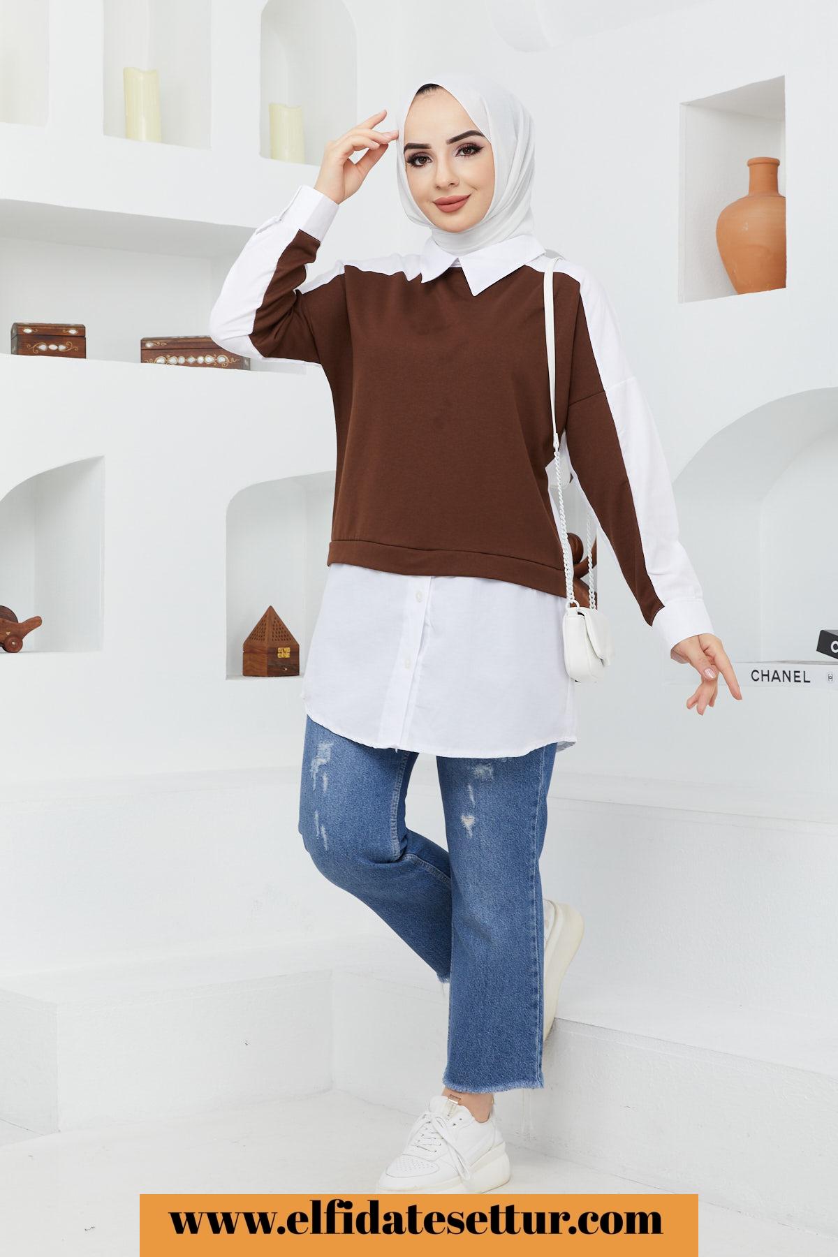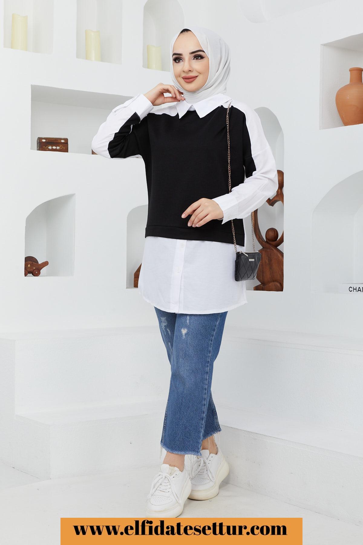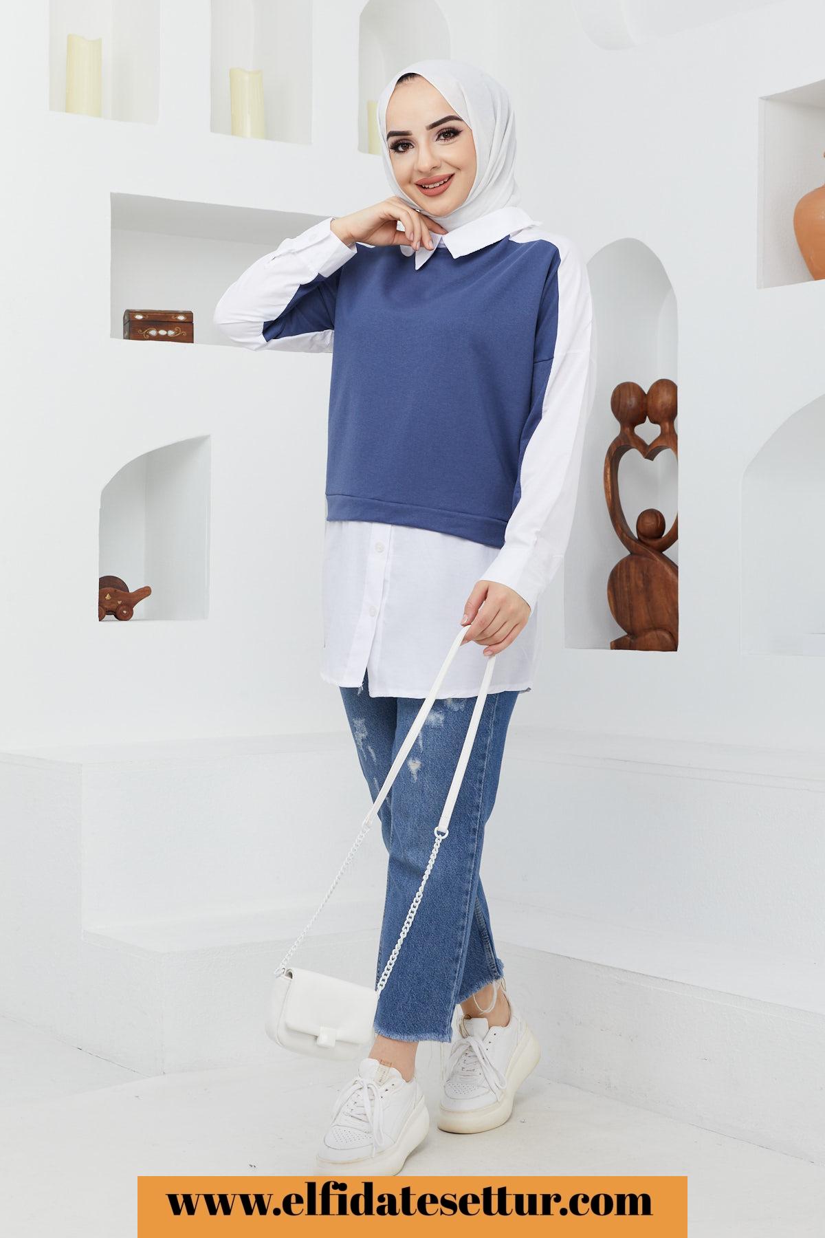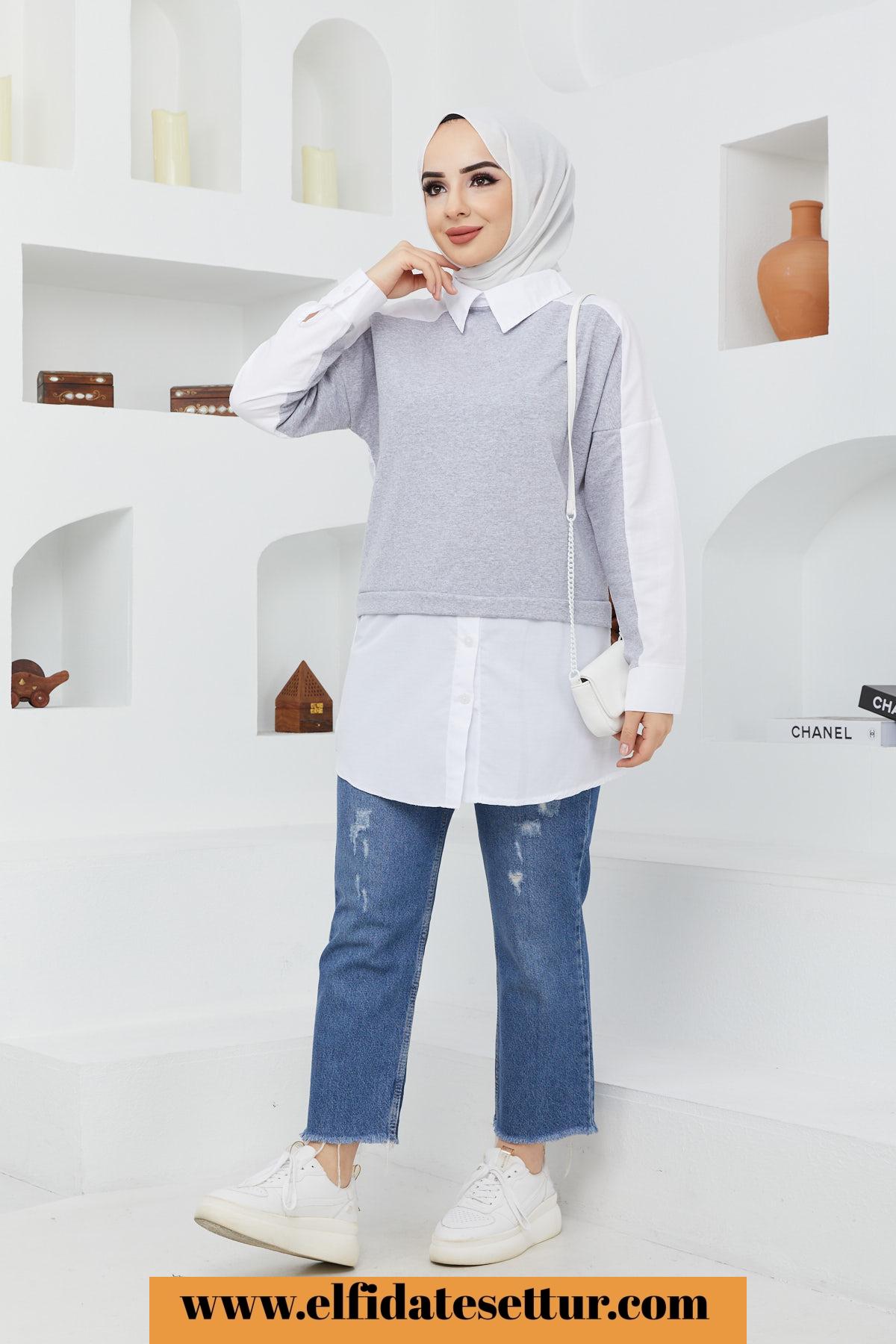 🌷Gömlek Yaka Önü Parçalı Gömlek Tunik