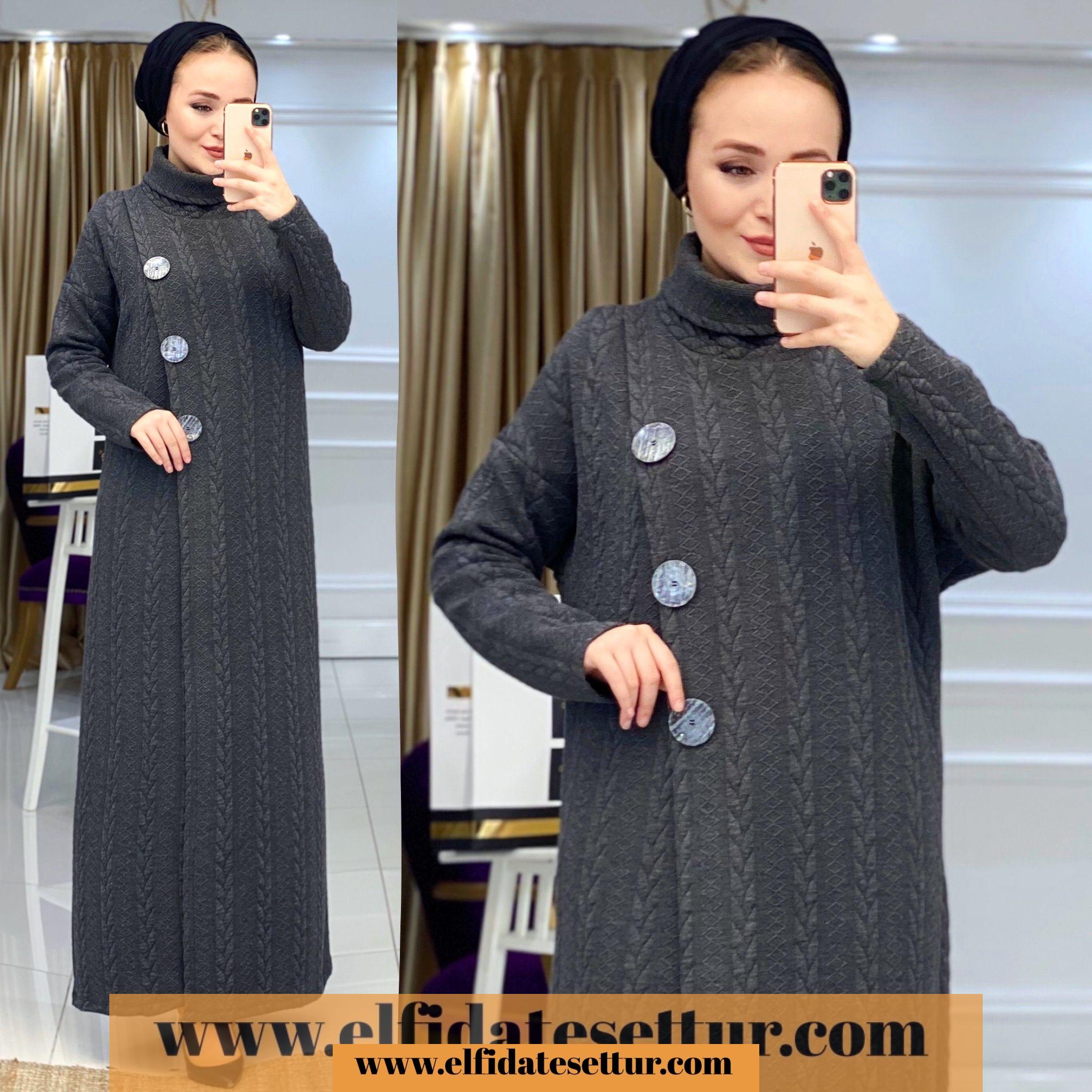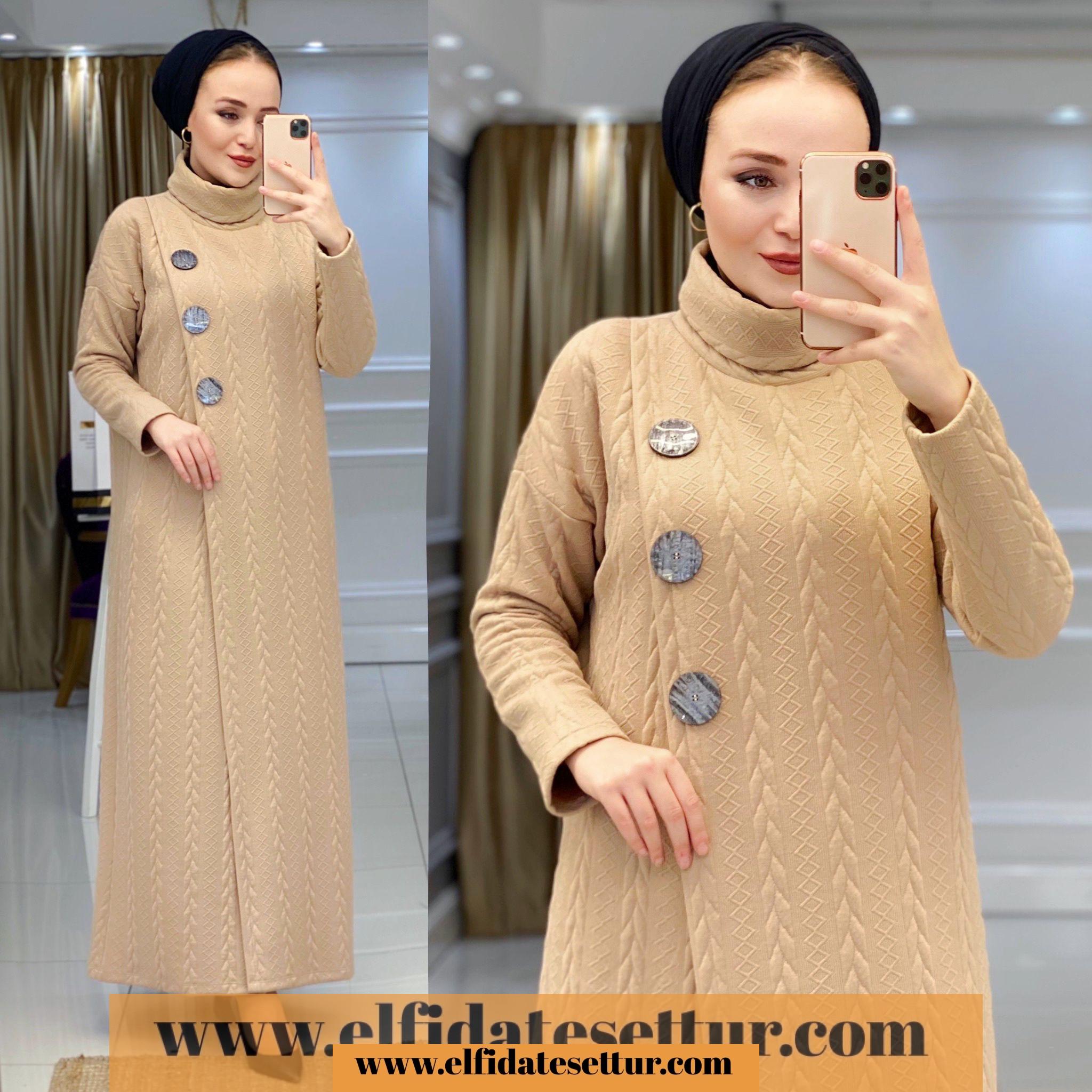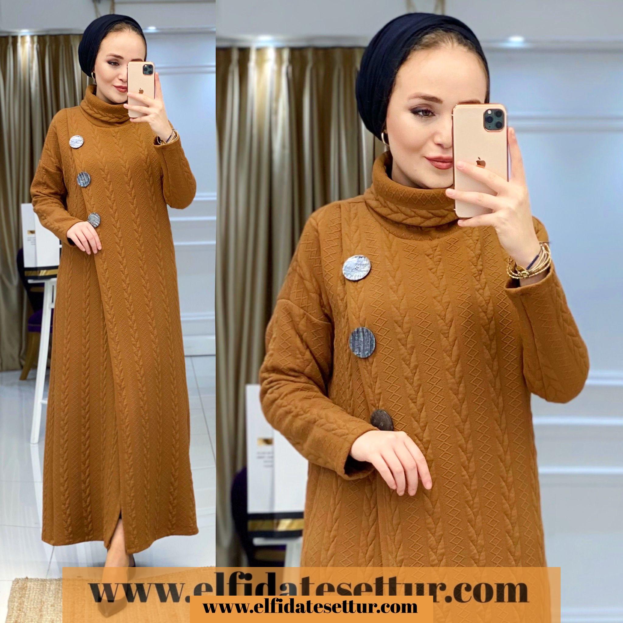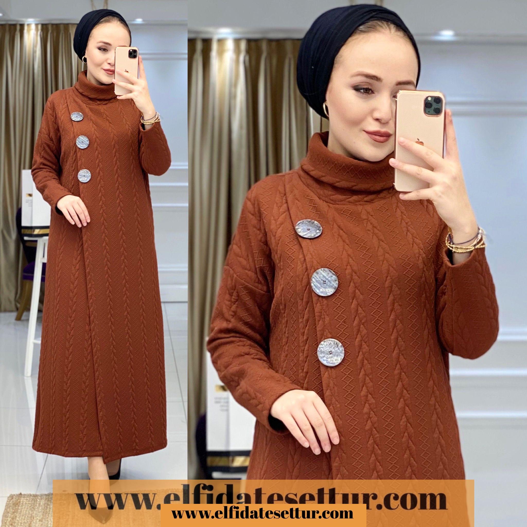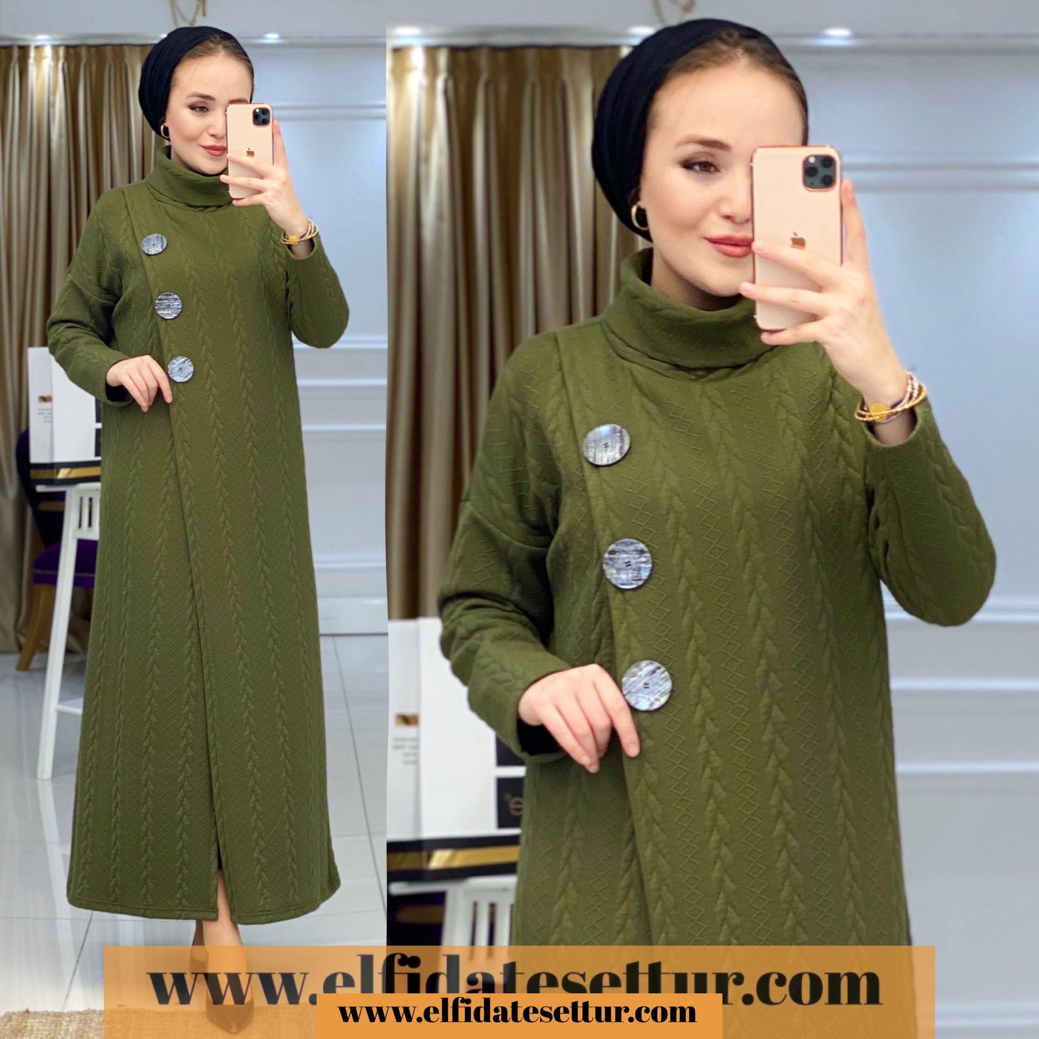 1. Sınıf Örme Kumaştır. Tunik elbise göğüs kısmı 3 düğme detaylıdır. Tunik elbise boğazlıdır.