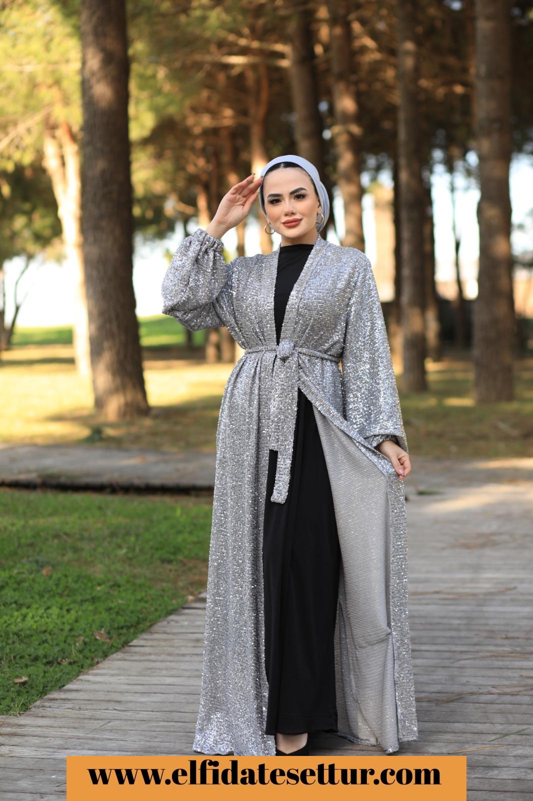 🎀KUMAŞ: Abaya Parlak Kumaş, İçlik Sandy Kumaş.