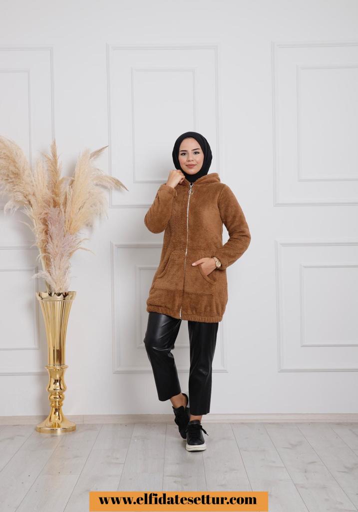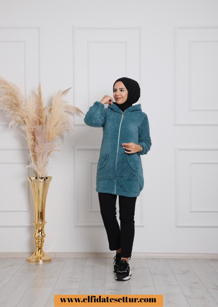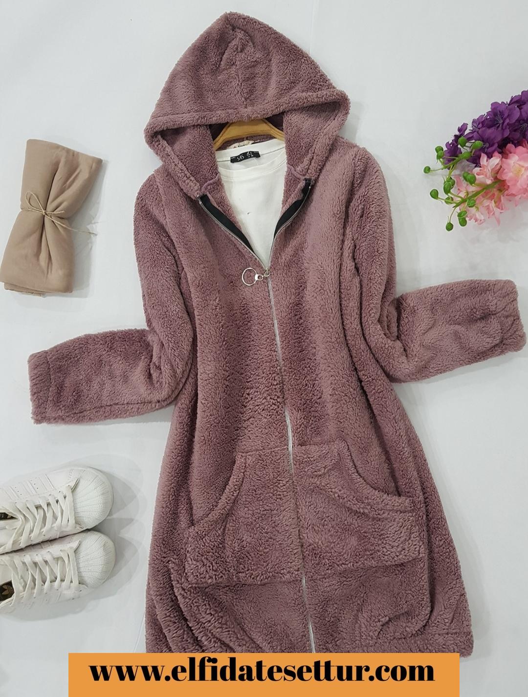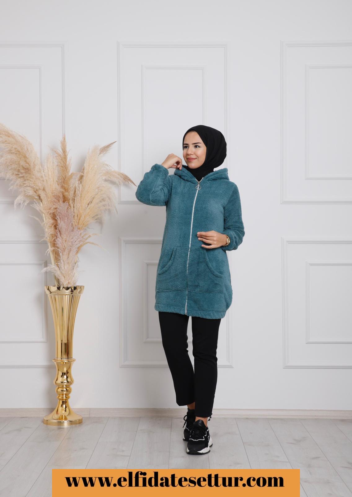 Fermauarlı cepli etek ucu lastikli kapşonlu
