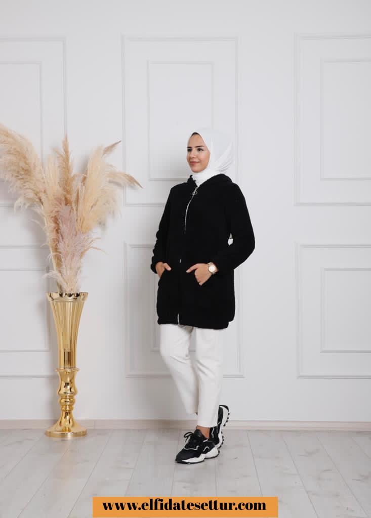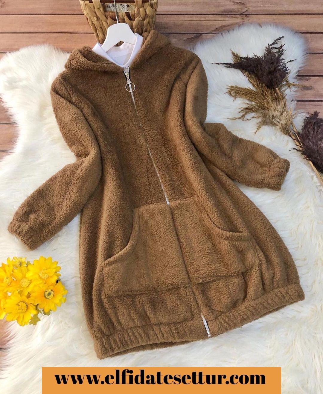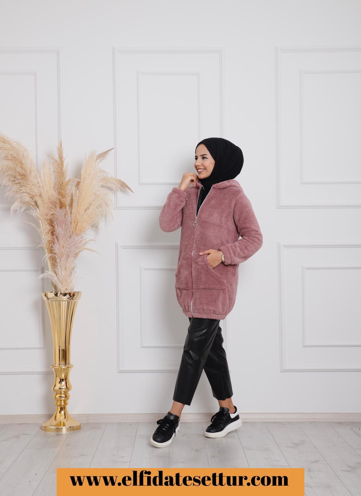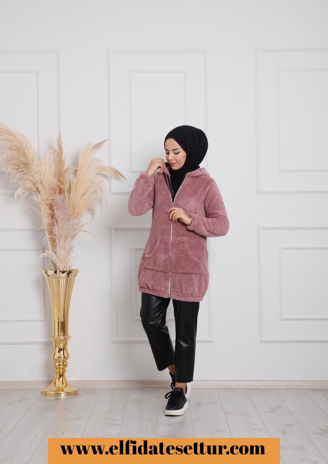 Fermauarlı cepli etek ucu lastikli kapşonlu