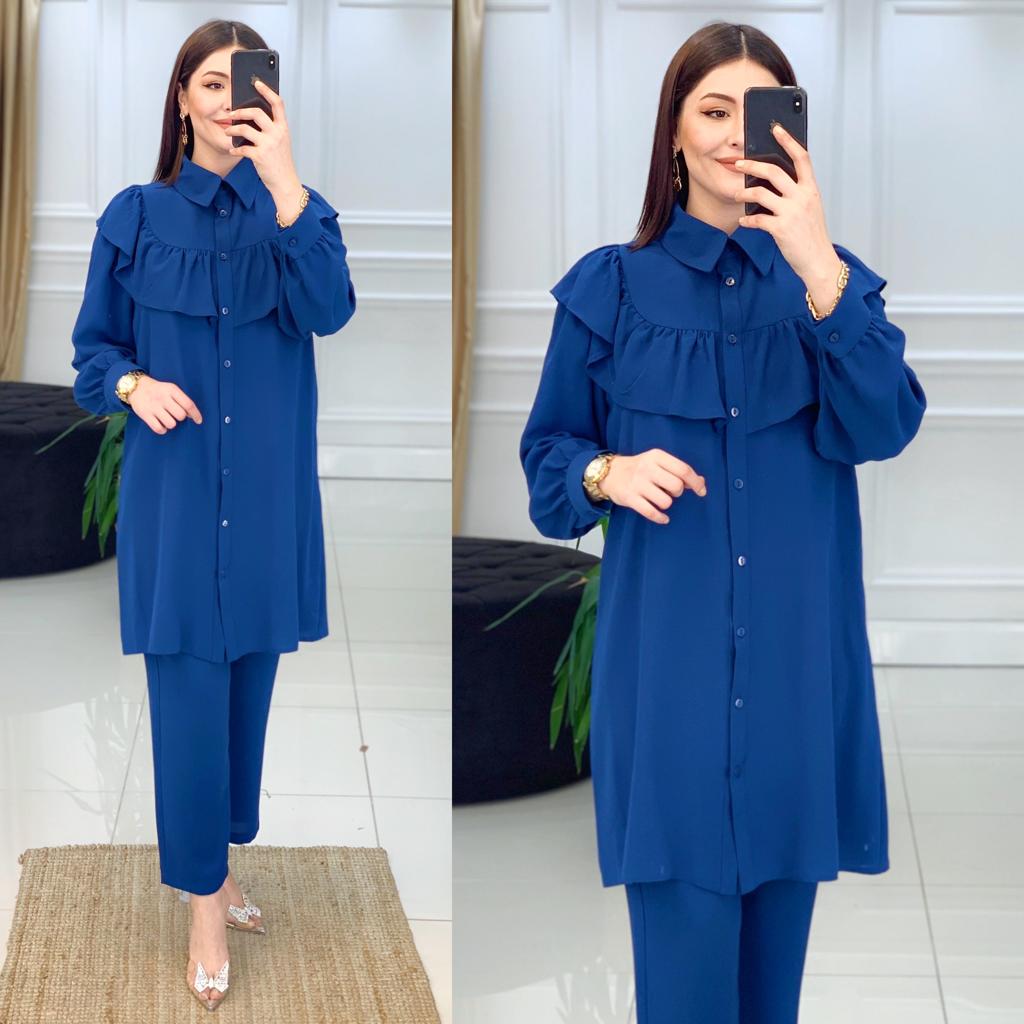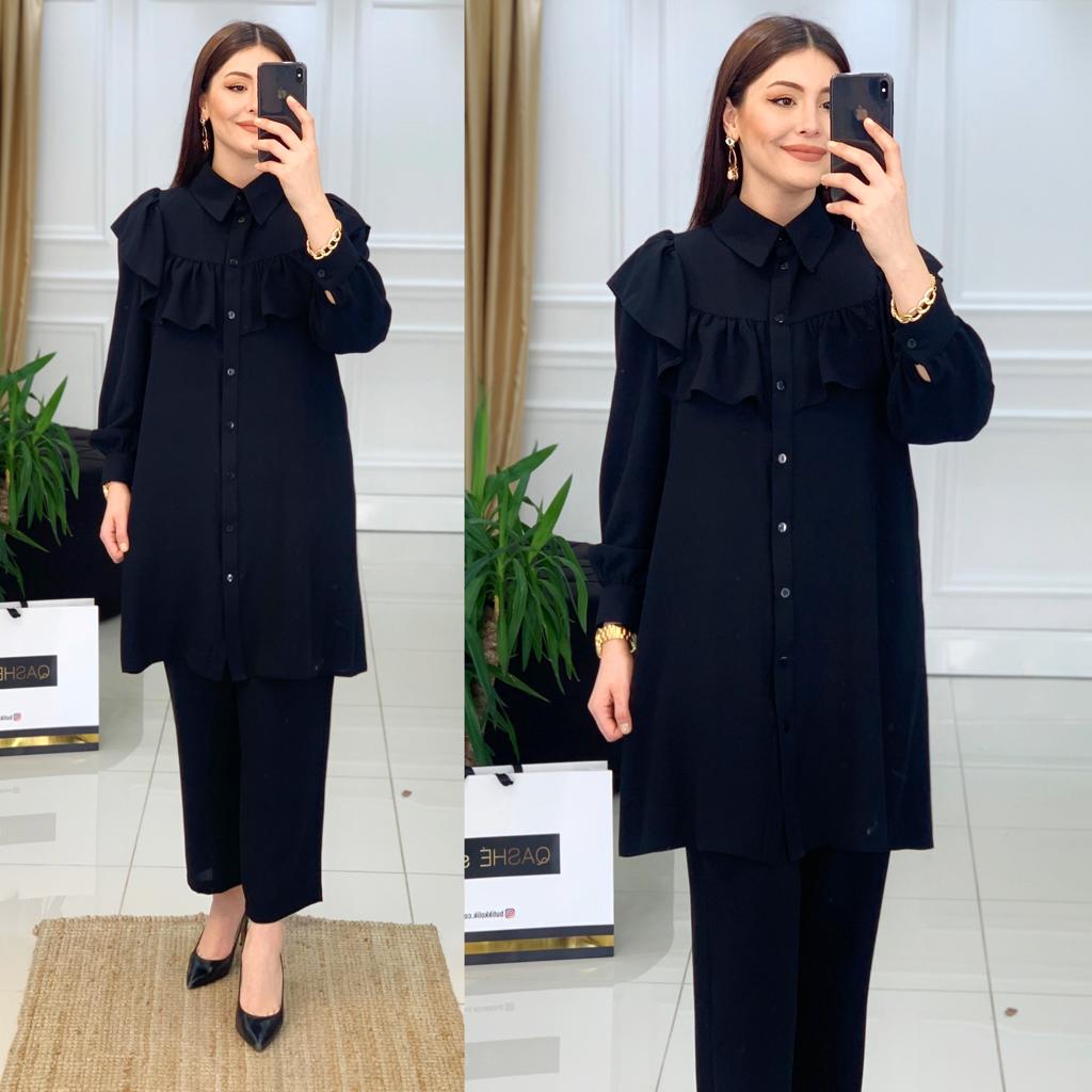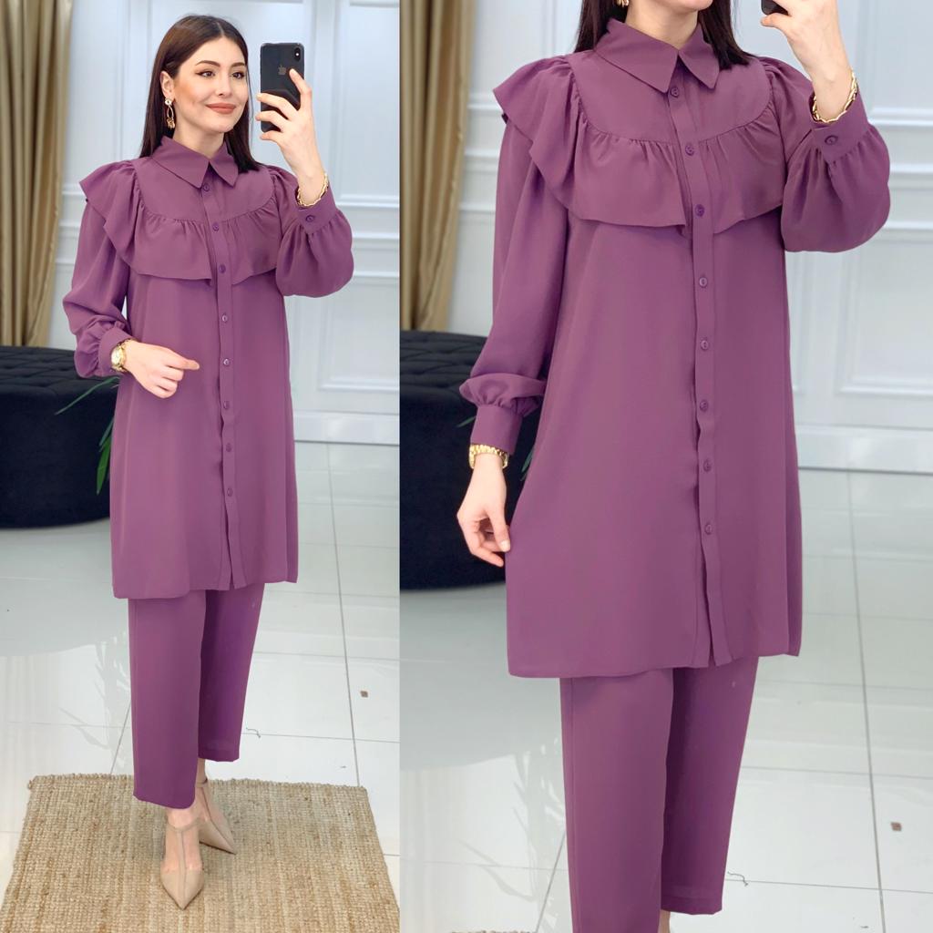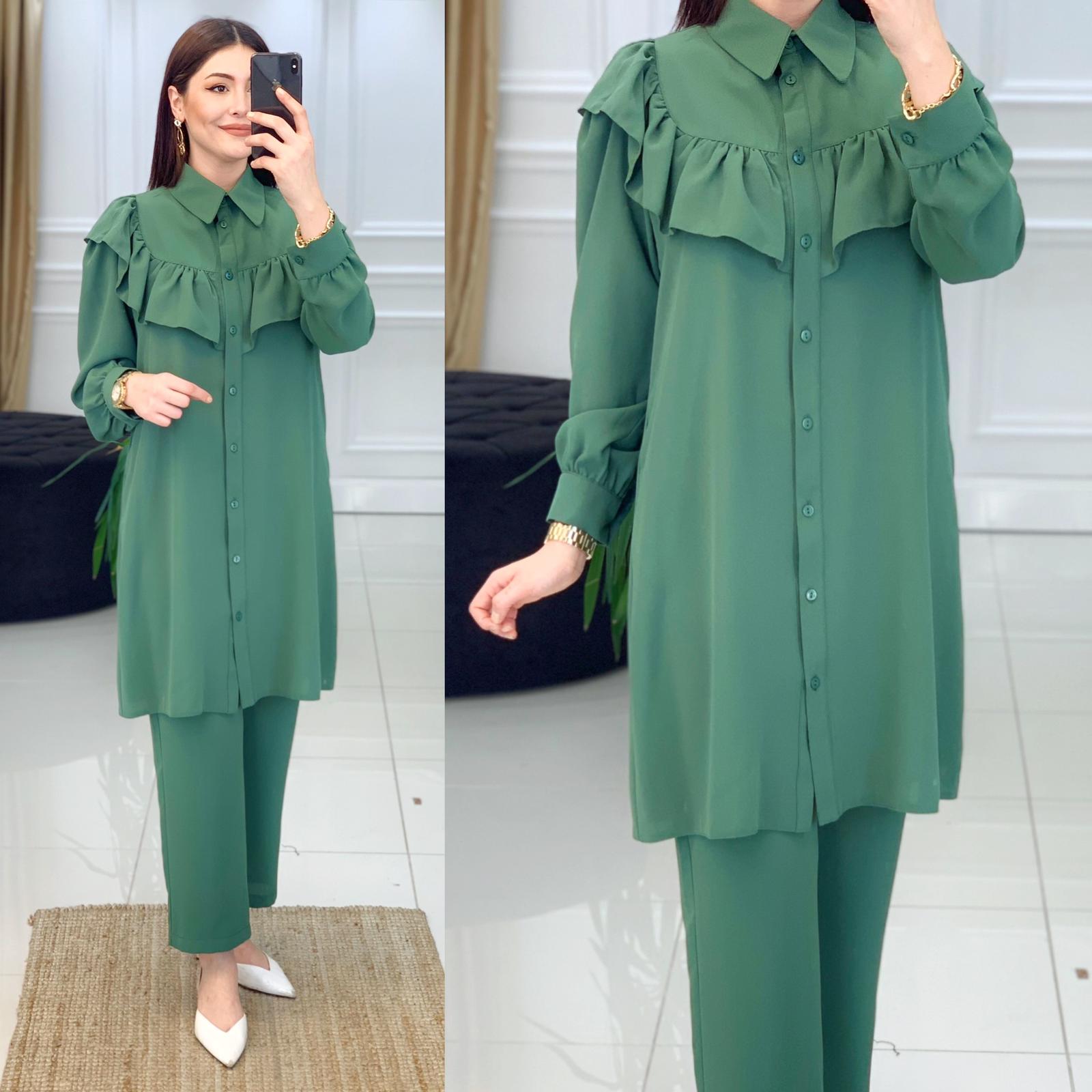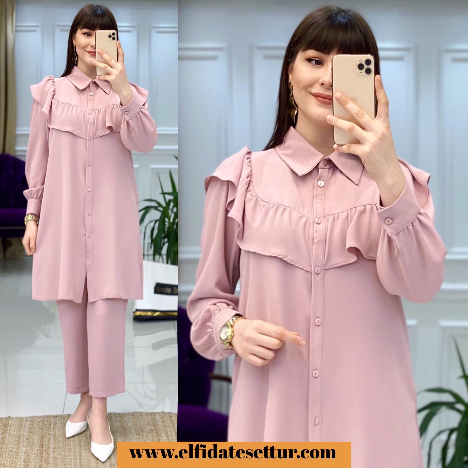 Tunik ön kısımdan düğmeli ve kol uçları düğmelidir.