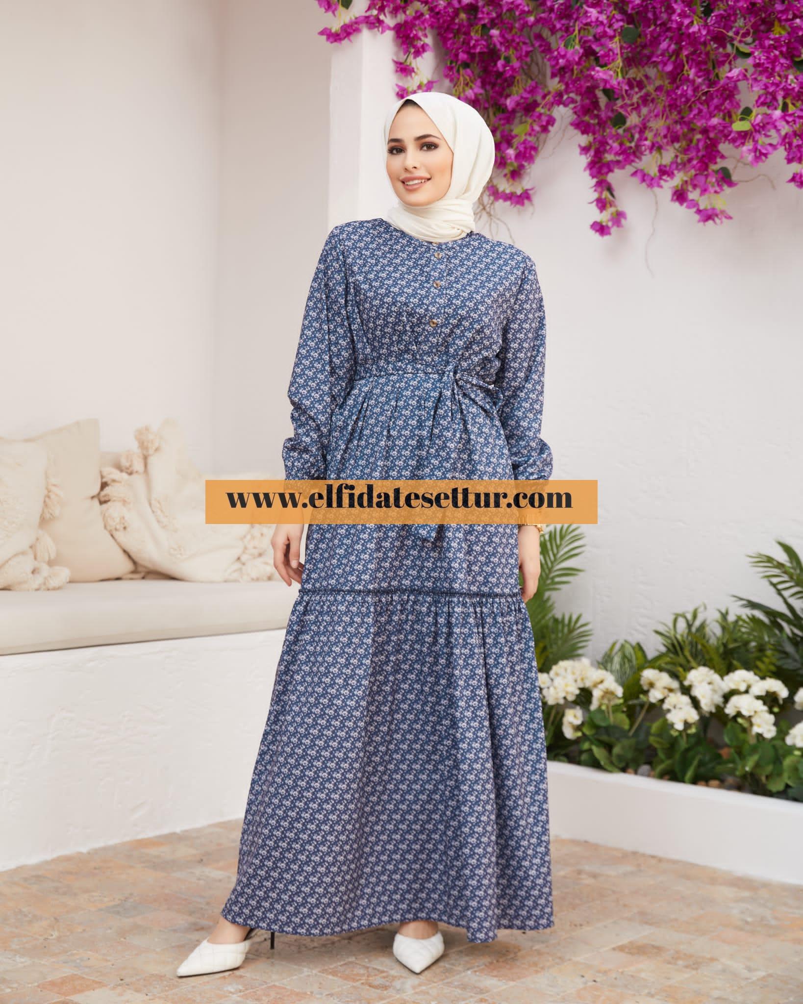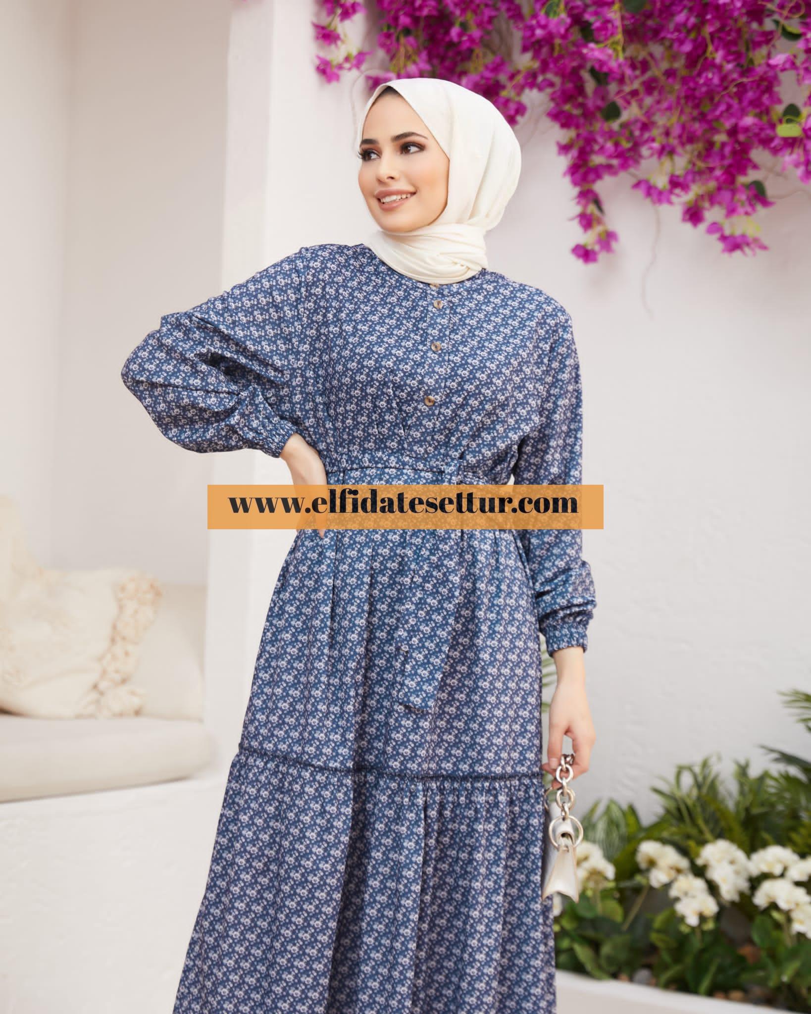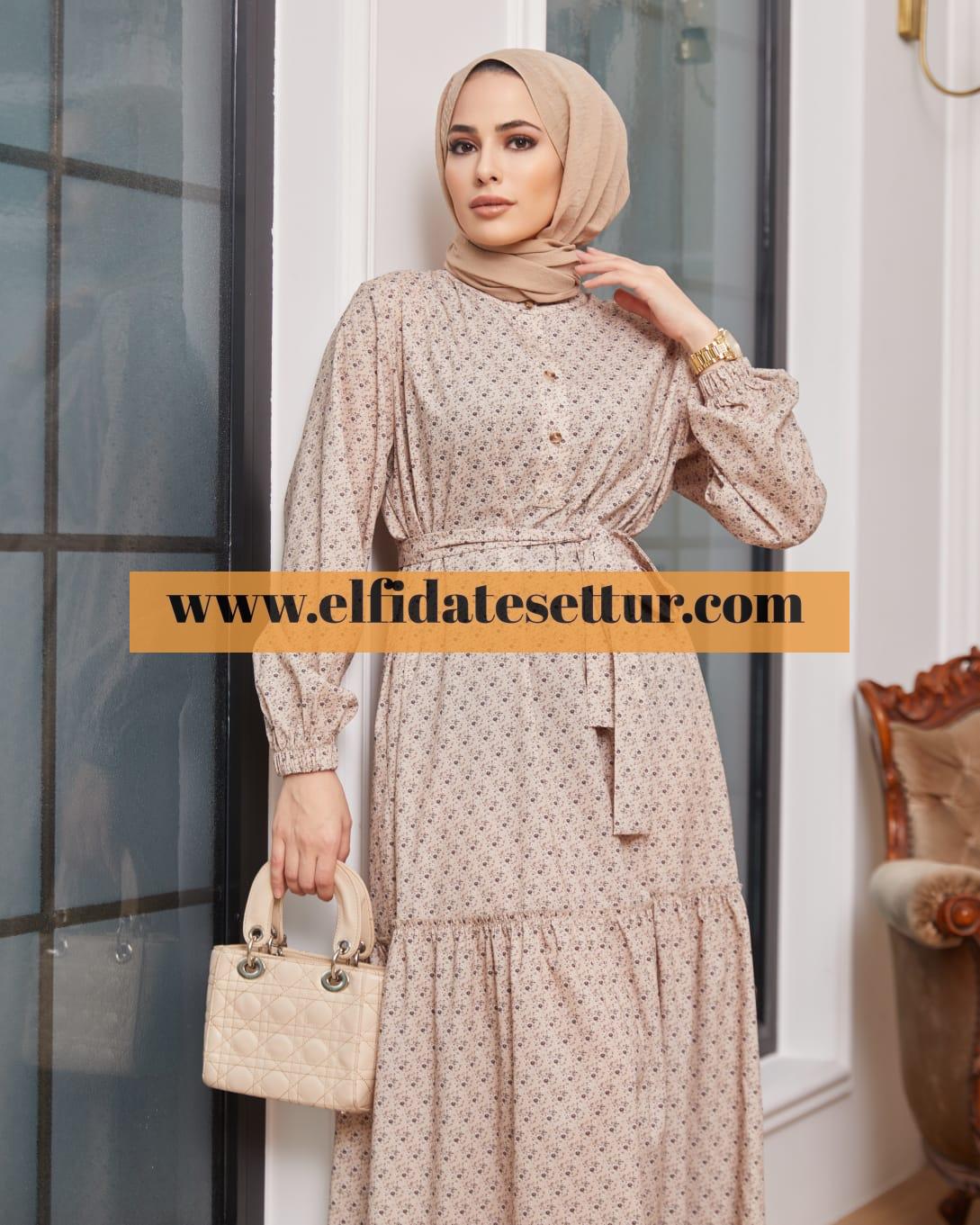 ETEK UCU FIRFIRLI, MİNİK ÇİÇEK DESENLİ ELBİSE💥