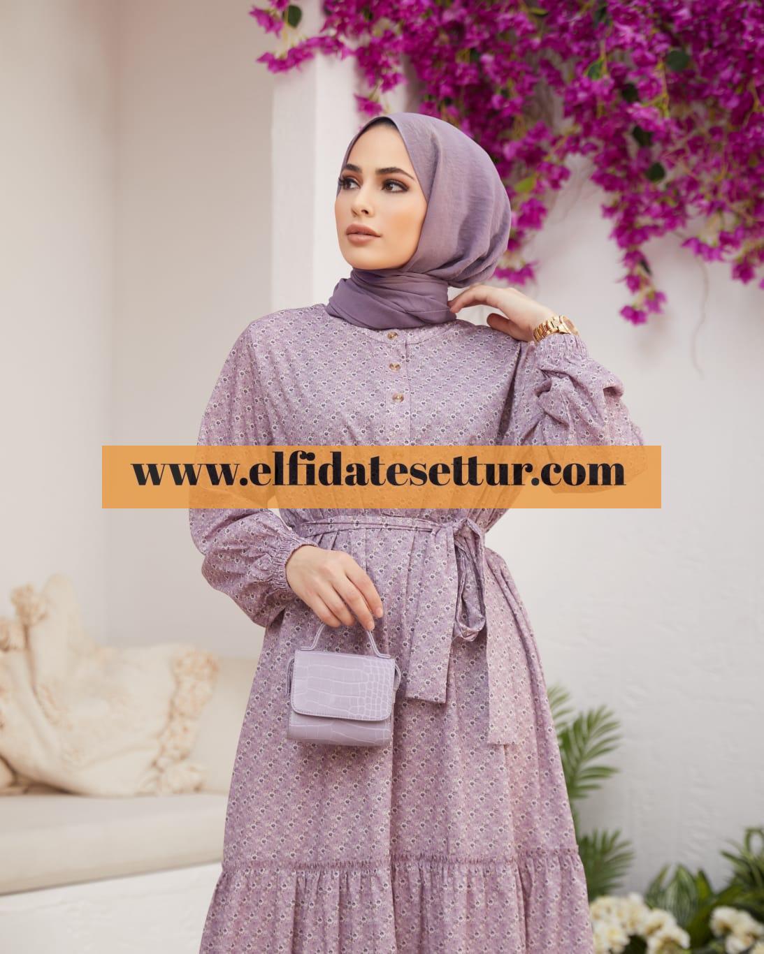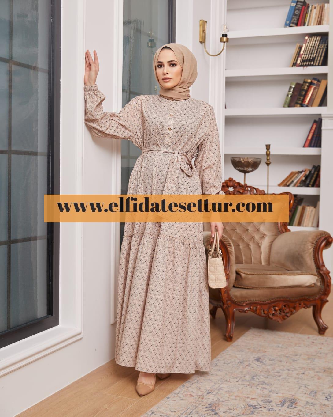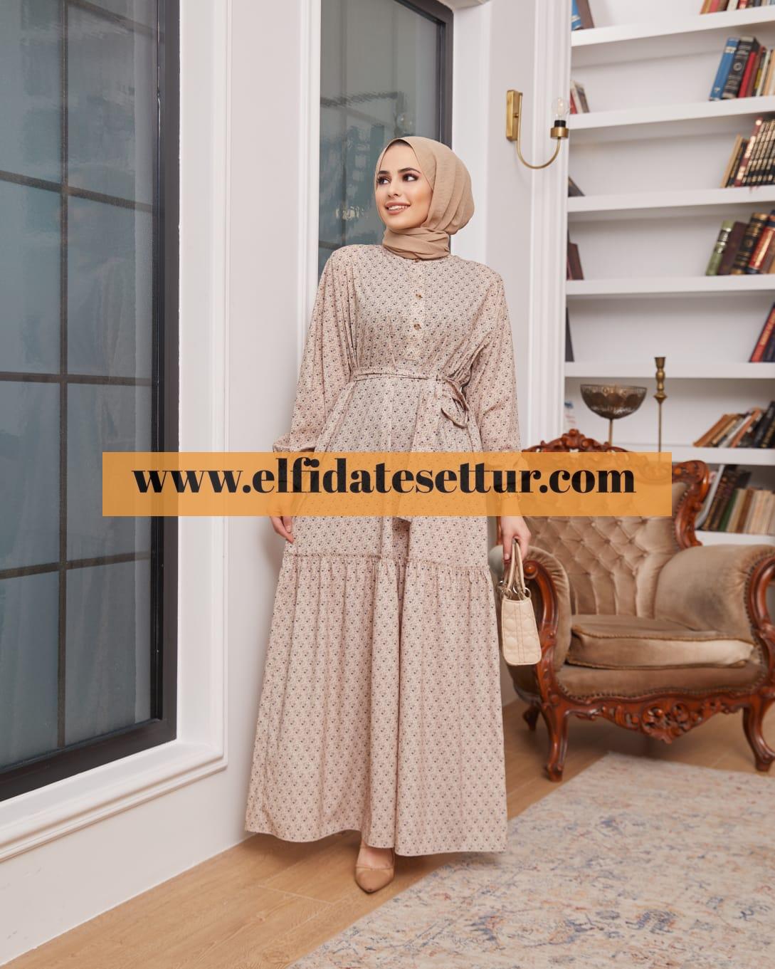 ETEK UCU FIRFIRLI, MİNİK ÇİÇEK DESENLİ ELBİSE💥