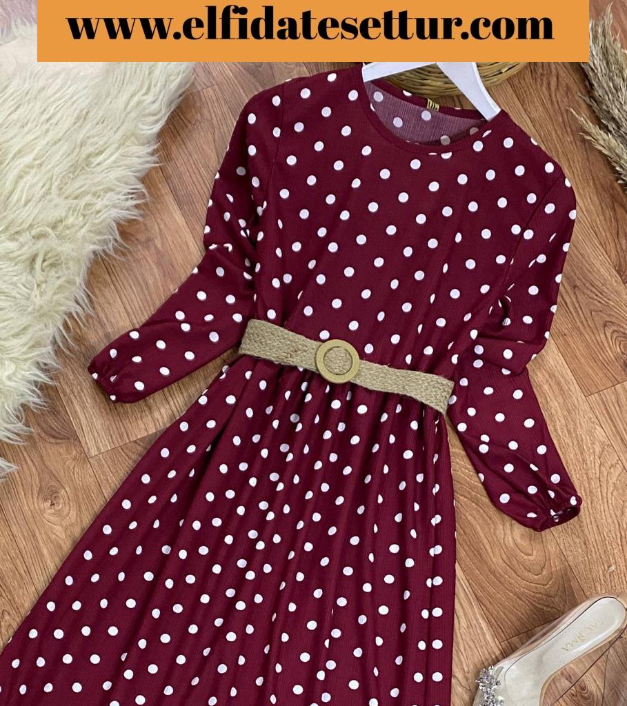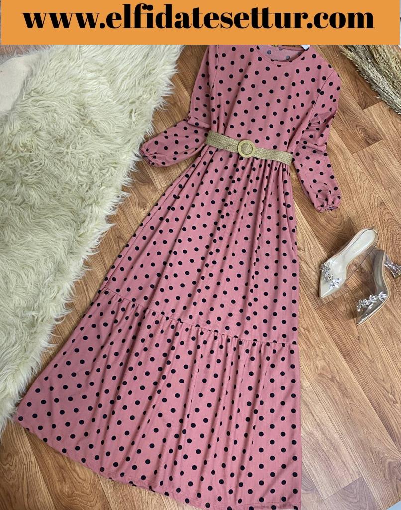 Sevilen Puantiyeli Rengarenk Hasır Kemerli Elbiselerimiz🌹