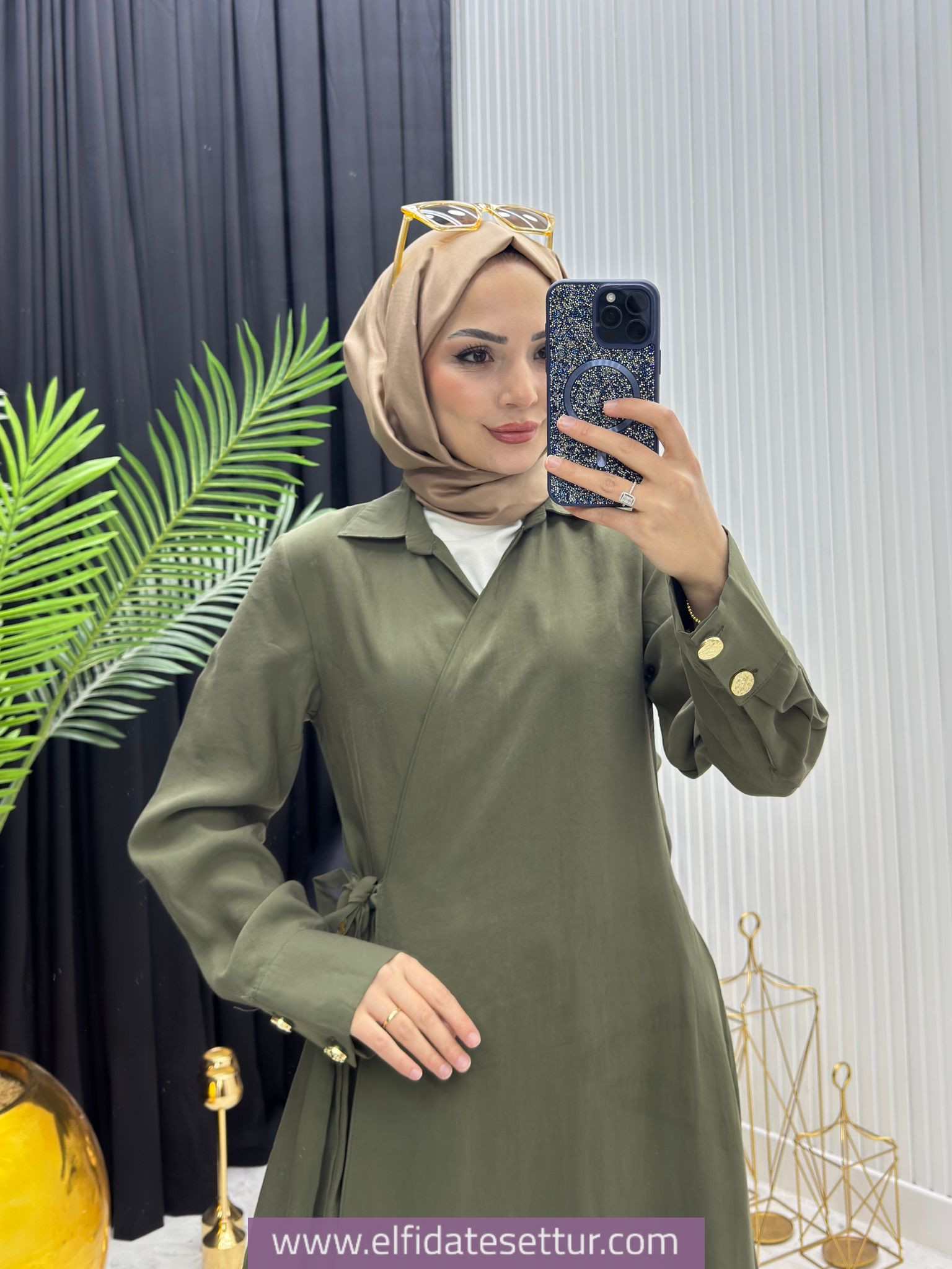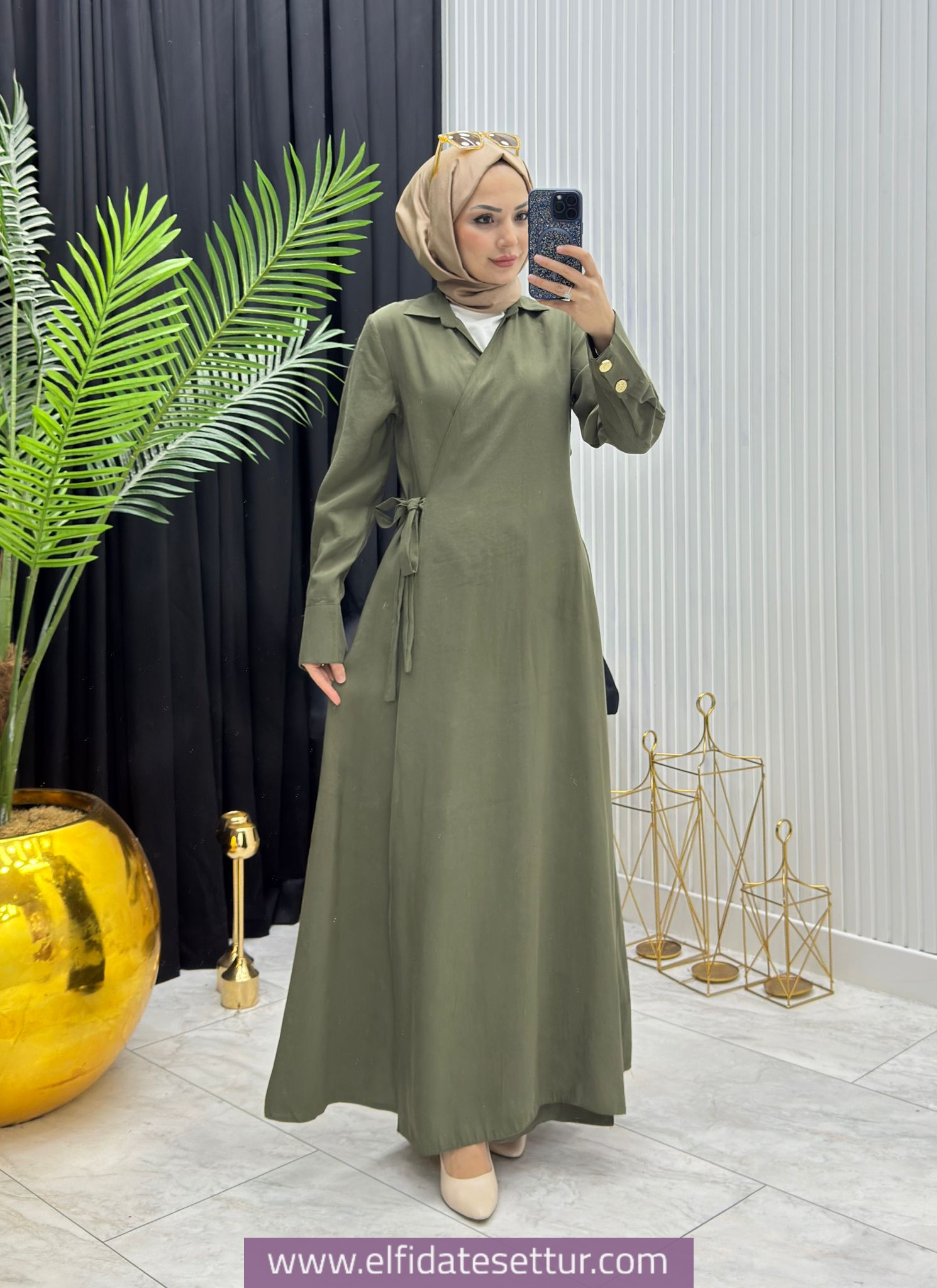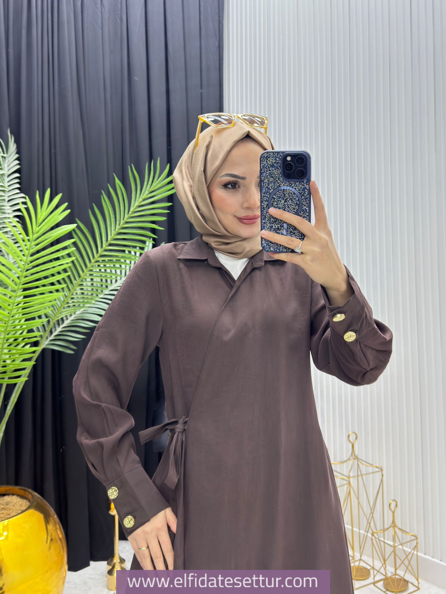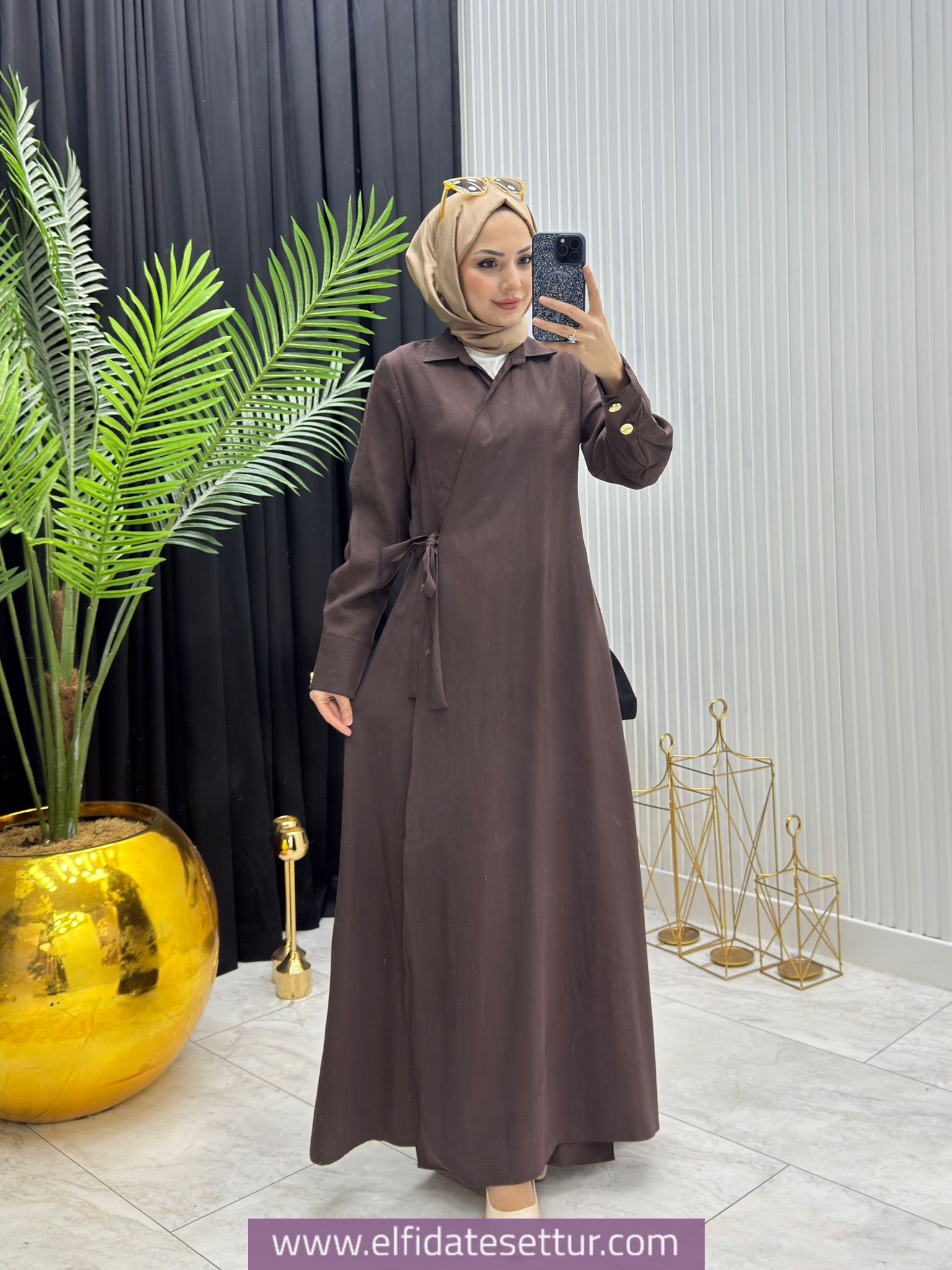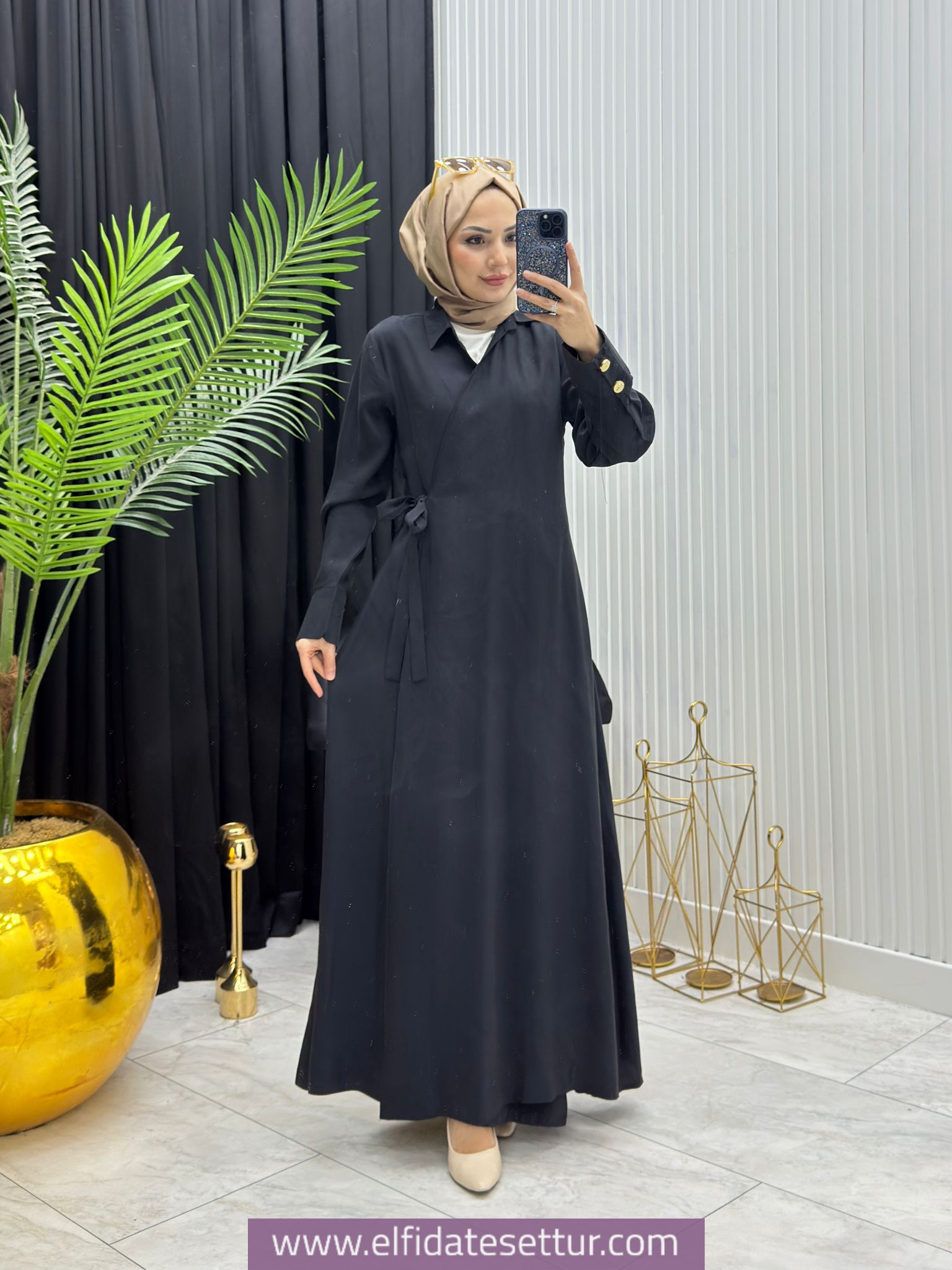 Klasik çizgilerin modern konforla buluştuğu Retro Ferace, gardırobunuzun en çok yönlü parçası olmaya aday. İthal 1. sınıf modal kumaşın yumuşacık dokusu, hem içten hem dıştan bağcıklı tasarımıyla birleşerek size kişiselleştirilebilir bir form sunuyor. İster önünü kapatıp asil bir elbise olarak, ister açık bırakıp şık bir ferace olarak kullanın.