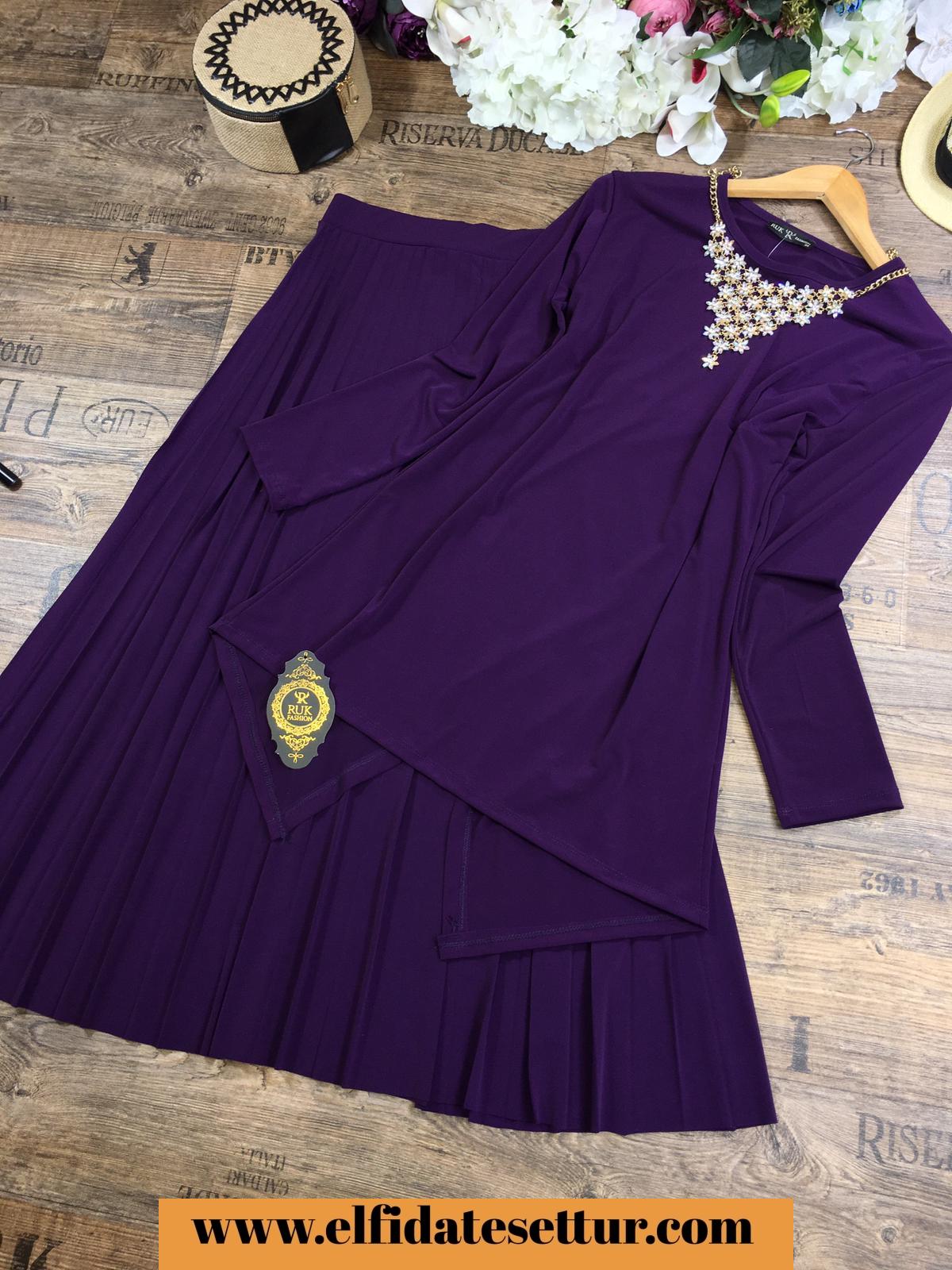 Tam kalıp birebir bedendir. Astarsızdır.Bisiklet yakalıdır. Etek beli lastiklidir. Fermuarsız ve düğmesizdir. Boyun kısmından giyimi kolaydır. Esneme payı vardır.