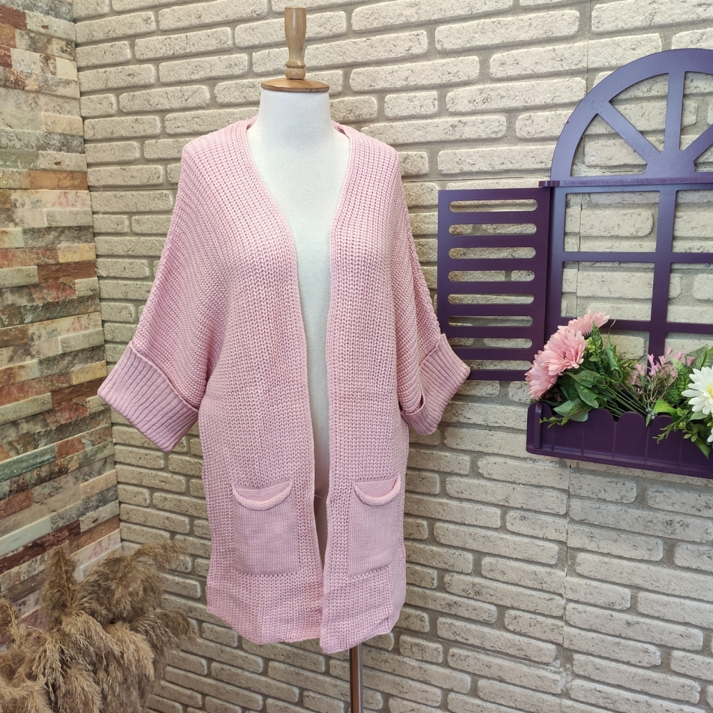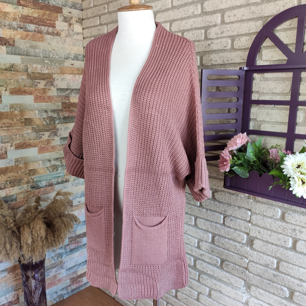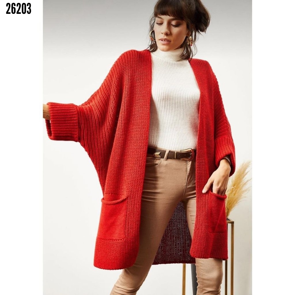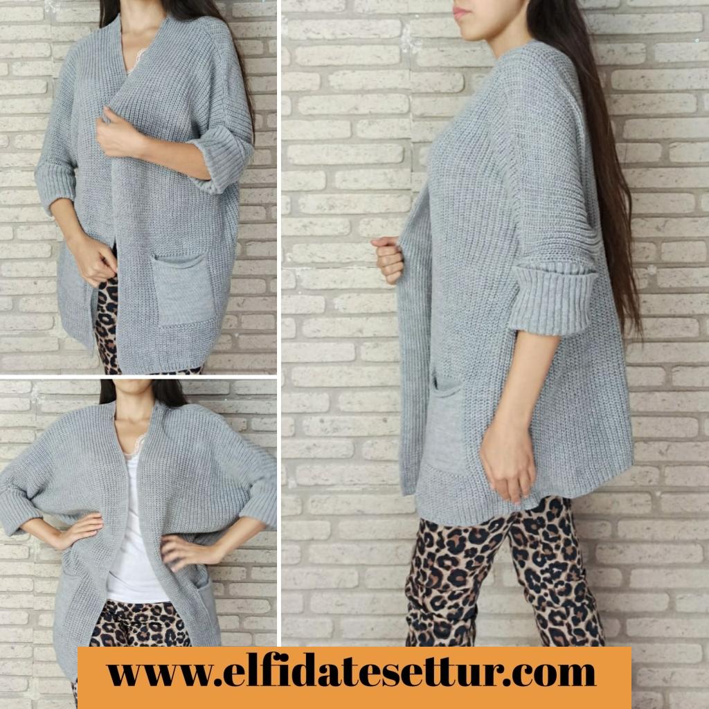 ❤Oversize Kalıp Cepli Salaş Triko Hırka 82 cm