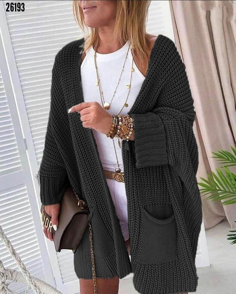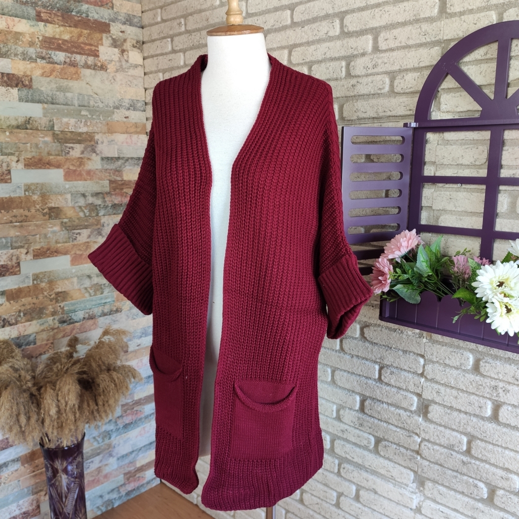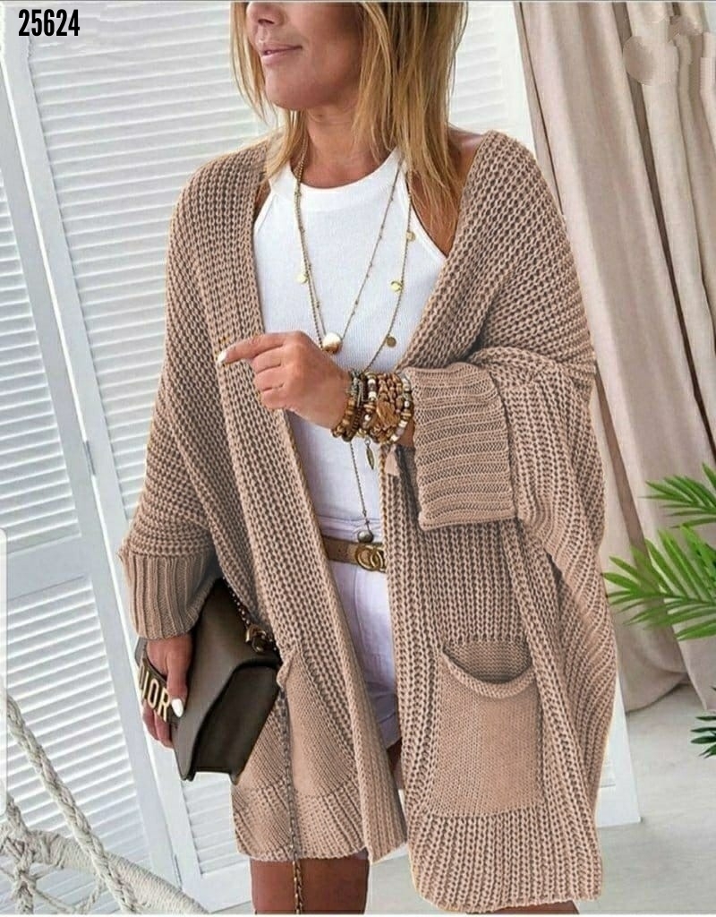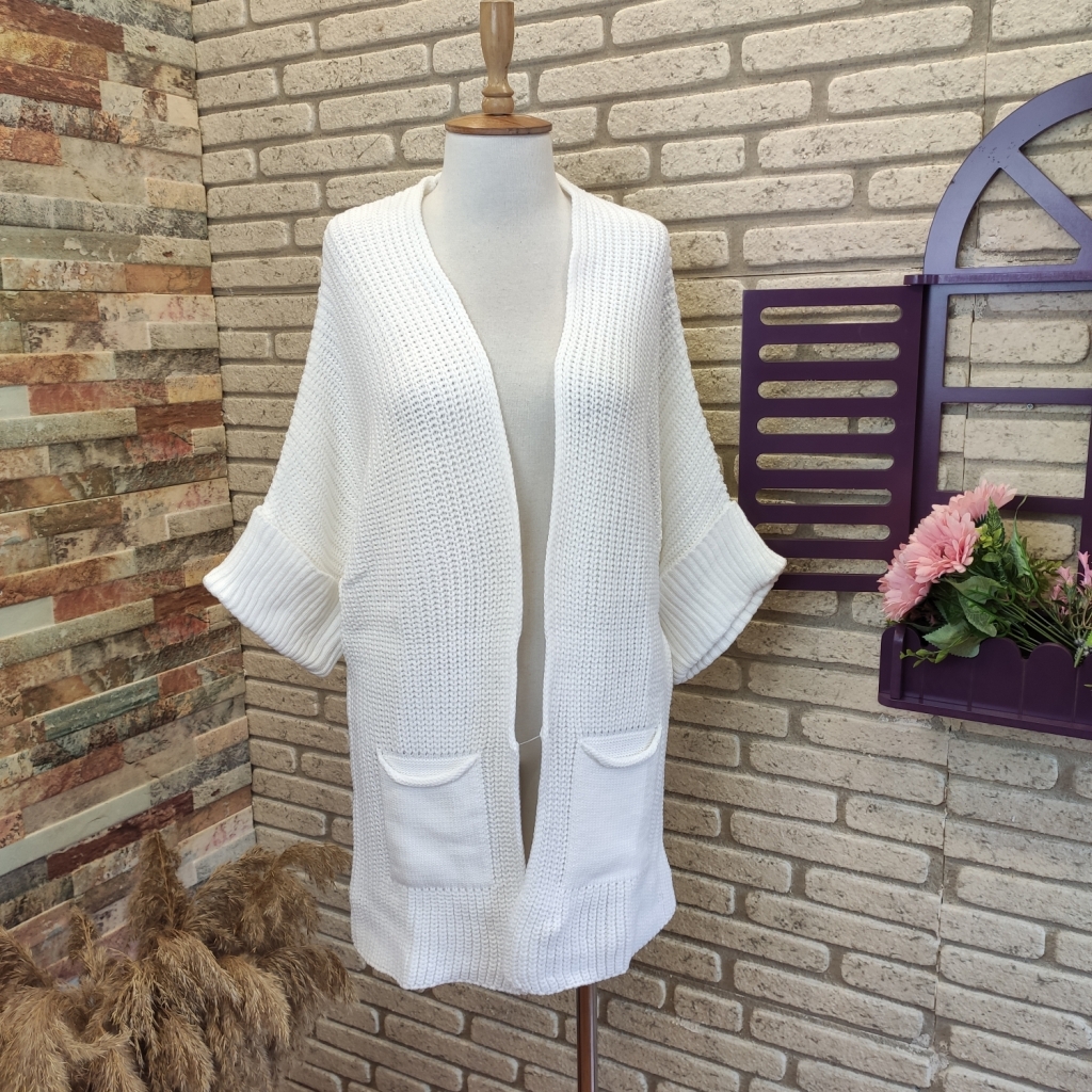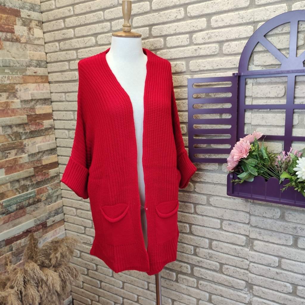 ❤Oversize Kalıp Cepli Salaş Triko Hırka 82 cm