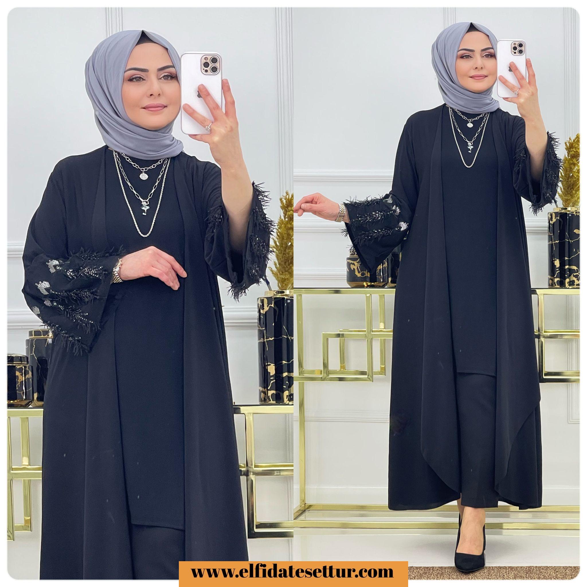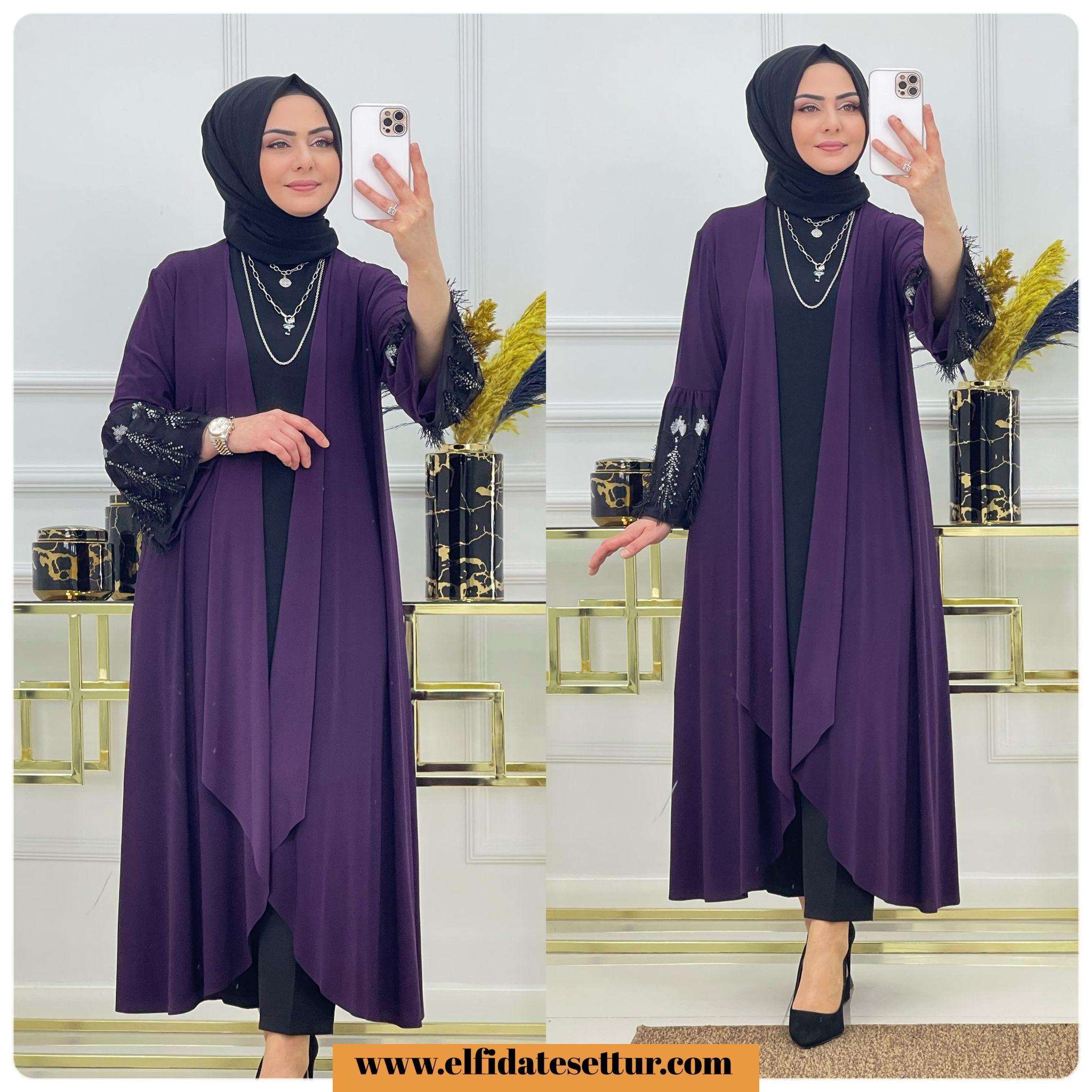 Özel günlerinize eşlik edebilecek şıklıkta kol detay Mihriban abaya