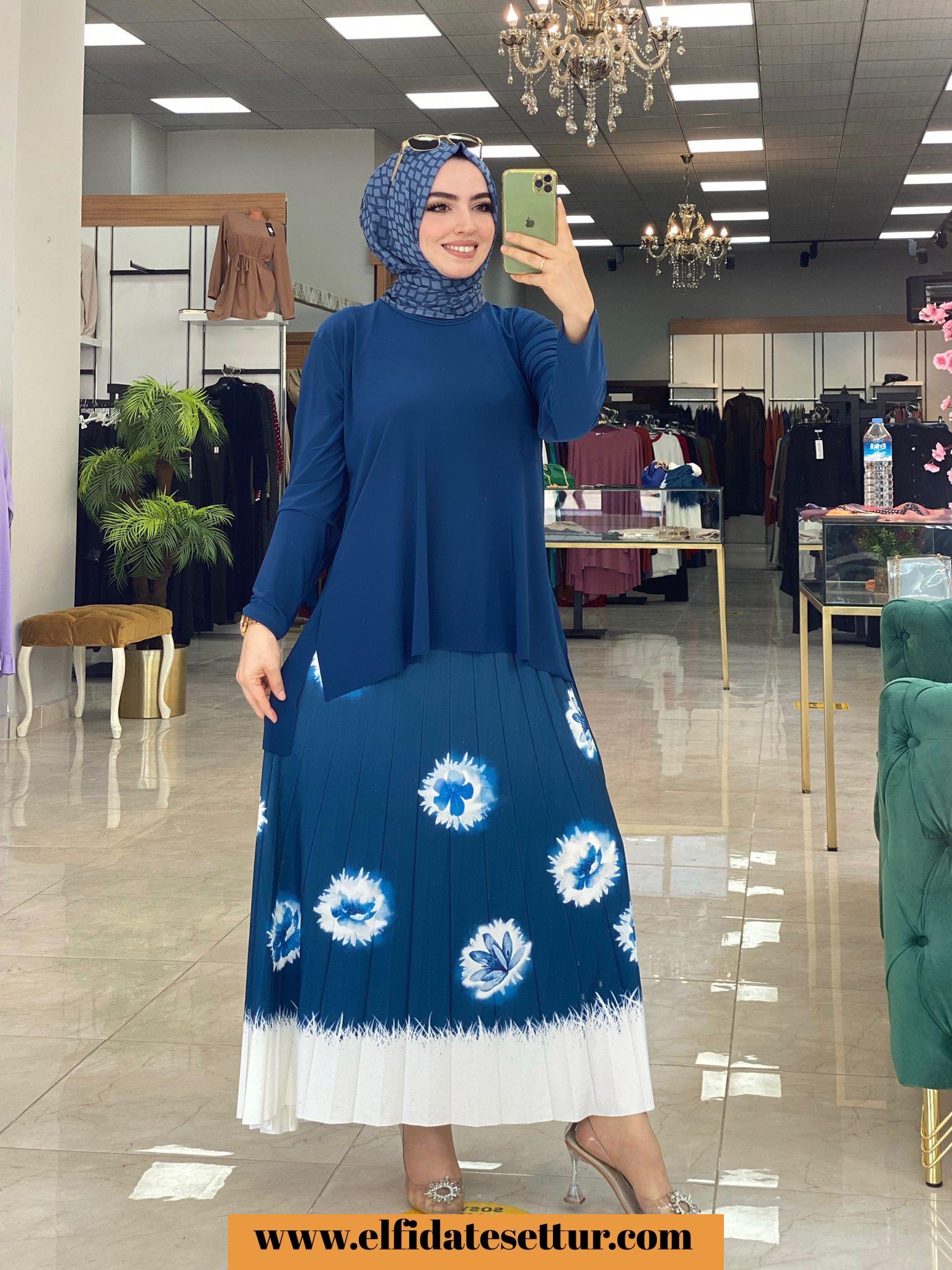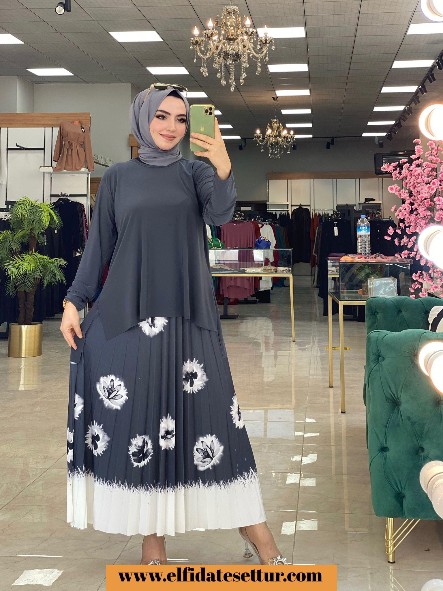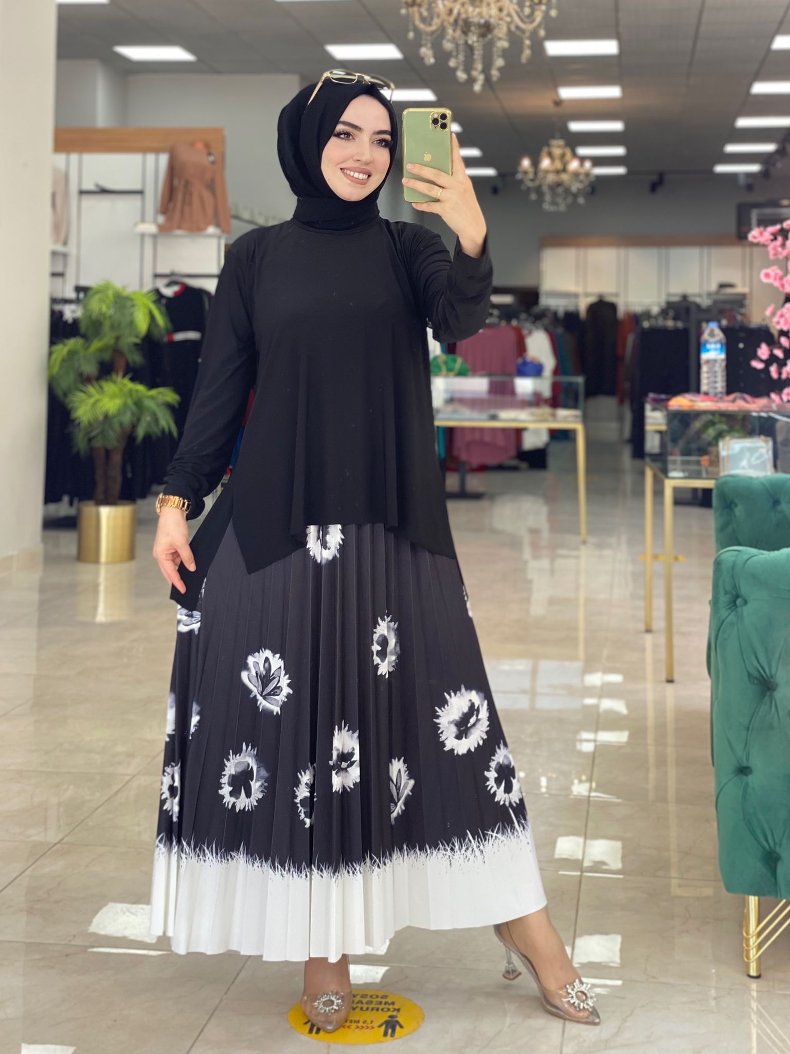 ⭐️prada çiçek desenli sandy kumaş piliseli etekli takım