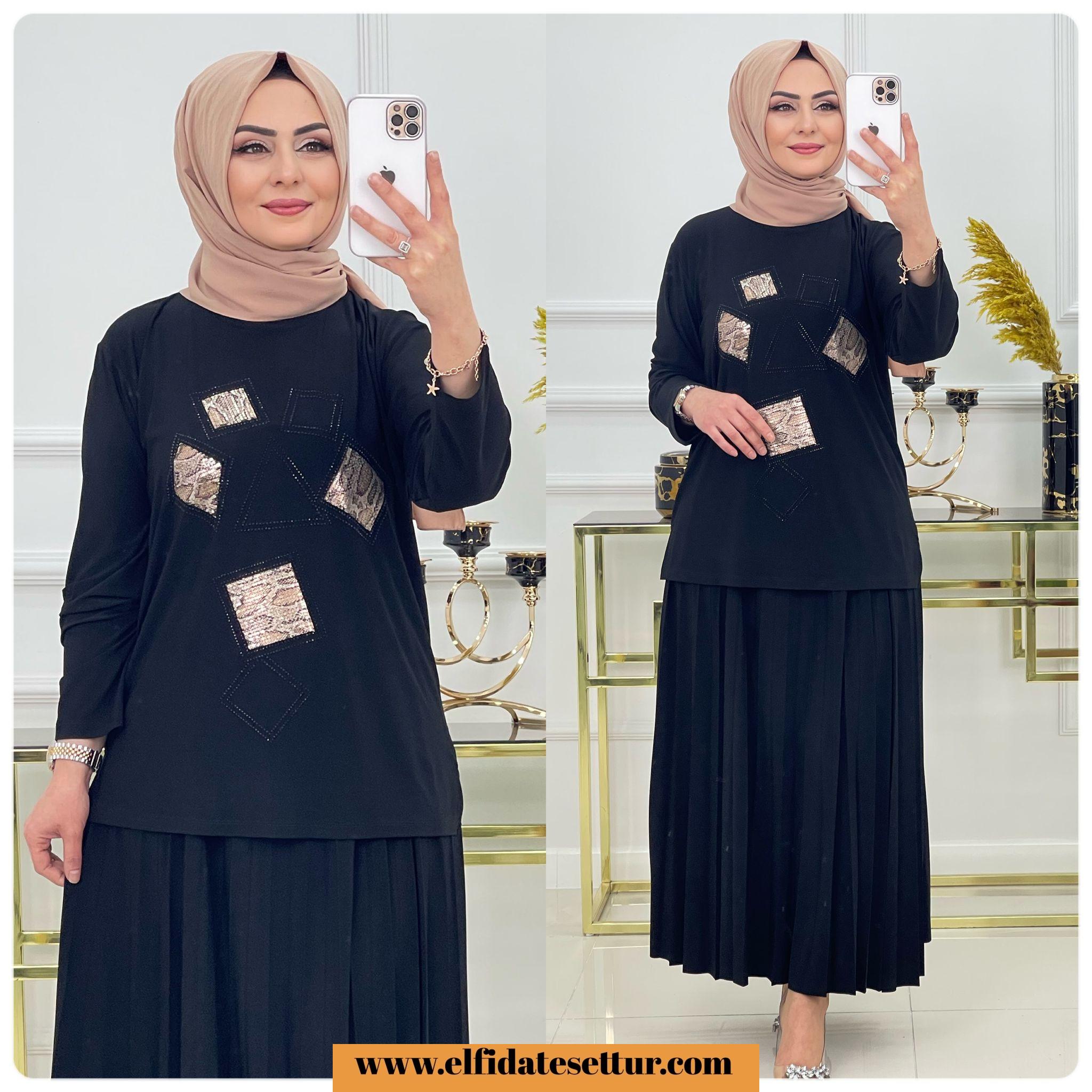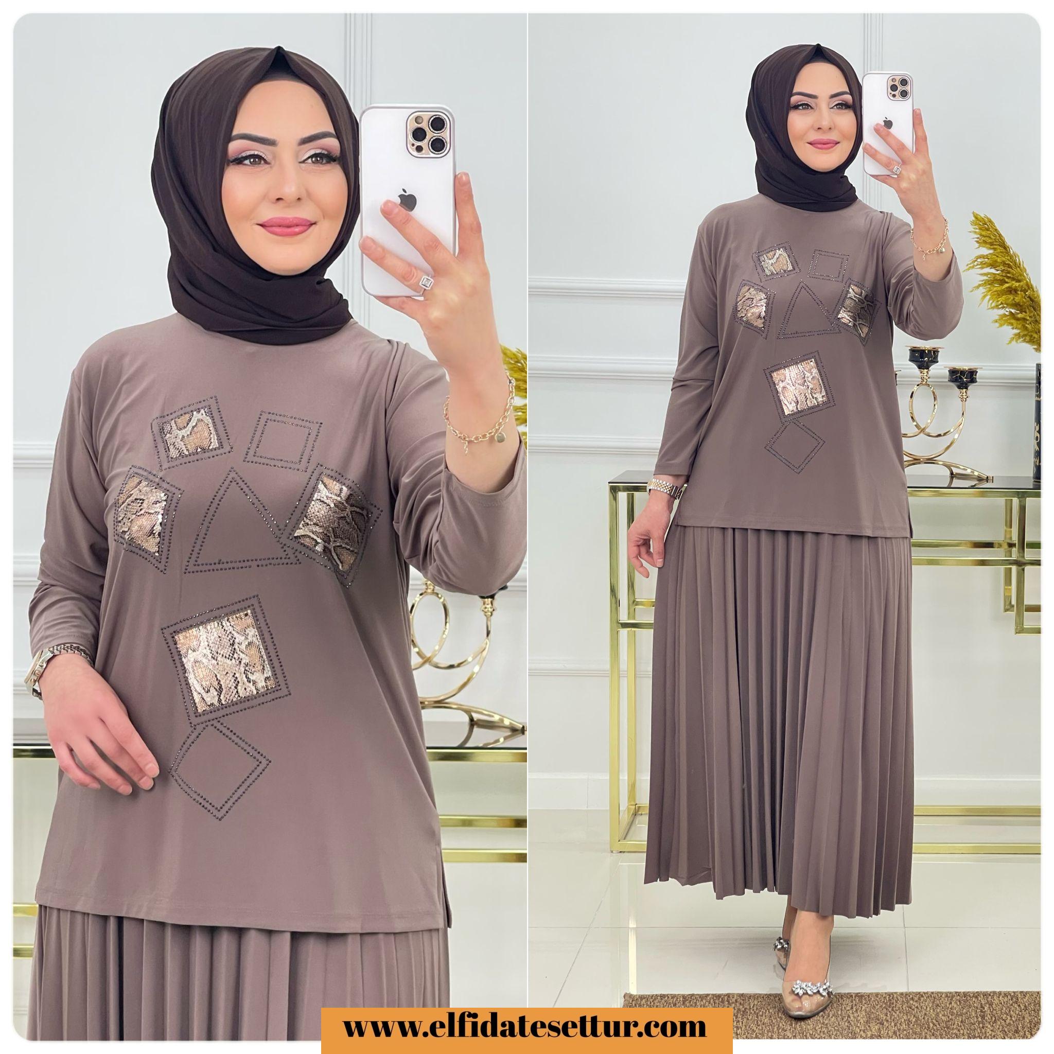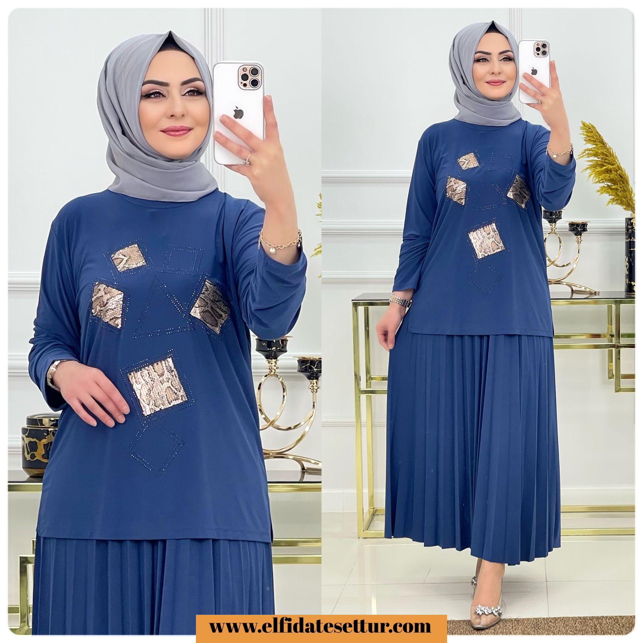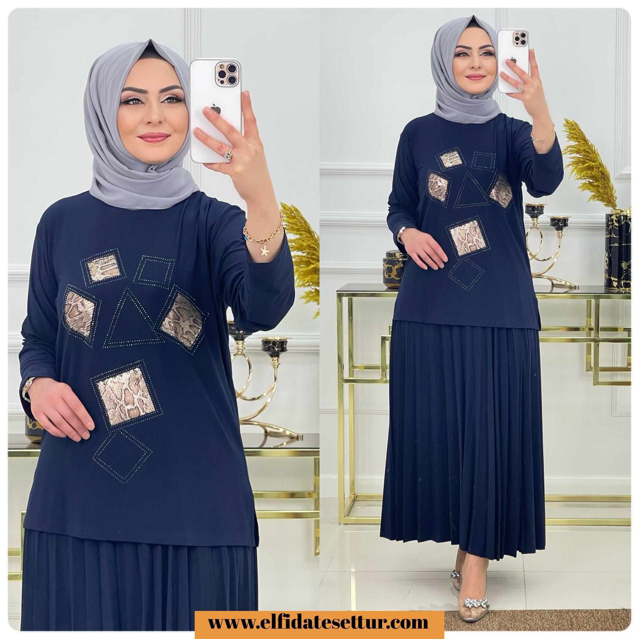 Birinci kalite sandy kumaş özel baskılı Büşra etekli takım