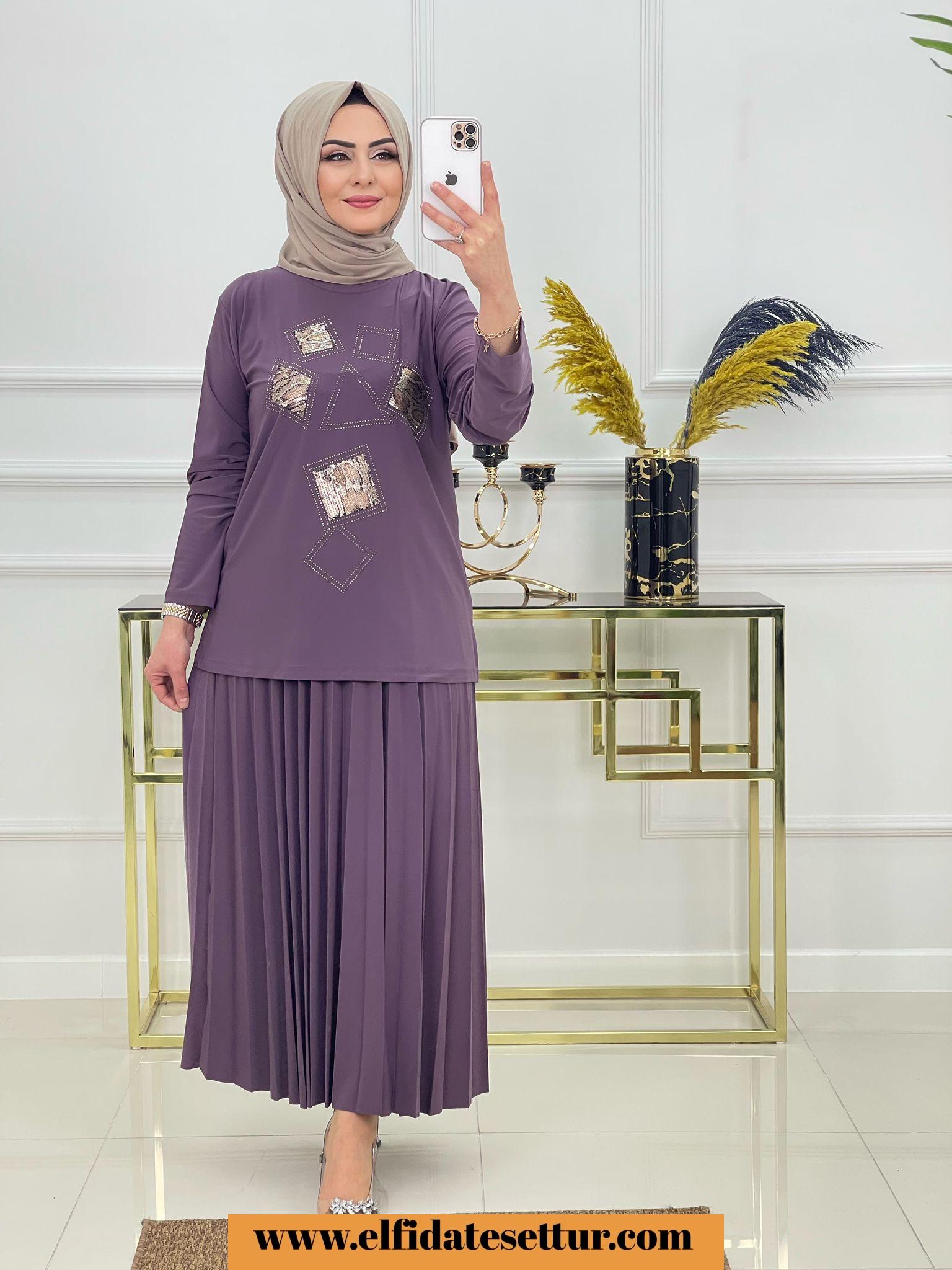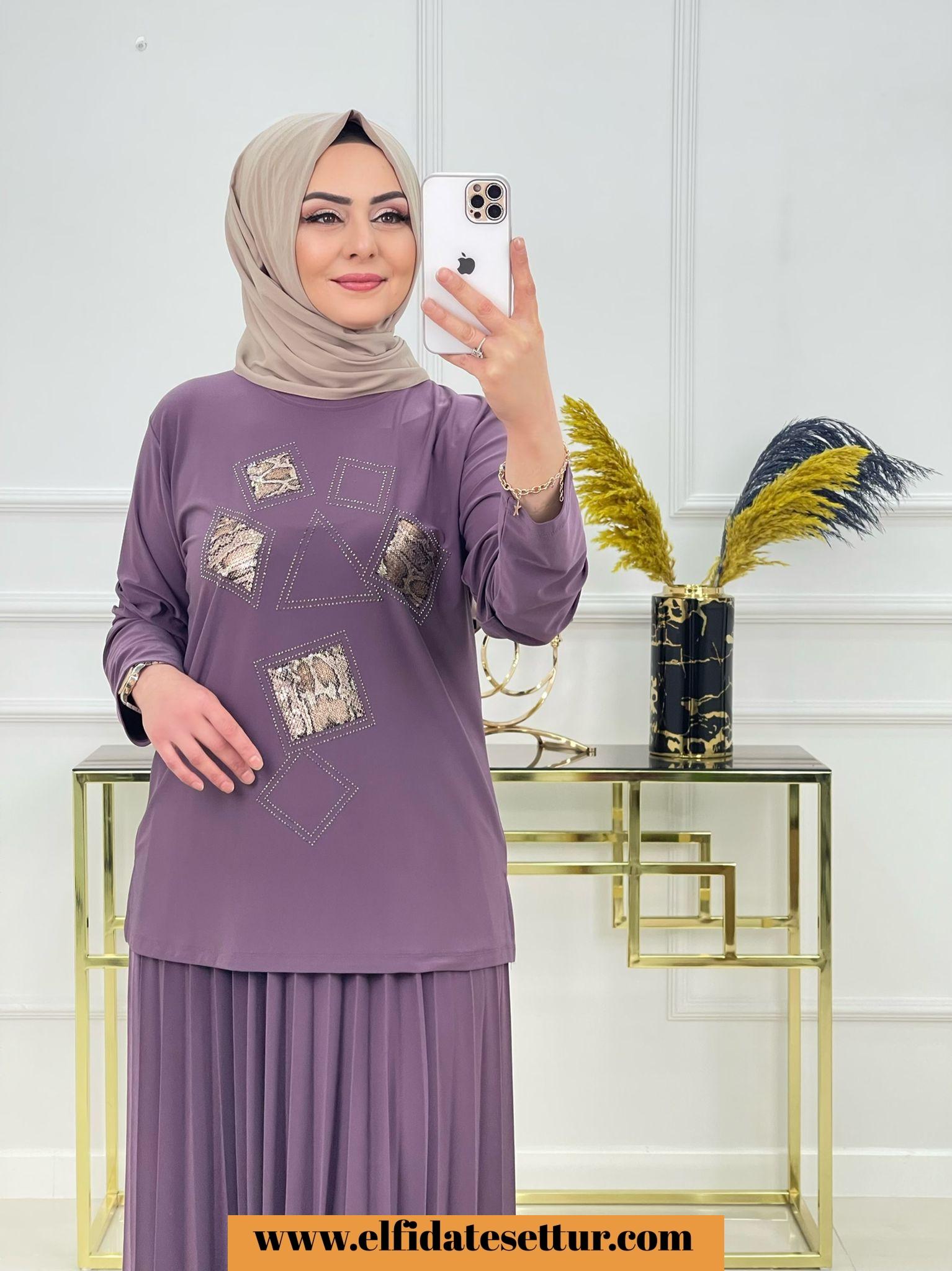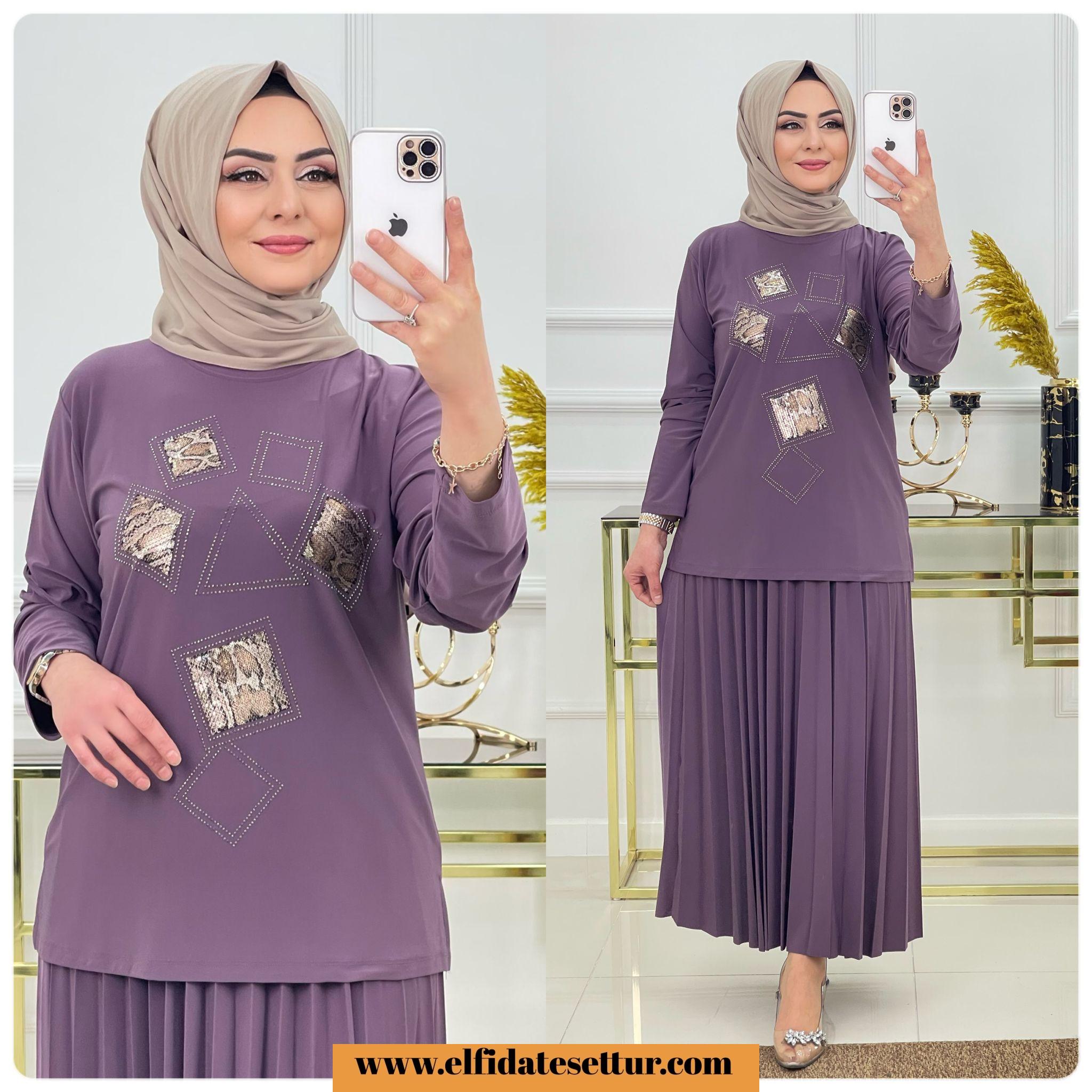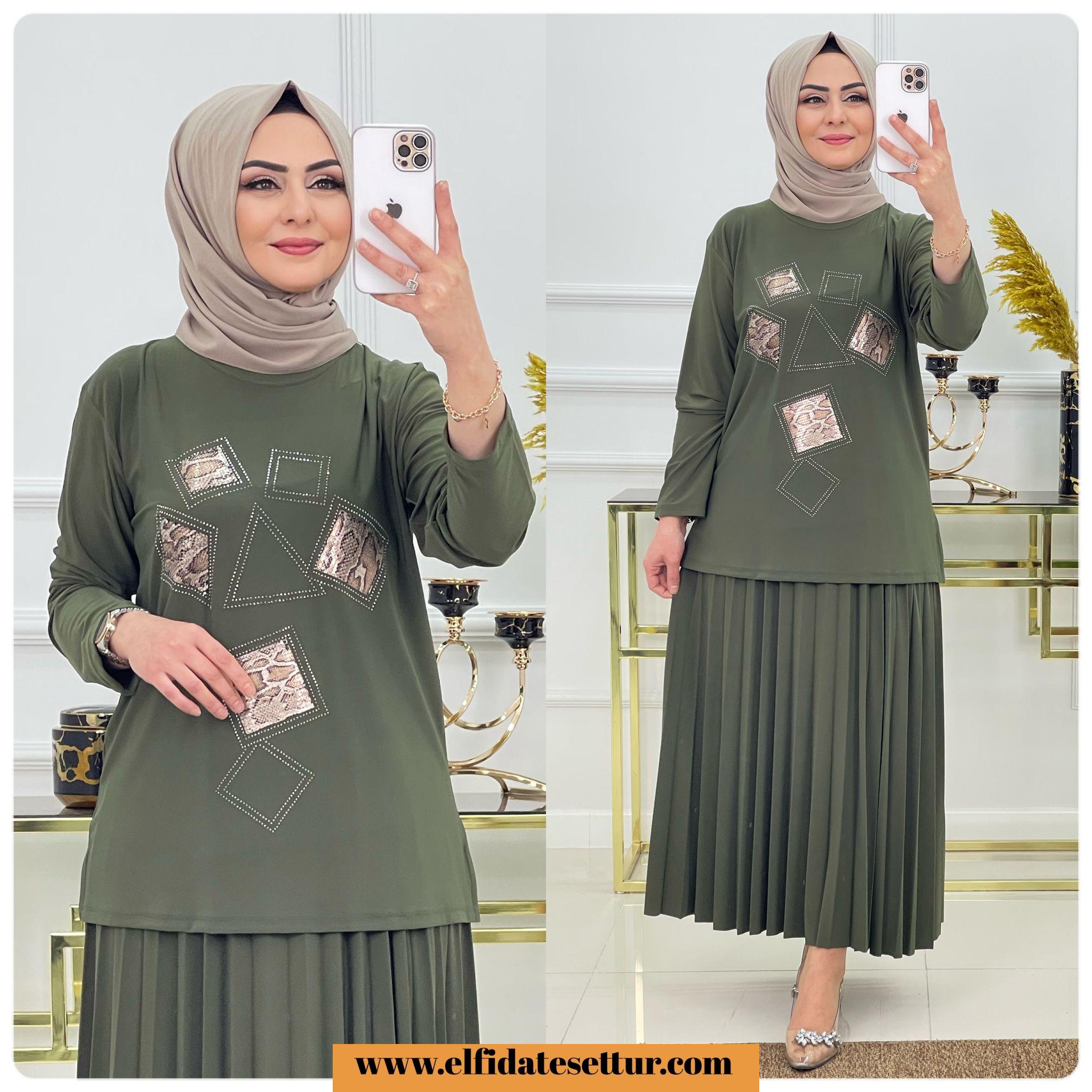 Birinci kalite sandy kumaş özel baskılı Büşra etekli takım