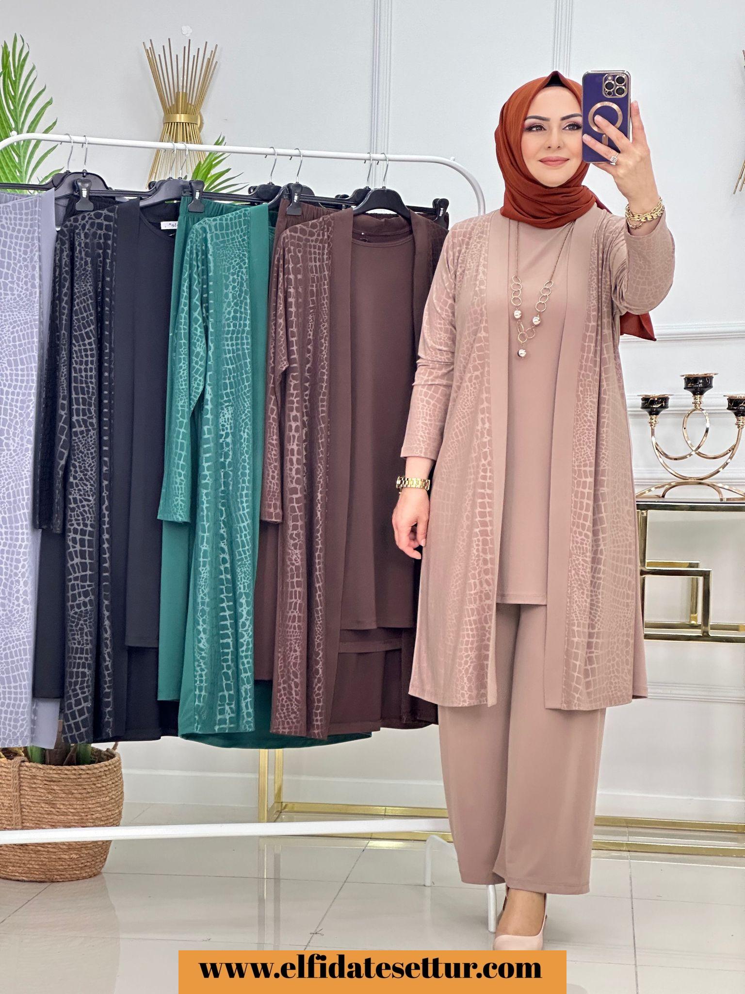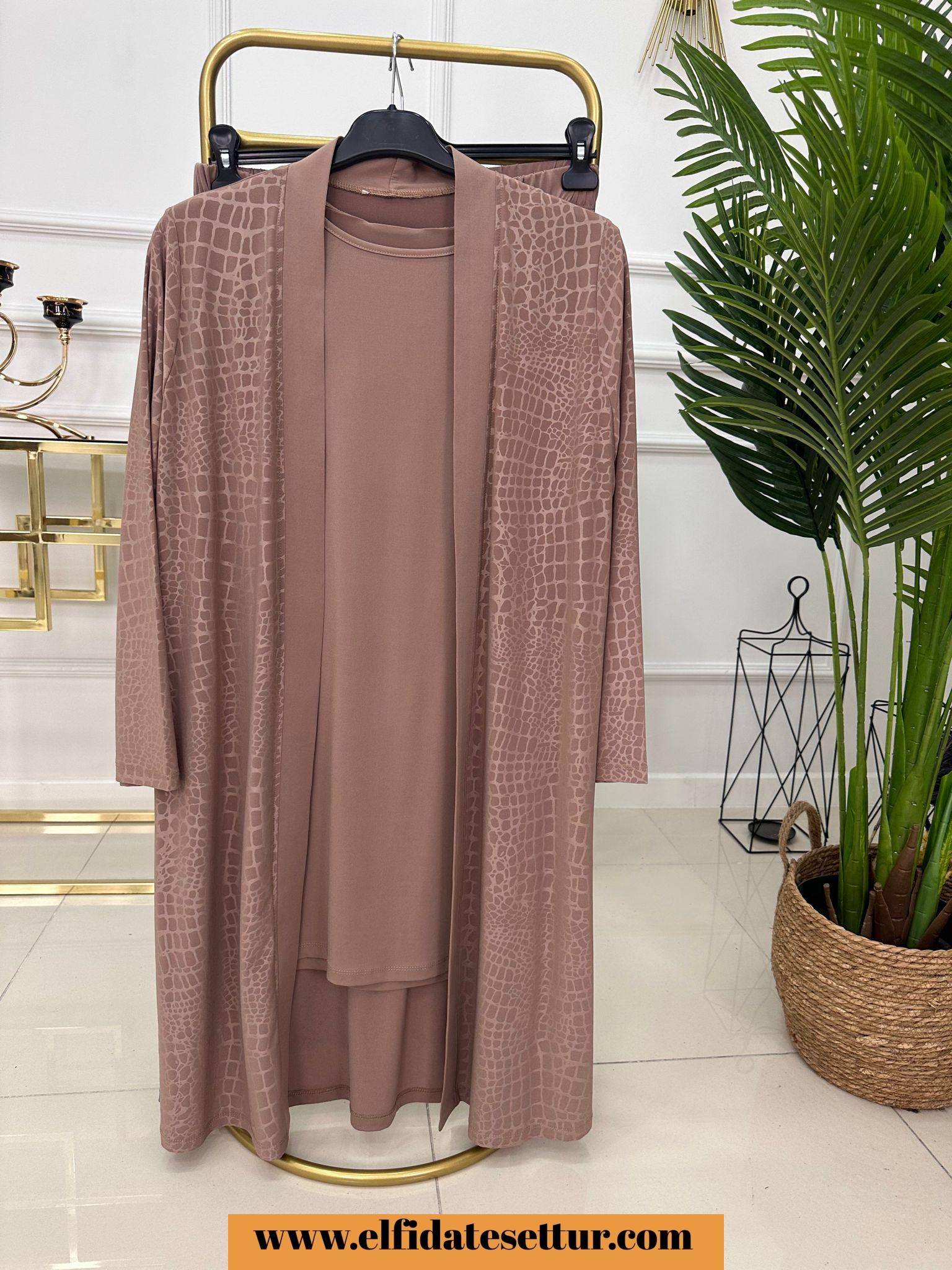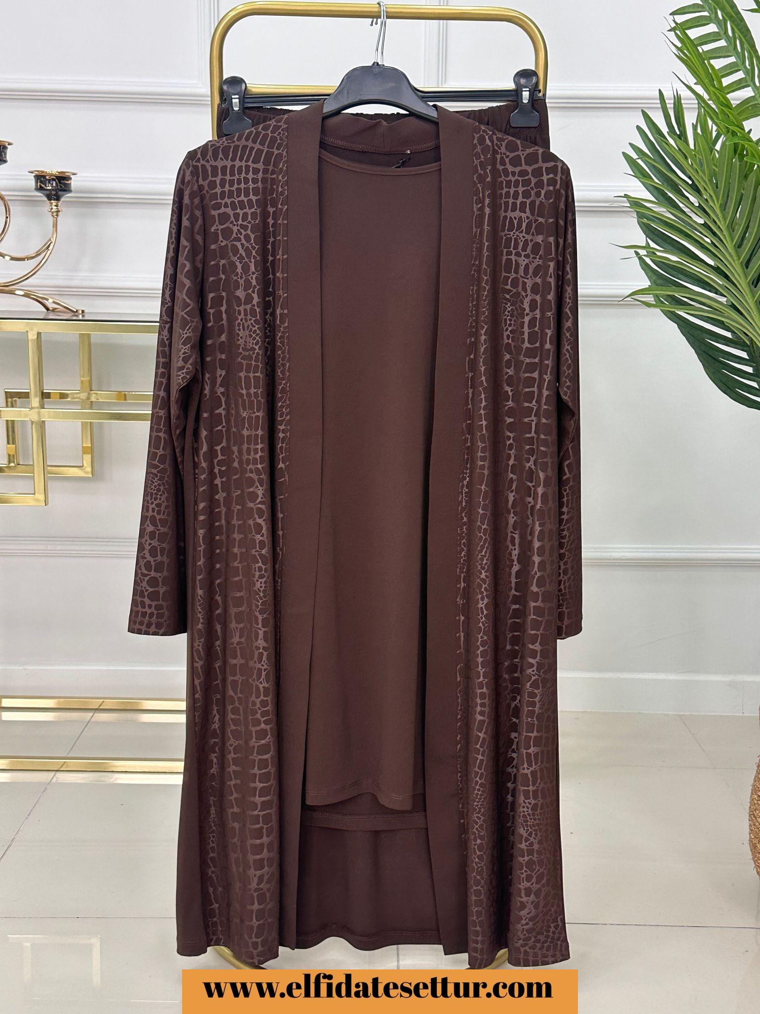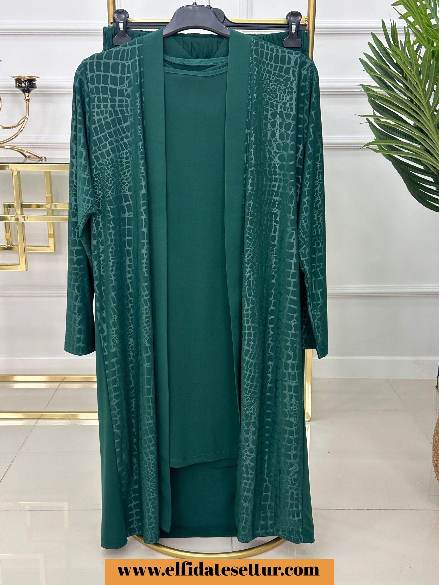 Ürün sıfır kollu içlik hırka ve pantolon olarak üç parça takımdır