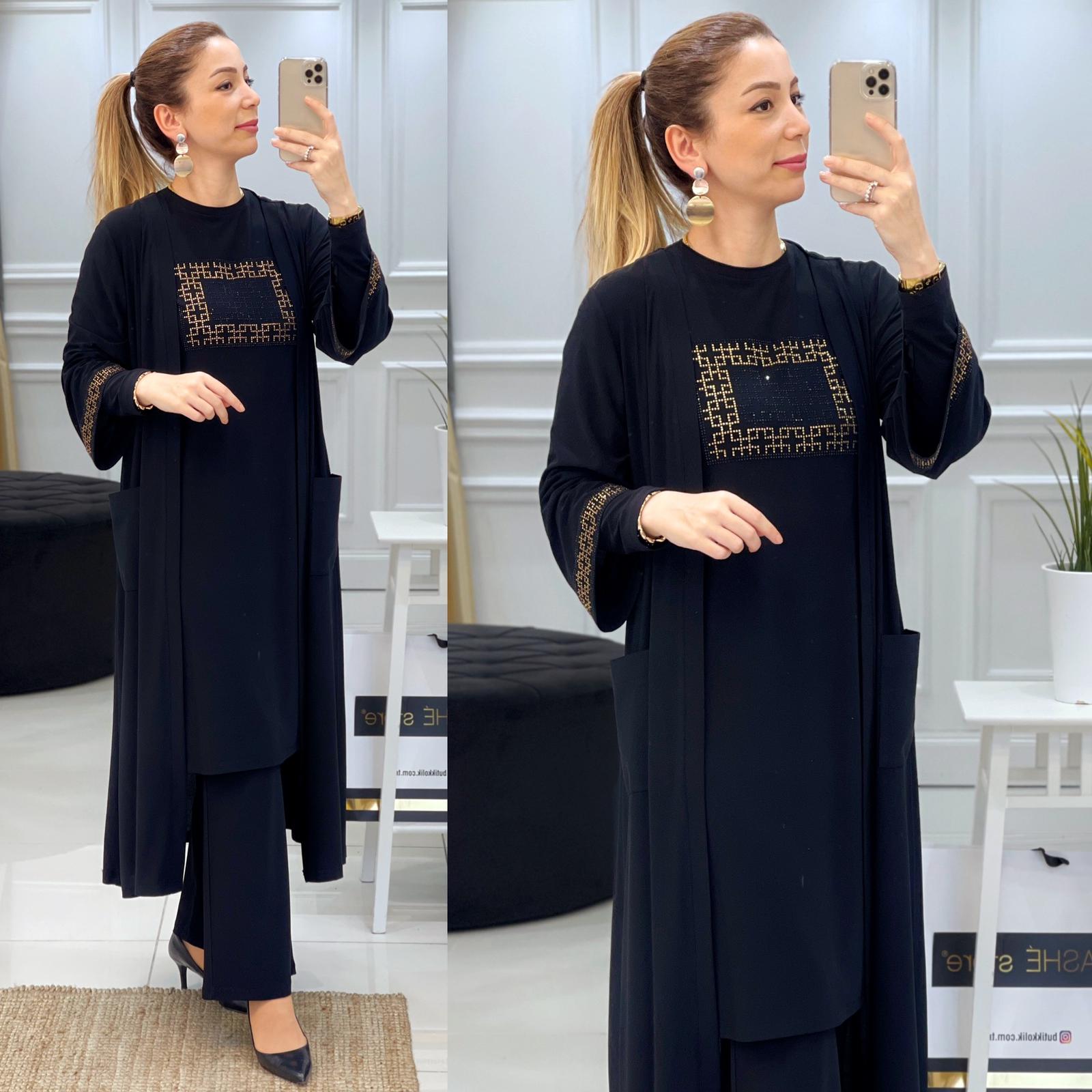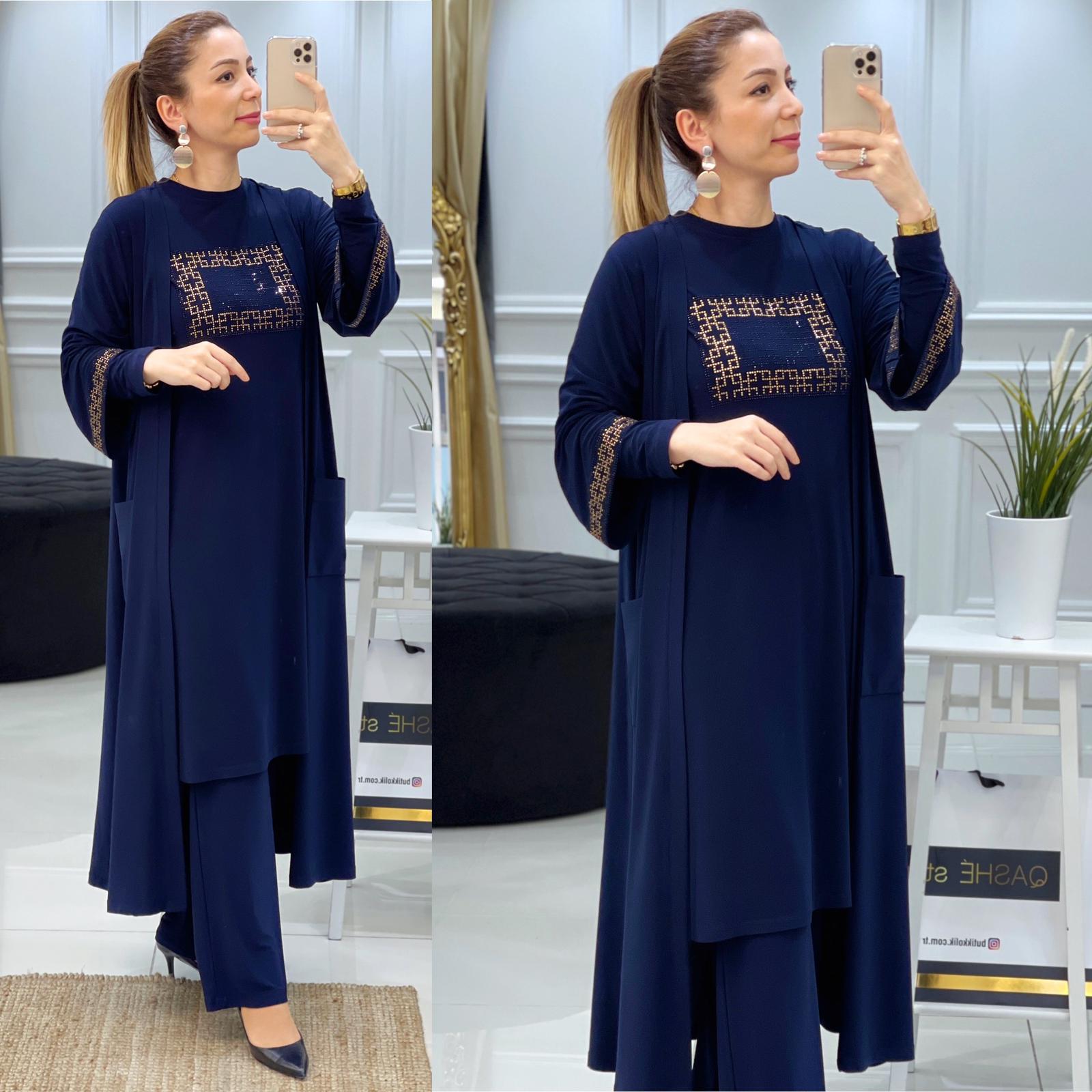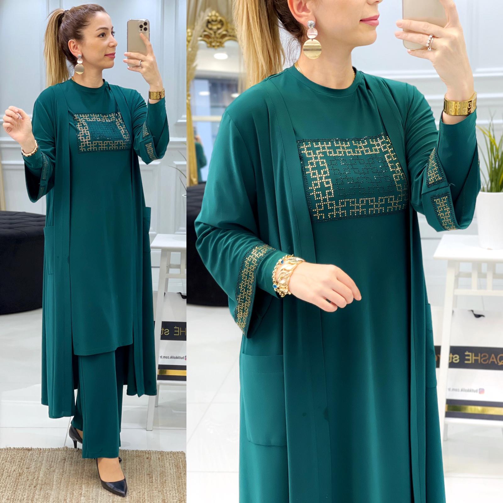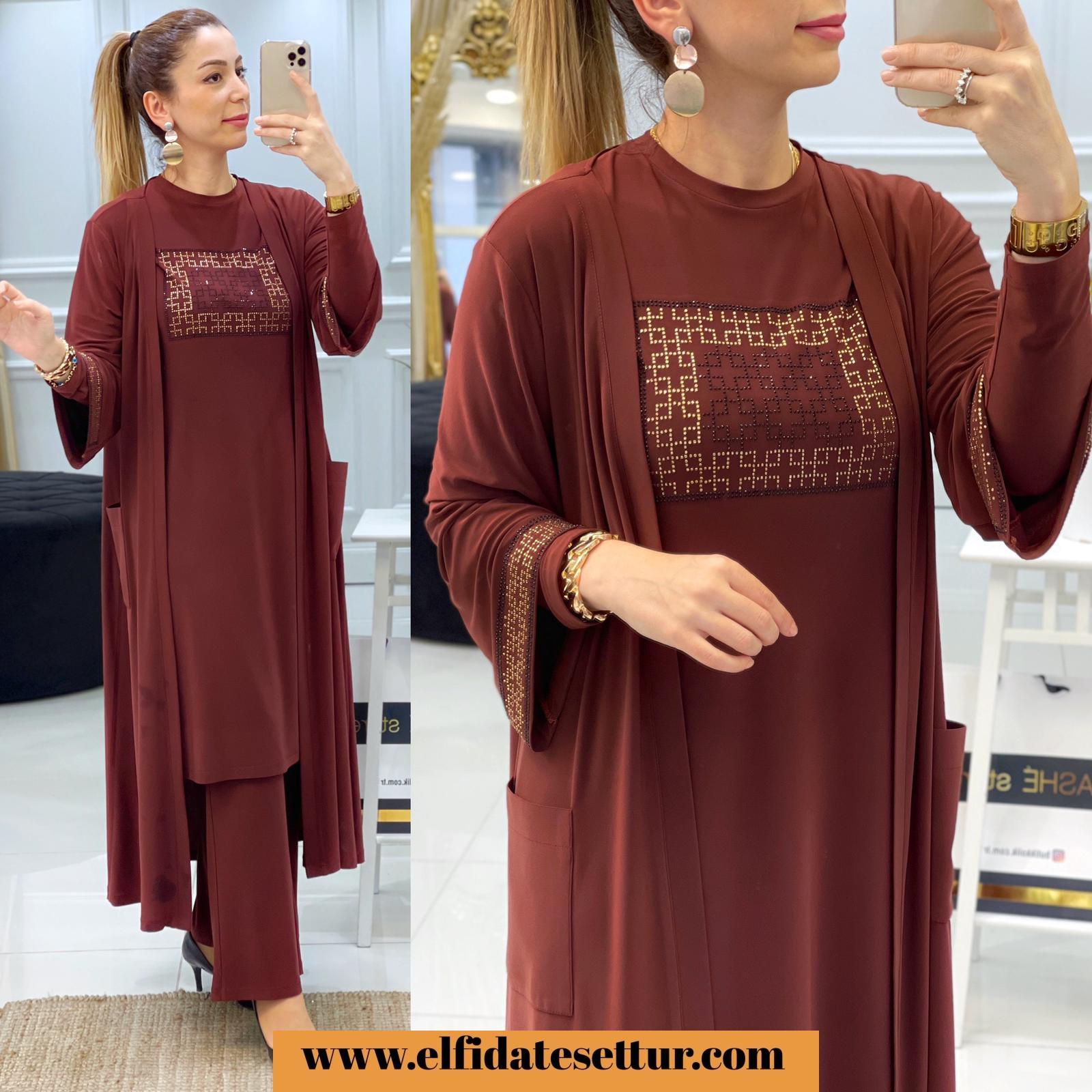 Ürün Detayı:1.sınıf sandy kumaştır. Taş işlemelidir. Takıma dahil olanlar; Uzun kol tunik, Fakir kol cepli hırka, pantolundur.