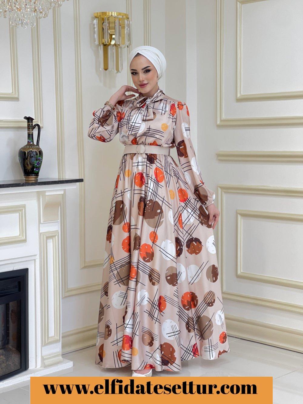 1. Sınıf Saten Kumaştır. 38 Beden ölçüsü: Elbise boy: 160 cm Göğüs: 130 cm Omuz: 38 cm Elbise tokalı seyyar kemerlidir. Elbise yaka kısmı ip detaylıdır.